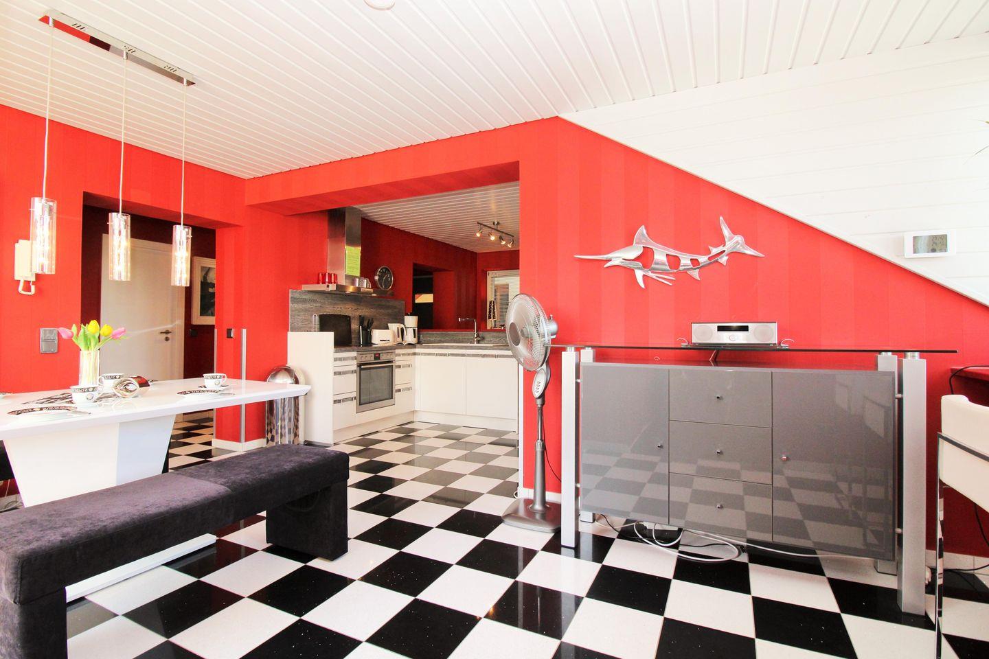 Der halb offene Küchen- bzw. Essbereich beinhaltet eine voll ausgestattete Einbauküchenzeile mit 4-Platten-Ceran-Kochfeld, Backofen, Dunstabzug, Kühlschrank mit Gefrierfach, Geschirrspülmaschine, Kaffeemaschine, Wasserkocher und Toaster. Die Küche ist mit Geschirr, Gläsern, Besteck und Töpfen bestens und ausreichend ausgestattet. Zum Genuss Ihrer Mahlzeiten gibt es 2 Möglichkeiten: Sie können wählen zwischen dem Frühstückstresen mit Bistrohockern direkt am Fenster und freiem weitem Blick auf die vor Ihnen liegende Ostsee oder dem gemütlichen und großzügigen Esszimmertisch mit bequemen Sitzbänken und Stühlen.