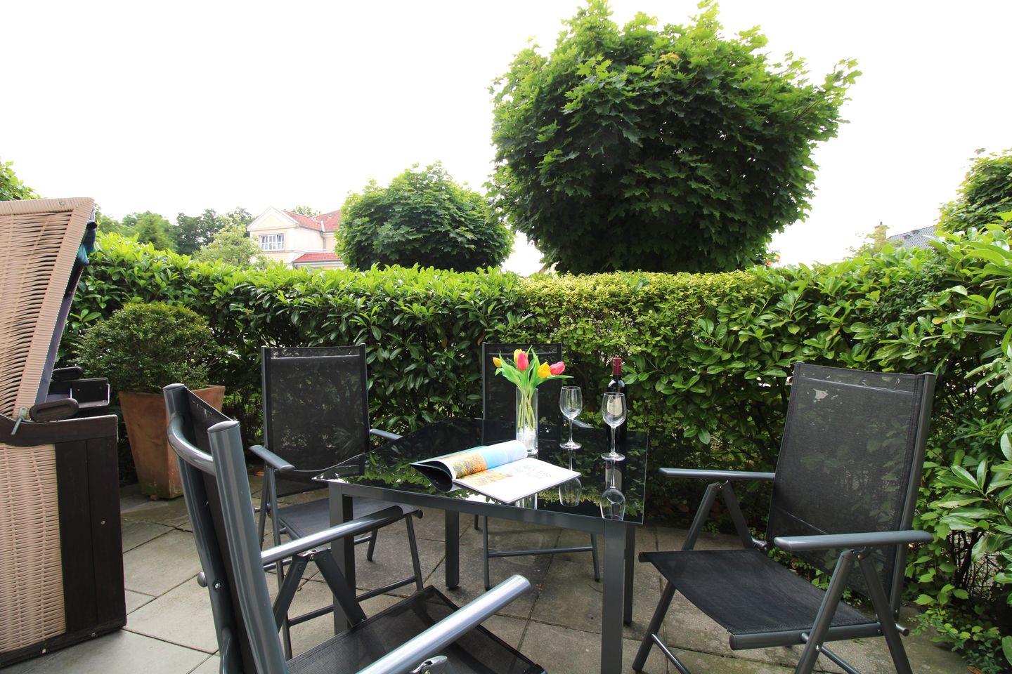 Gemütliche 2-Zimmer-Ferienwohnung in Kühlungsborn-West, nur 300 m vom Strand entfernt, mit WLAN und geschützter Terrasse.