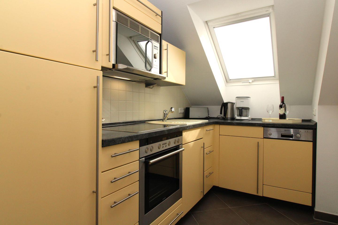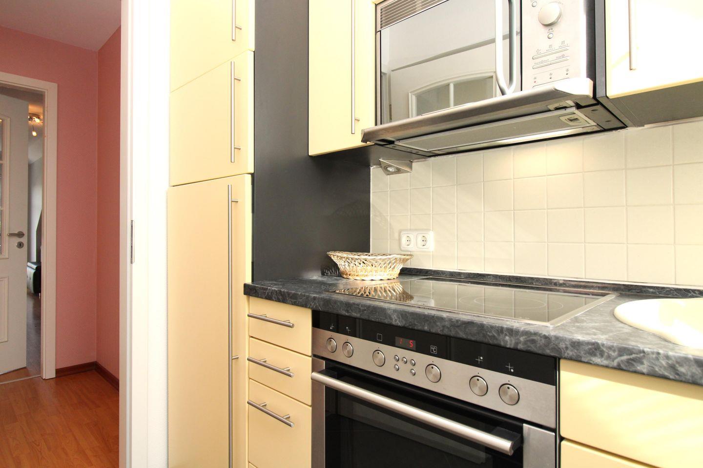 Die separate Küche beinhaltet eine voll ausgestattete und hochwertige Einbauküchenzeile mit 4-Platten-Ceran-Kochfeld, Backofen, Mikrowelle, Kühlschrank und separater Gefrierschrank, Geschirrspülmaschine, Kaffeemaschine, Wasserkocher und Toaster. Die Küche ist mit Geschirr, Gläsern, Besteck und Töpfen vollständig und komplett ausgestattet.
