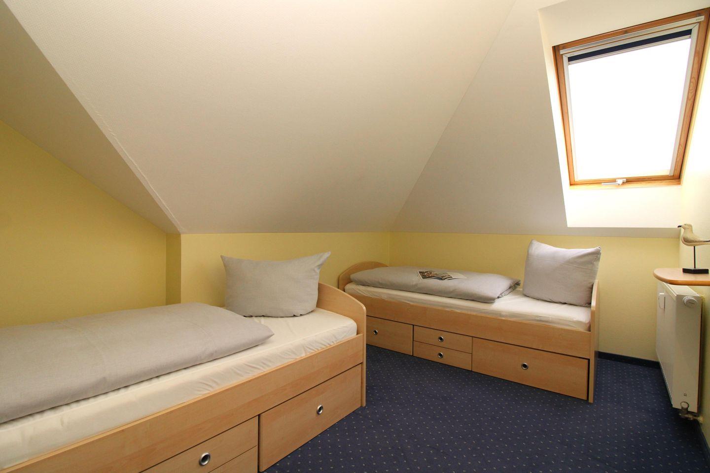 Das separate und zusätzliche 2. Schlafzimmer (Kinderzimmer) verfügt über 2 getrennte Einzelbetten (90 x 200 cm) mit sehr viel Stauraum unter den Betten.