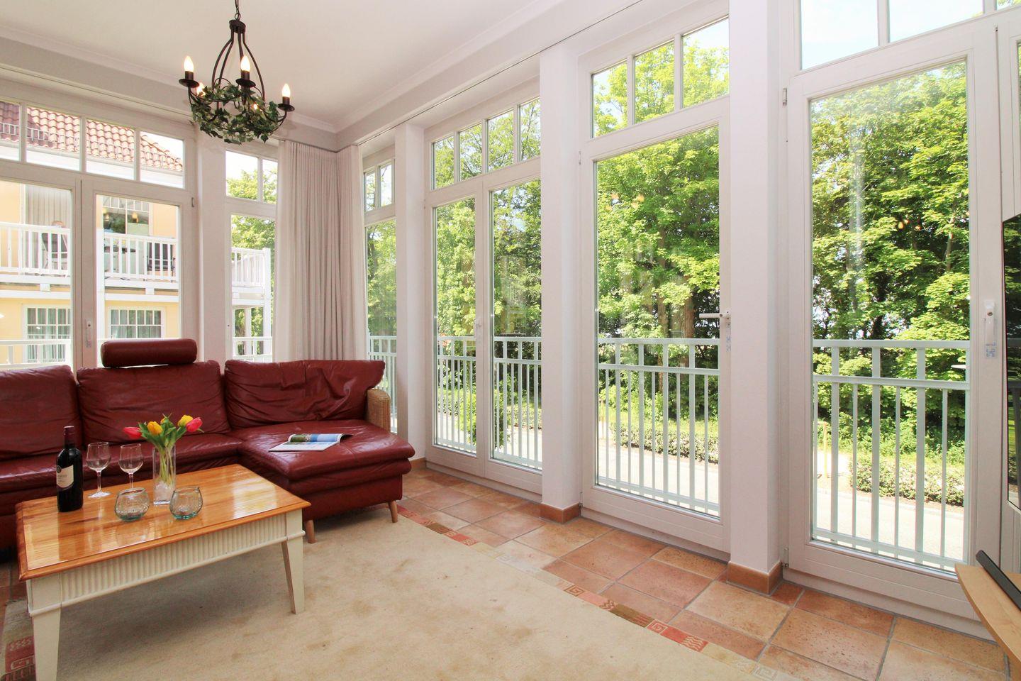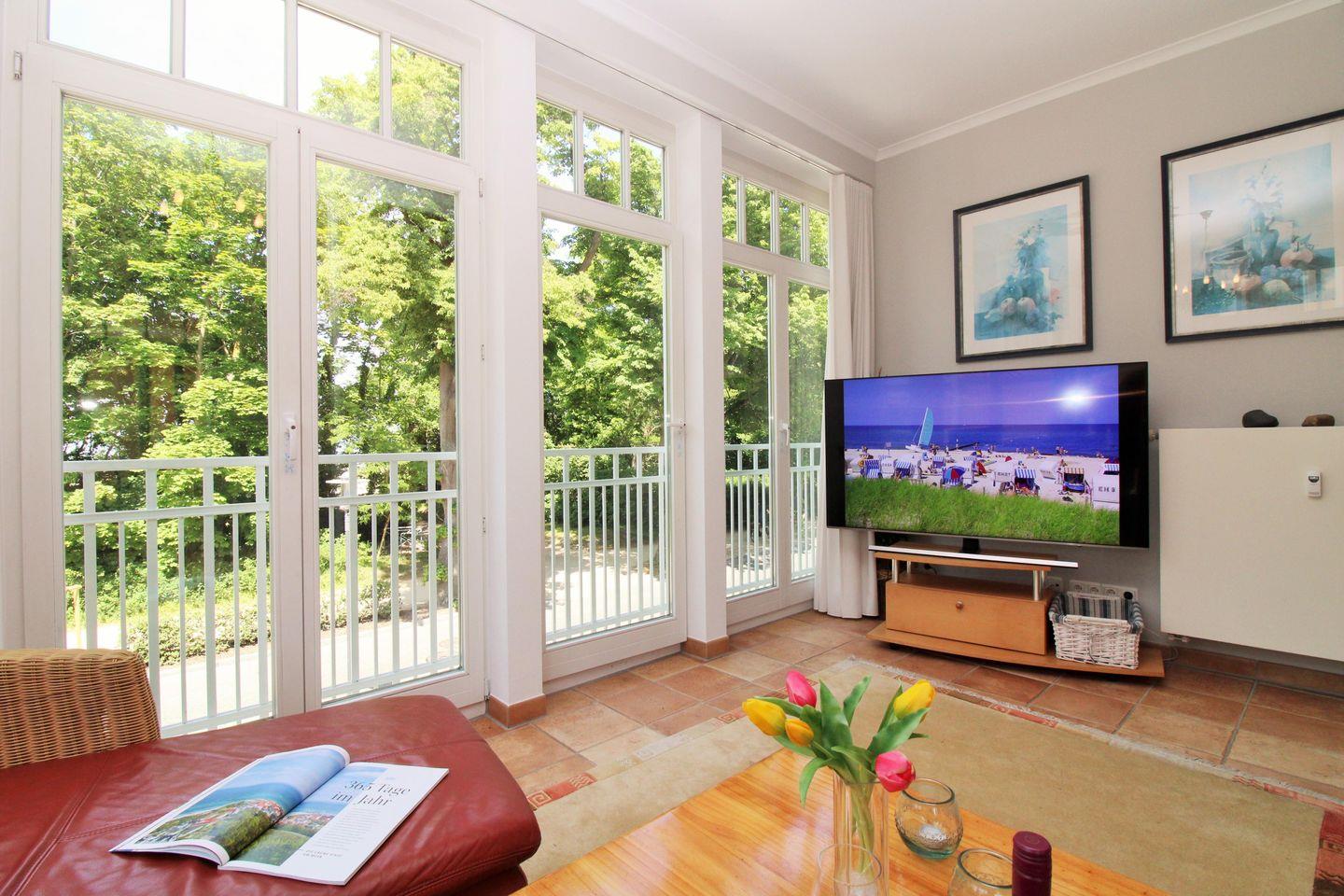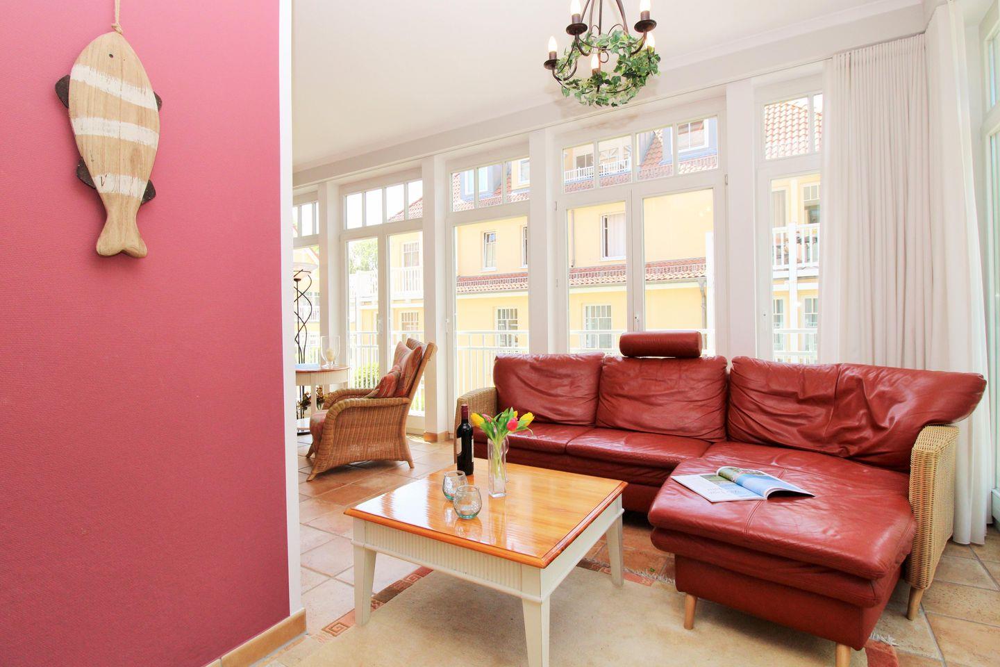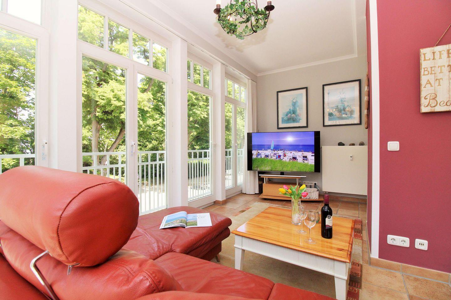 Komfortable 3-Zimmer-Ferienwohnung mit Meerblick, Balkon, WLAN und Zugang zu Hallenbad, Sauna und Fitnessraum in Kühlungsborn-West.