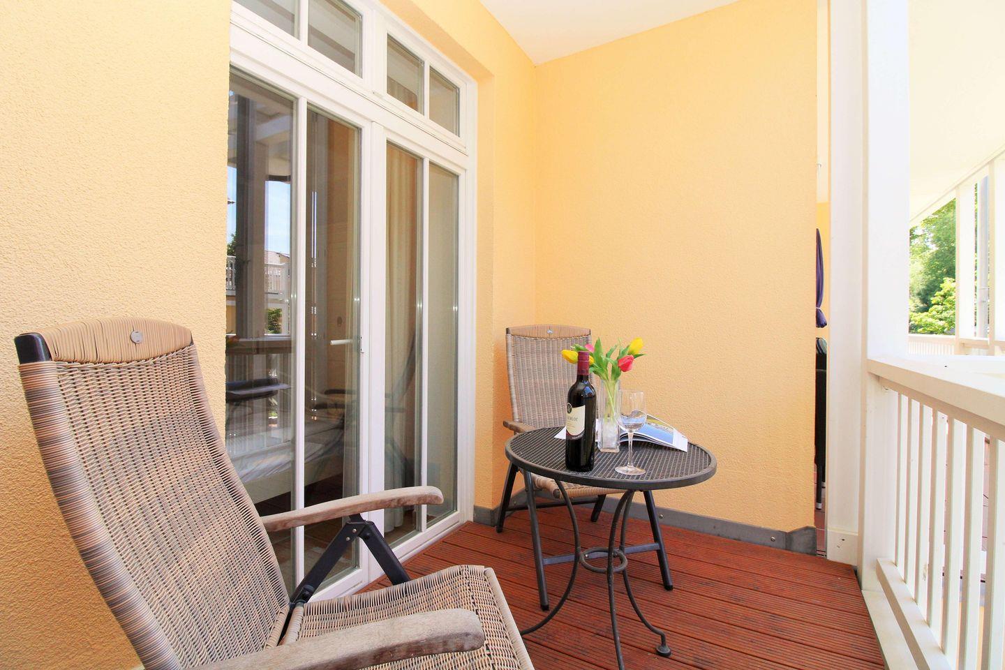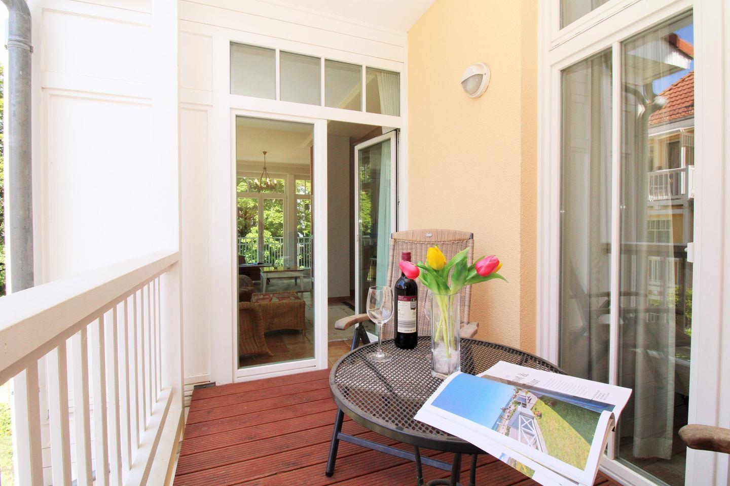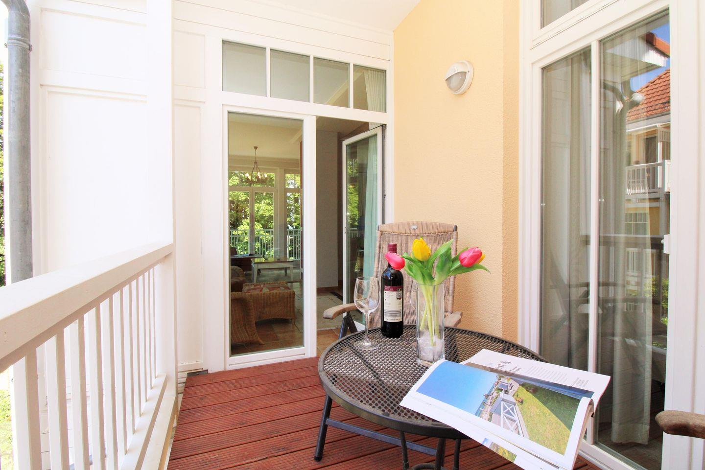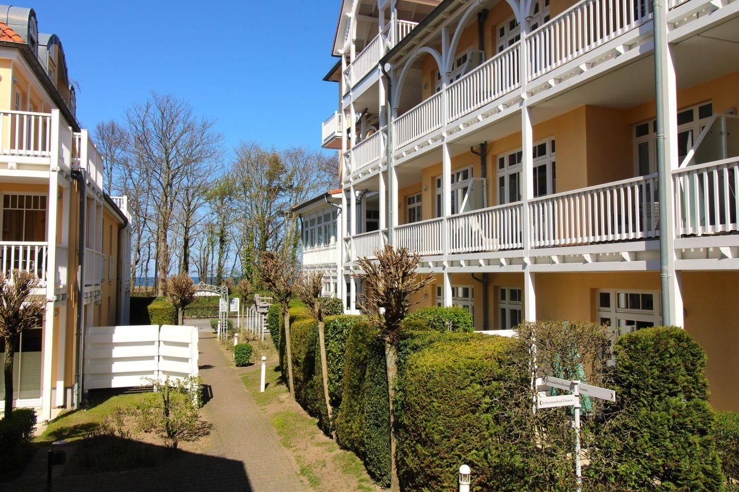 Komfortable 3-Zimmer-Ferienwohnung mit Meerblick, Balkon, WLAN und Zugang zu Hallenbad, Sauna und Fitnessraum in Kühlungsborn-West.