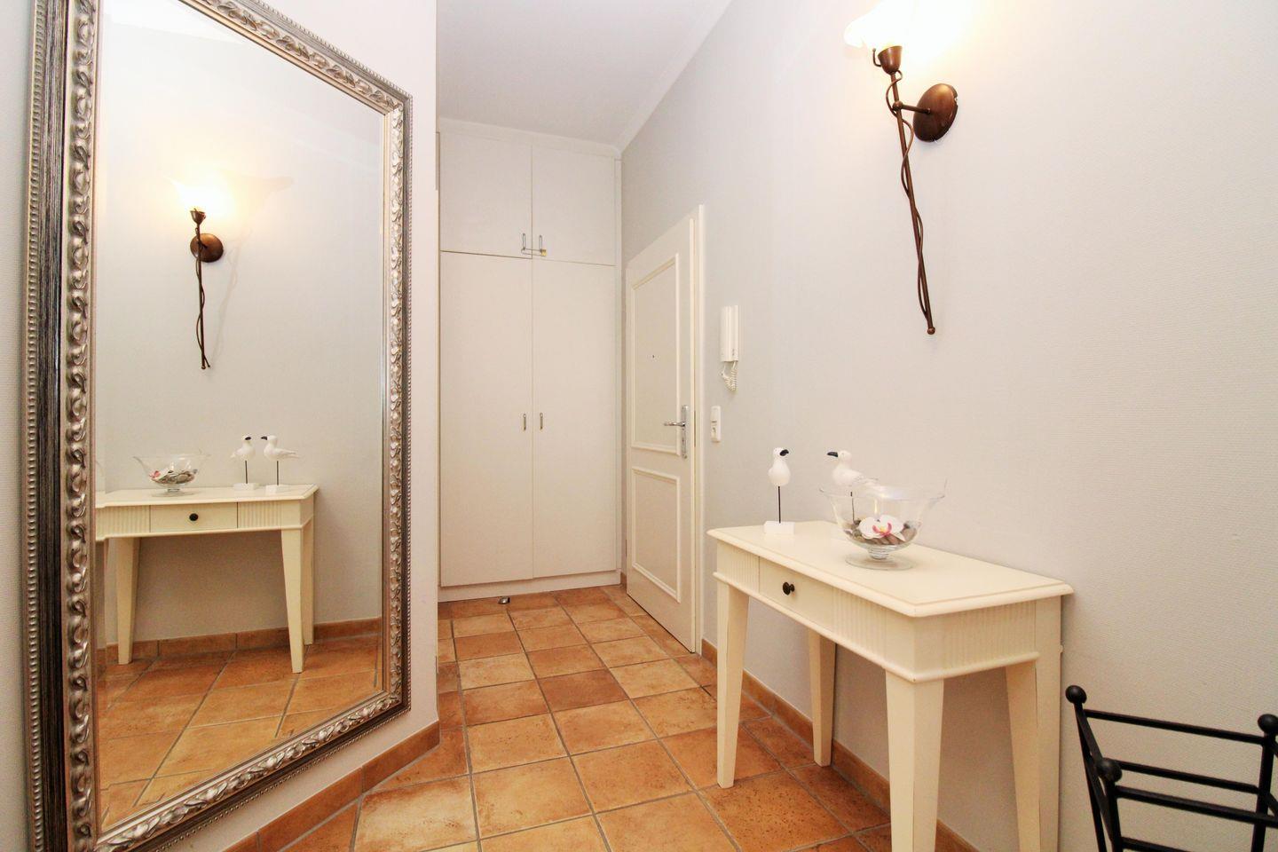 Vom geräumigen Flur mit Garderobe, Spiegel und Einbauschrank erreichen Sie bequem alle Räume Ihrer Ferienwohnung.