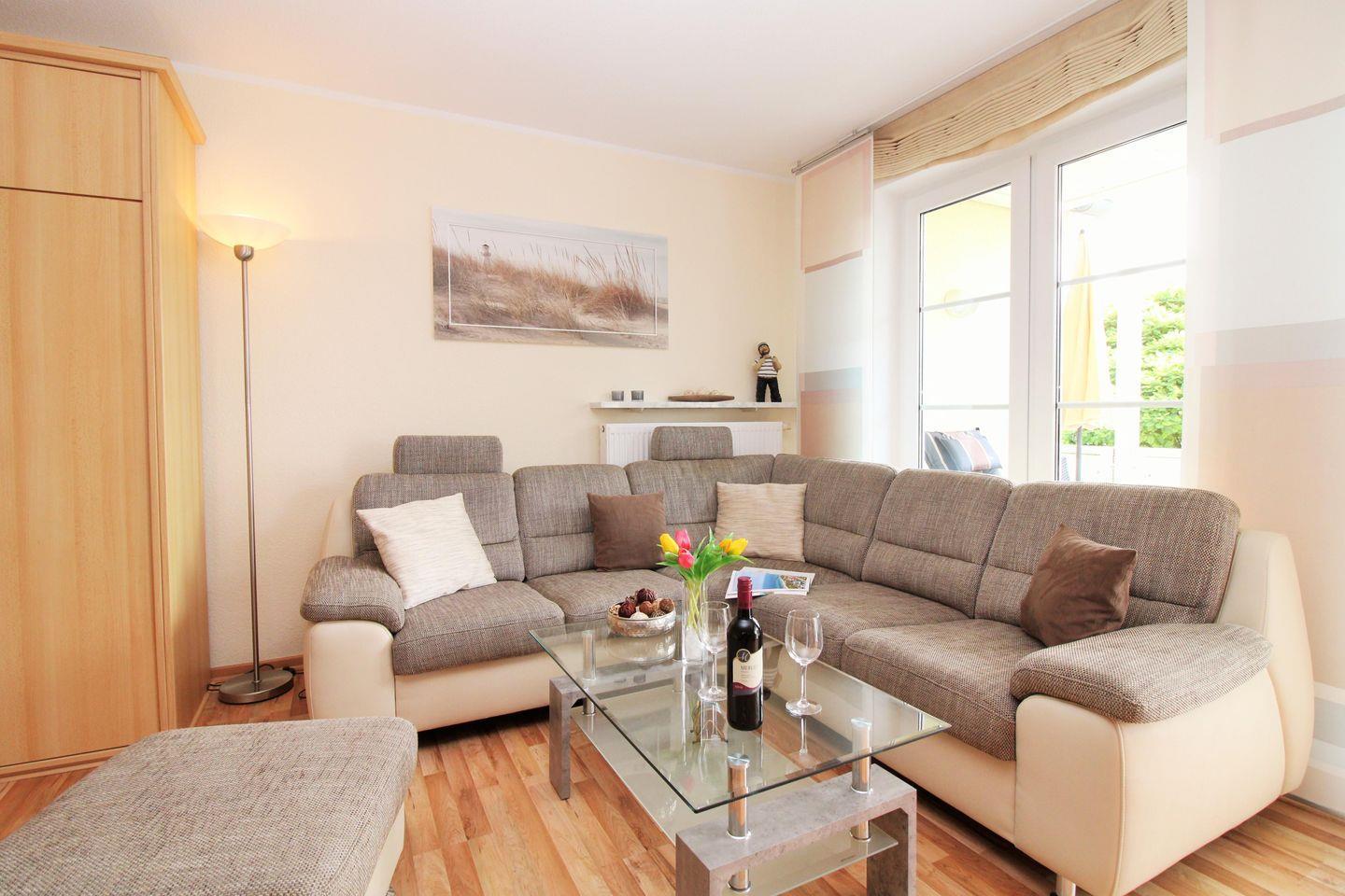 Sonnige 2-Zimmer-Ferienwohnung in Kühlungsborn mit großem Südbalkon, strandnah und komplett ausgestattet für einen entspannten Urlaub.