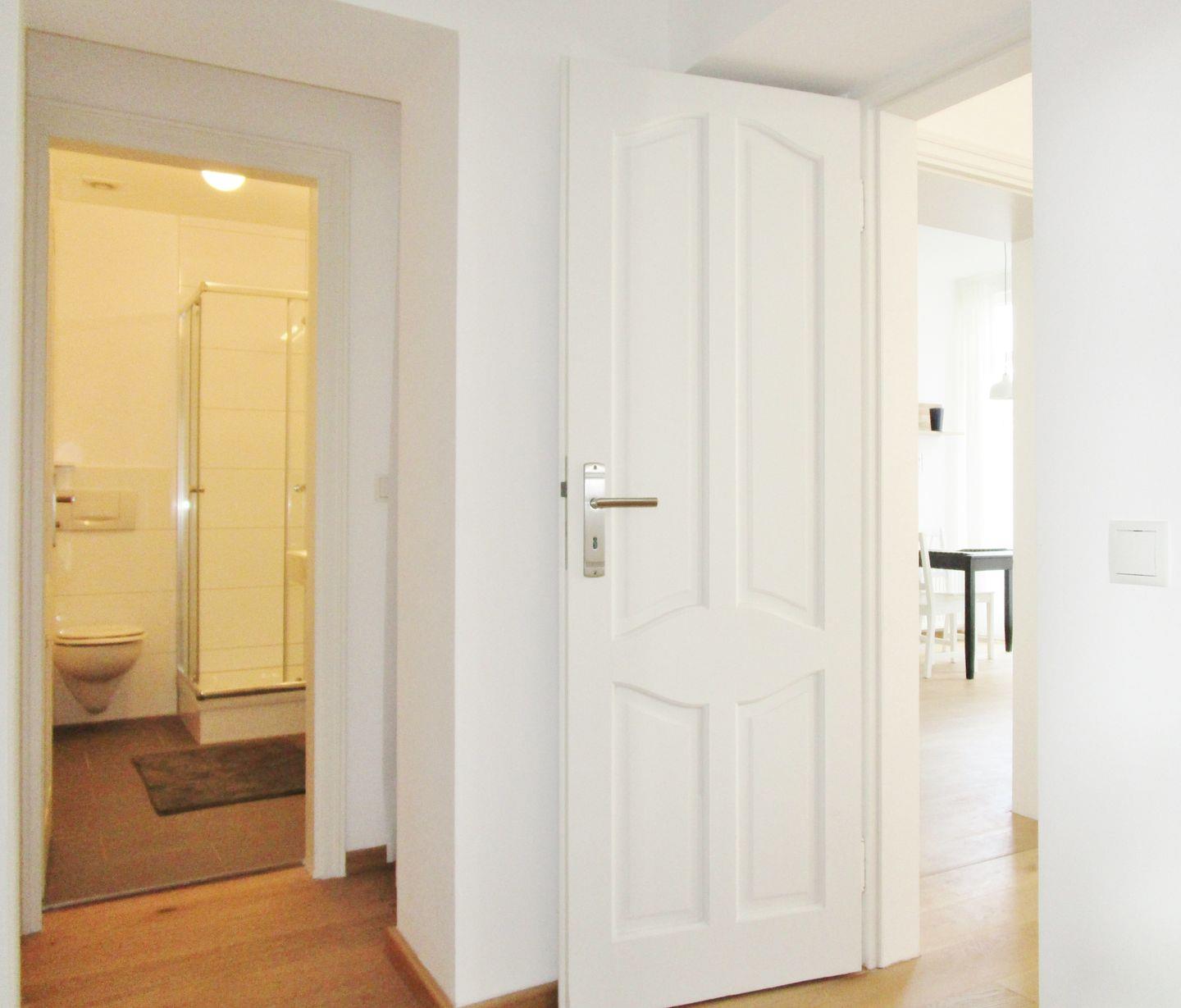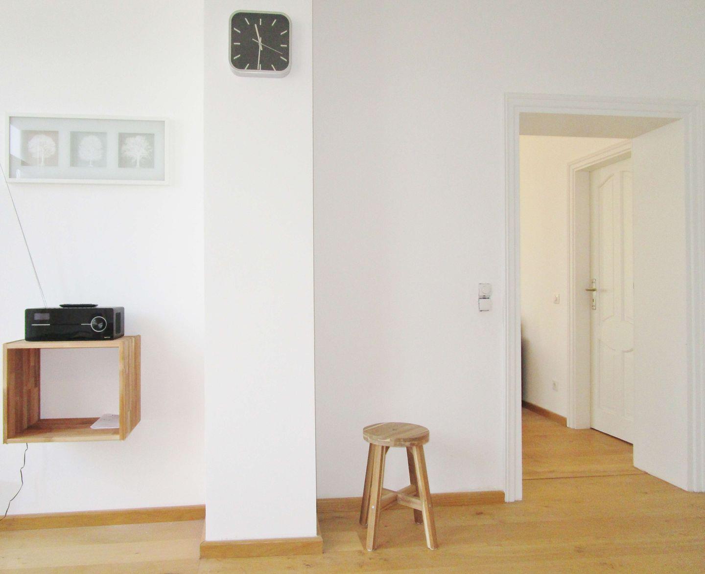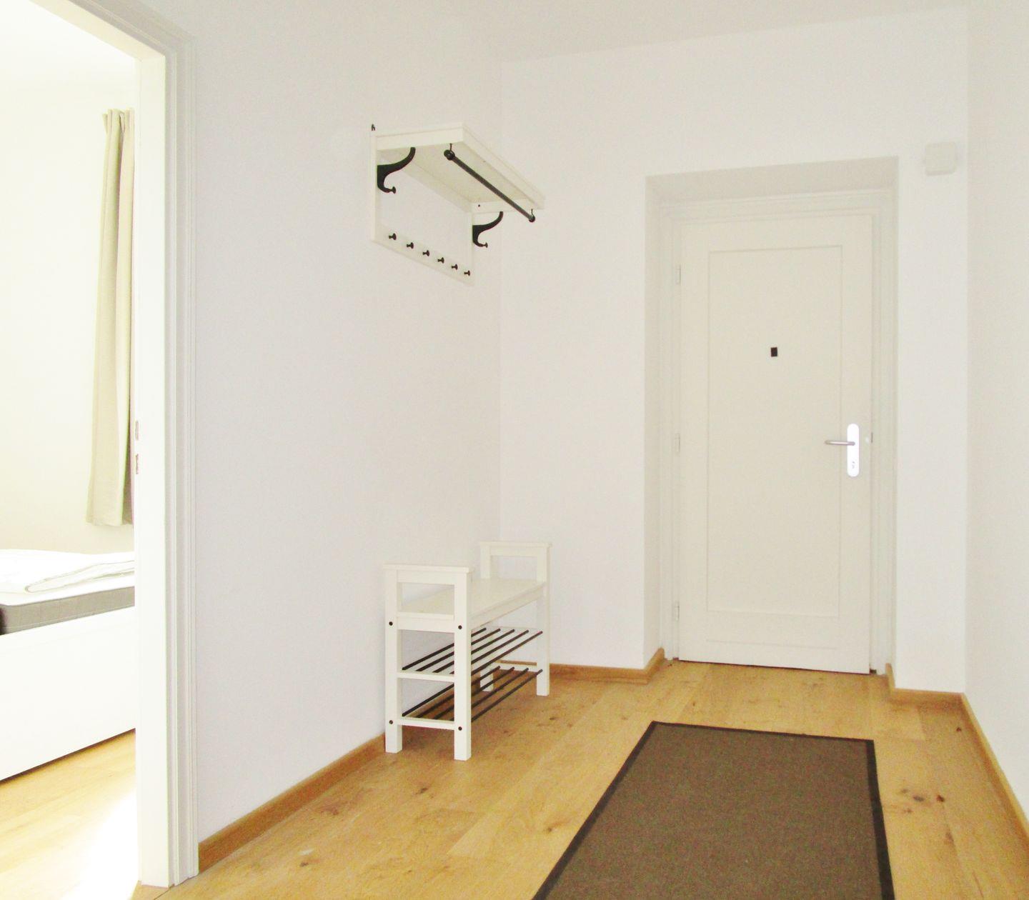 Ihre Schuhe und Jacken können Sie an der großen Garderobe (mit Schuhregal) im geräumigen Eingangsbereich der Wohnung unterbringen.