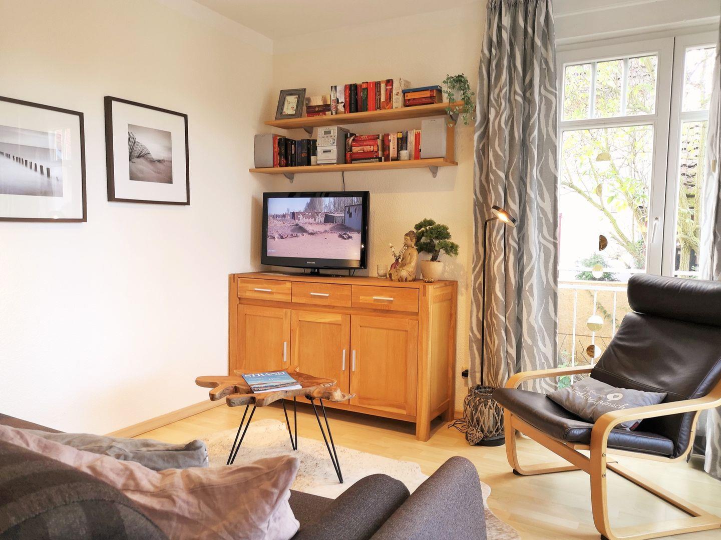 Zu Ihrer Unterhaltung stehen Ihnen in der Ferienwohnung ein modernes Flachbildschirm-TV-Gerät sowie eine Stereo-Anlage mit Radio und CD-Player zur Verfügung. Darüber hinaus verfügt die Wohnung über kostenfreies WLAN.
