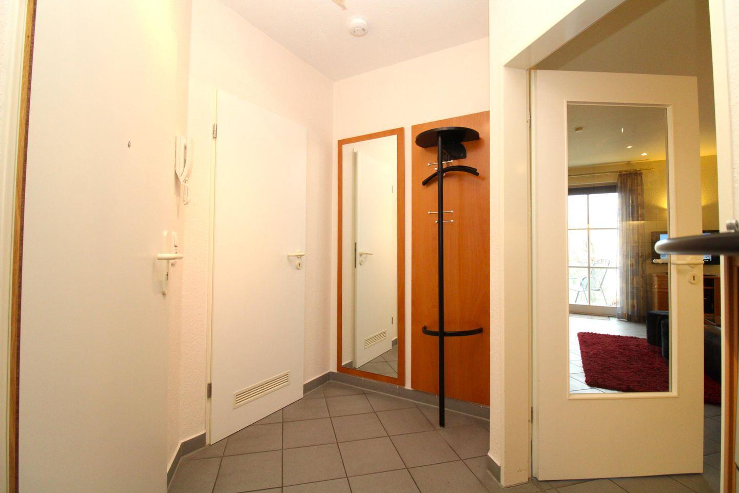 Ihre Schuhe und Jacken können Sie an der Garderobe (mit Spiegel) und Schuhschrank im geräumigen Eingangsbereich der Wohnung unterbringen.