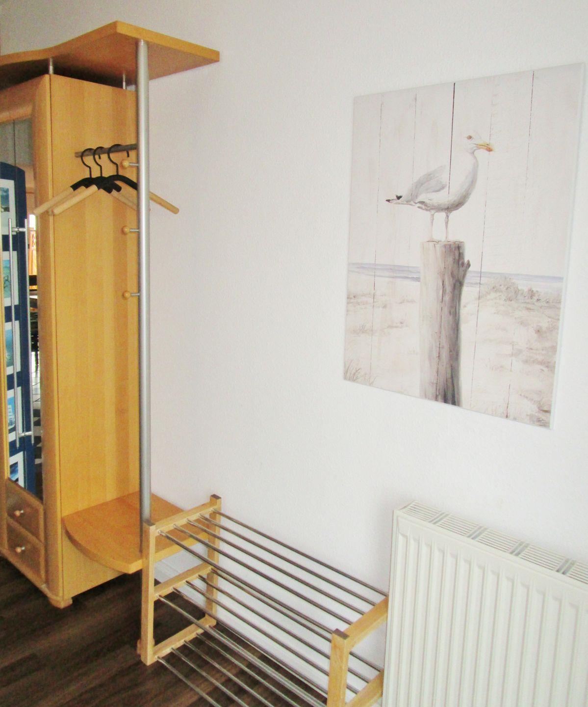 Von der geräumigen Diele mit Garderobe, Schrank, Spiegel und Schuhständer erreichen Sie bequem alle Räume Ihrer Ferienwohnung.