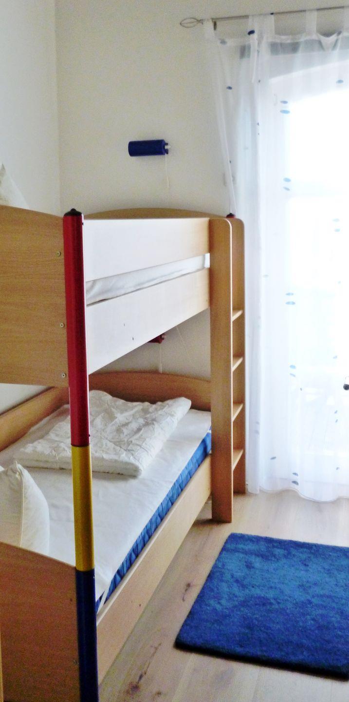 Das zusätzliche 2. Schlafzimmer (Kinderzimmer) verfügt über ein bequemes Etagenbett für 2 Personen, Nachttische, einen geräumigen Kleiderschrank sowie eine kleine Tisch-/Sitzgruppe für Kinder und hat einen direkten Zugang zum Balkon.