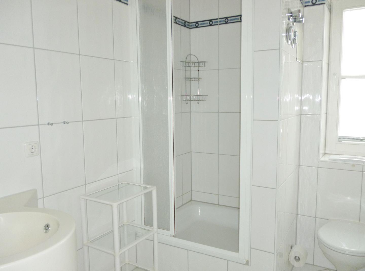 Das helle und moderne Badezimmer (mit Tageslicht / Fenster) verfügt über eine Dusche, Waschbecken, WC sowie ausreichend Ablagemöglichkeiten.
