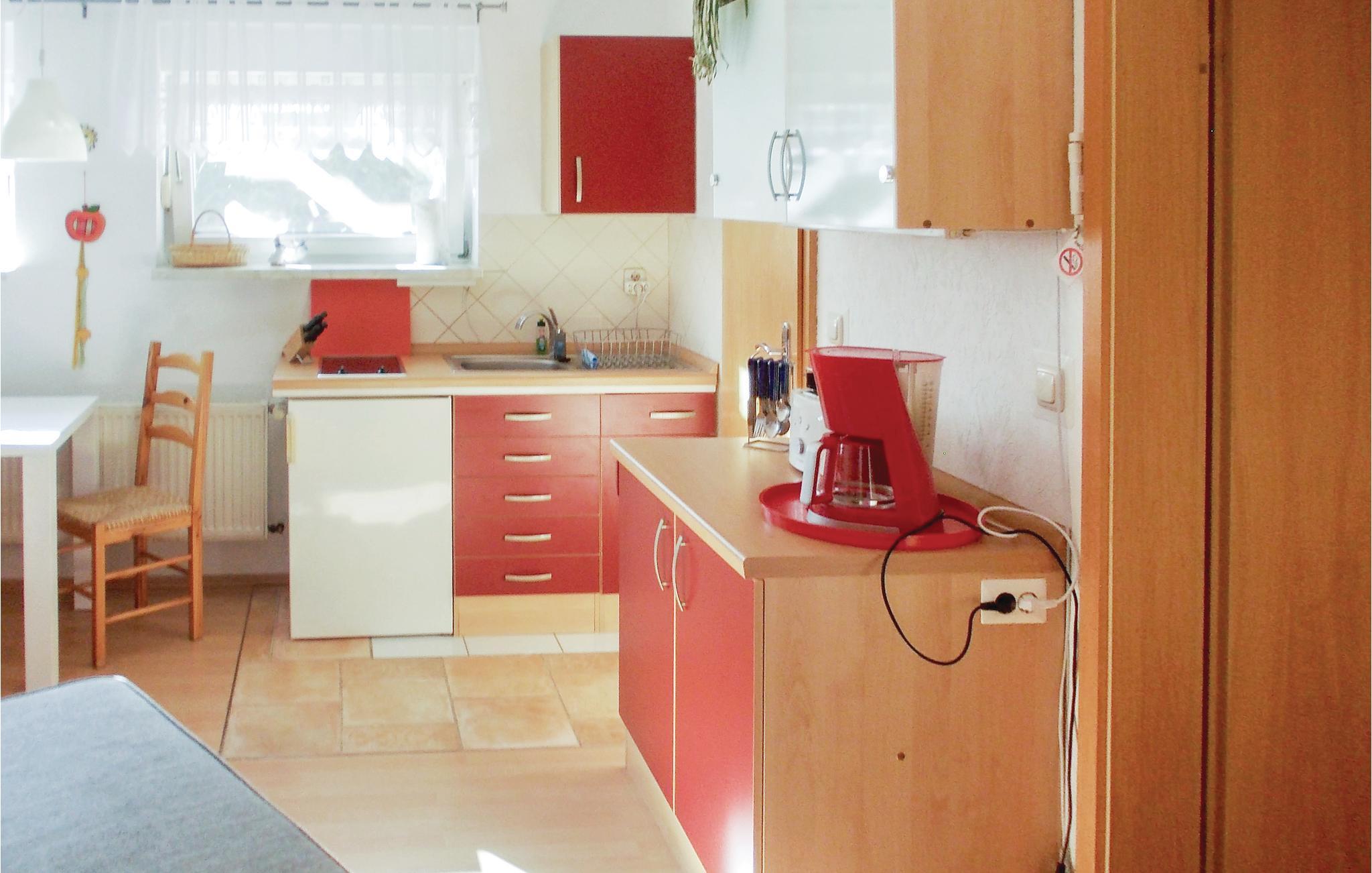 Eine Waschmaschine im vorgelagterten Kellerraum kann auf Anfrage und gegen Gebühr mitbenutzt werden.