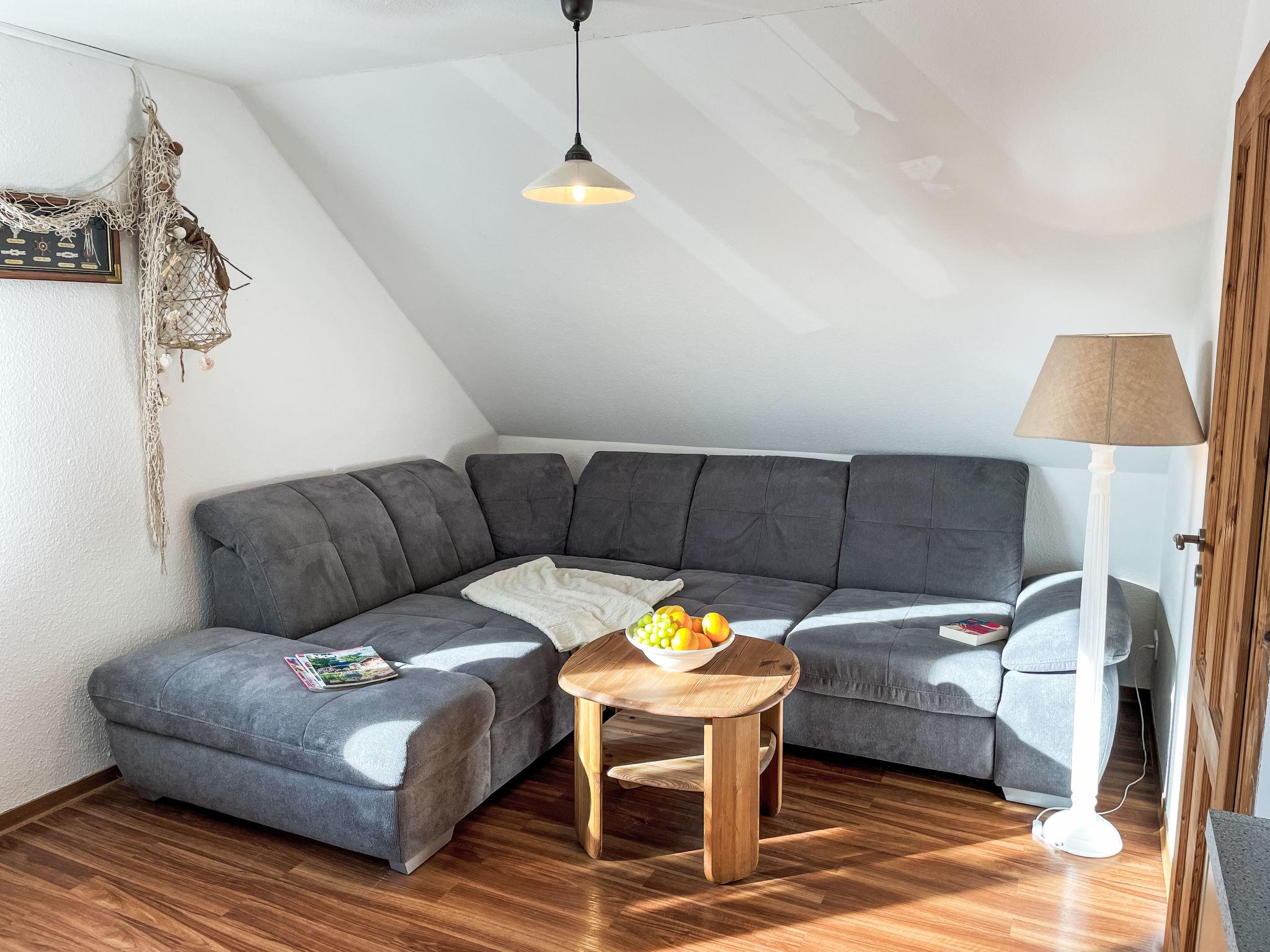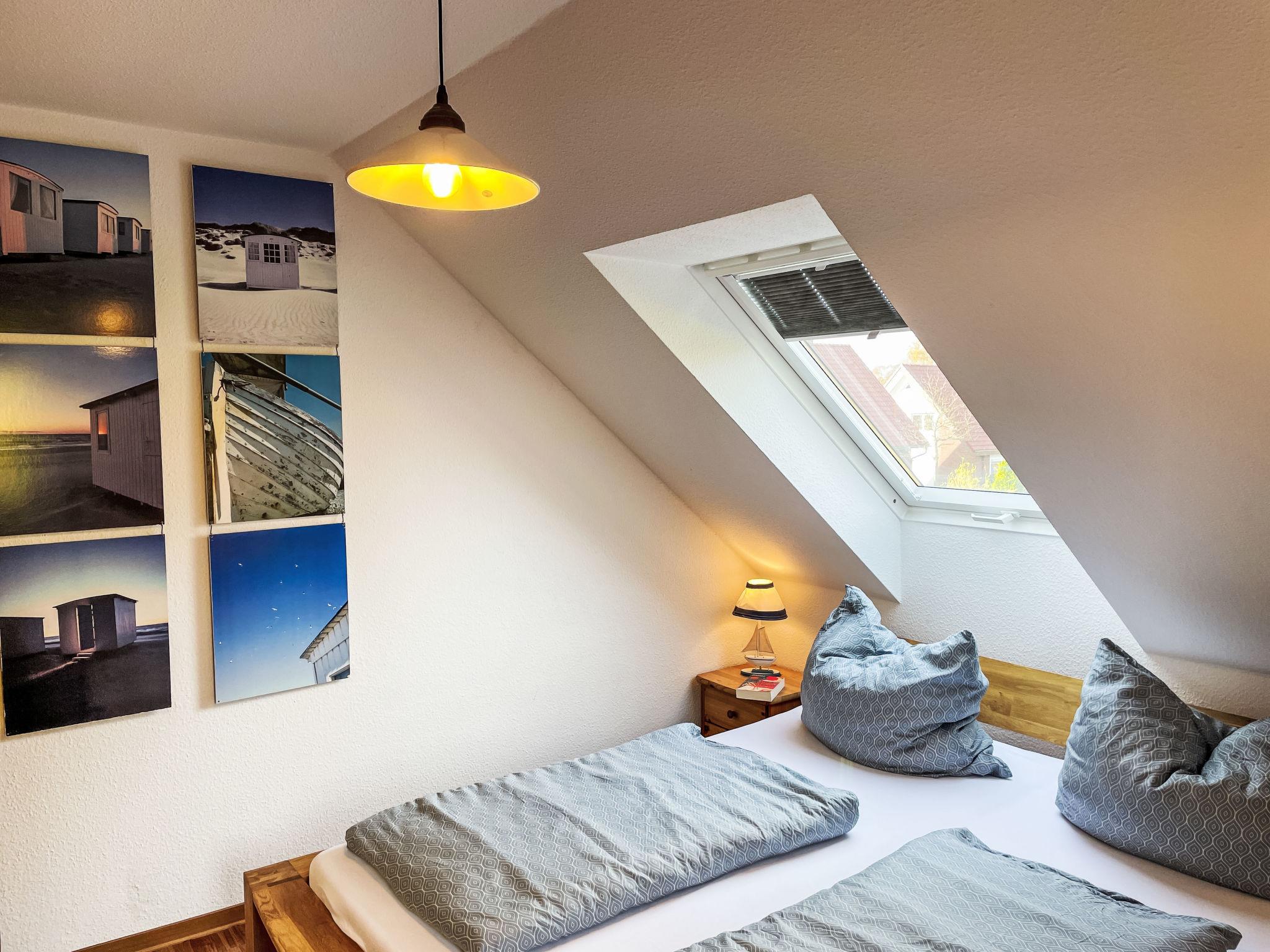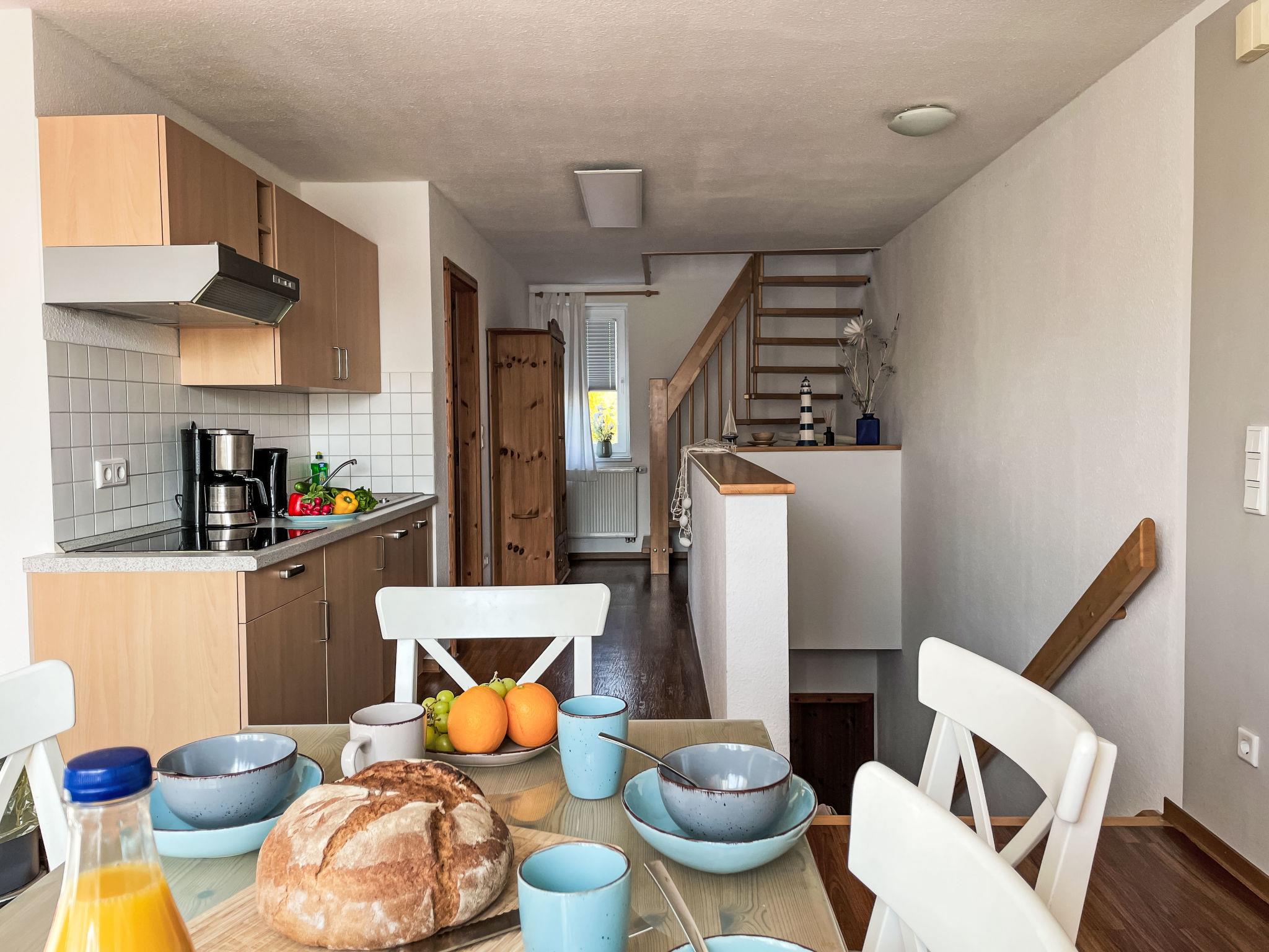 "Mediterrane Fischerwohung", 3-Zimmer-Wohnung 69 m2 auf 2 Stockwerken. Hell, teilweise abgeschrägt, schön und gemütlich eingerichtet: Obergeschoss: Wohn-/Esszimmer mit Essecke und Sat-TV (Flachbildschirm), Radio. 1 Zimmer mit 1 Doppelbett (180 cm, Länge 200 cm). Offene Küche (Geschirrspüler, 4 Glaskeramikplatten, Toaster, Wasserkocher, elektrische Kaffeemaschine). Dusche/WC. Dachgeschoss: offenes Durchgangszimmer mit 1 Doppeldiwanbett (140 cm, Länge 200 cm). 1 Zimmer mit 2 Betten (90 cm, Länge 200 cm). G-Heizung. Gartensitzplatz. Terrassenmöbel. Zur Verfügung: Internet (WLAN, gratis). Parkplatz (1 Auto) beim Haus. Bitte beachten: Nichtraucher-Unterkunft. Rauchmelder.