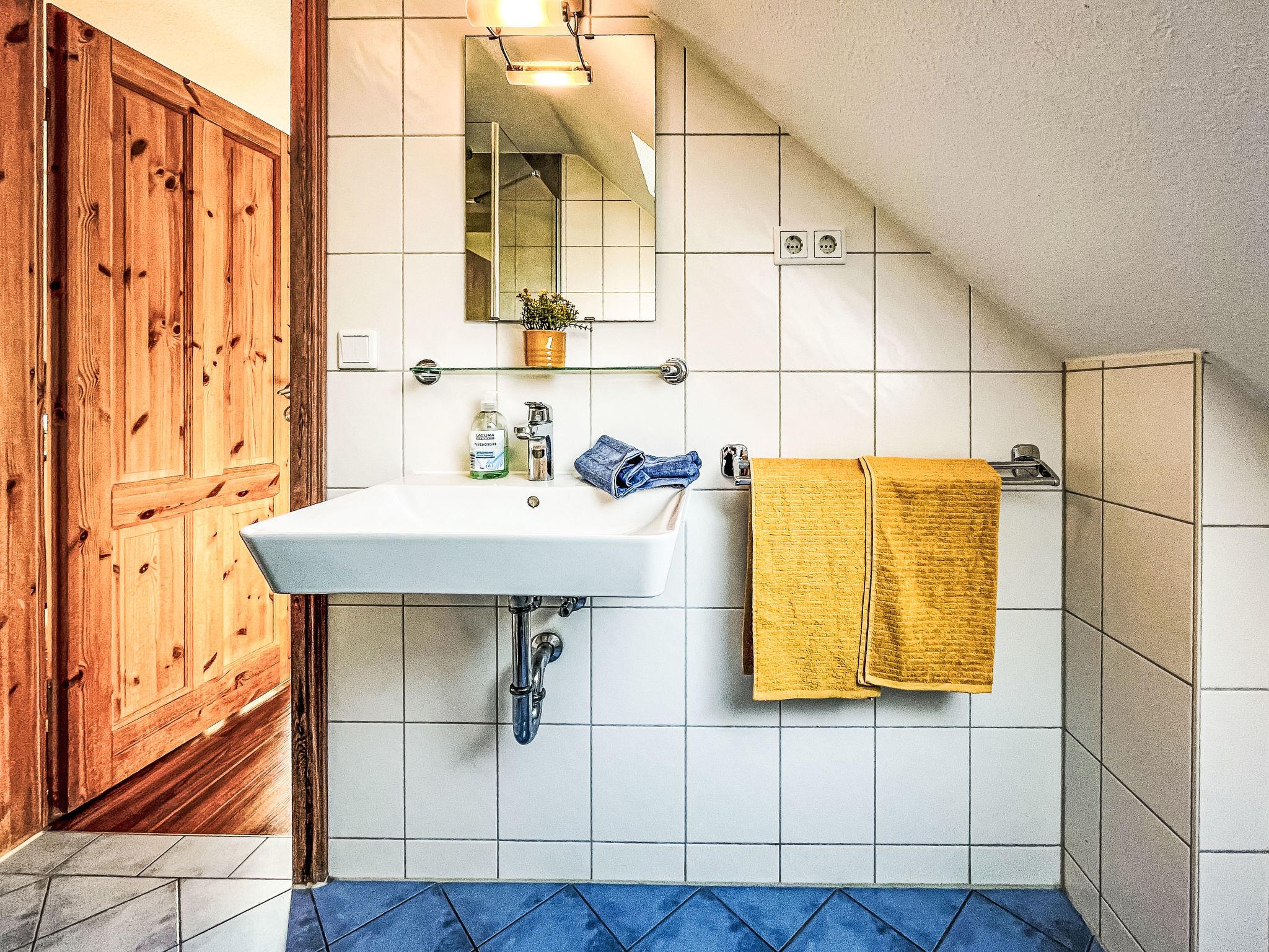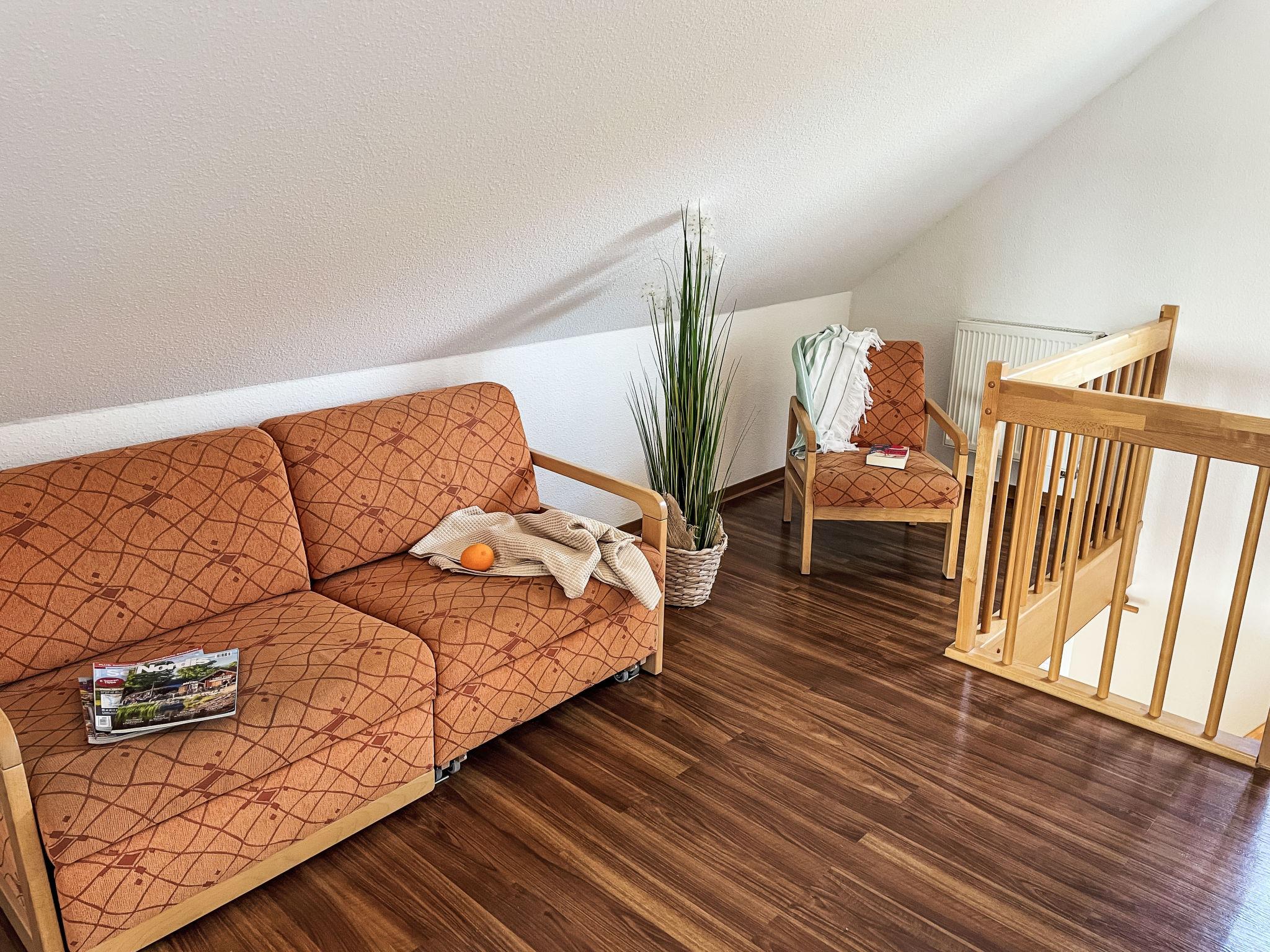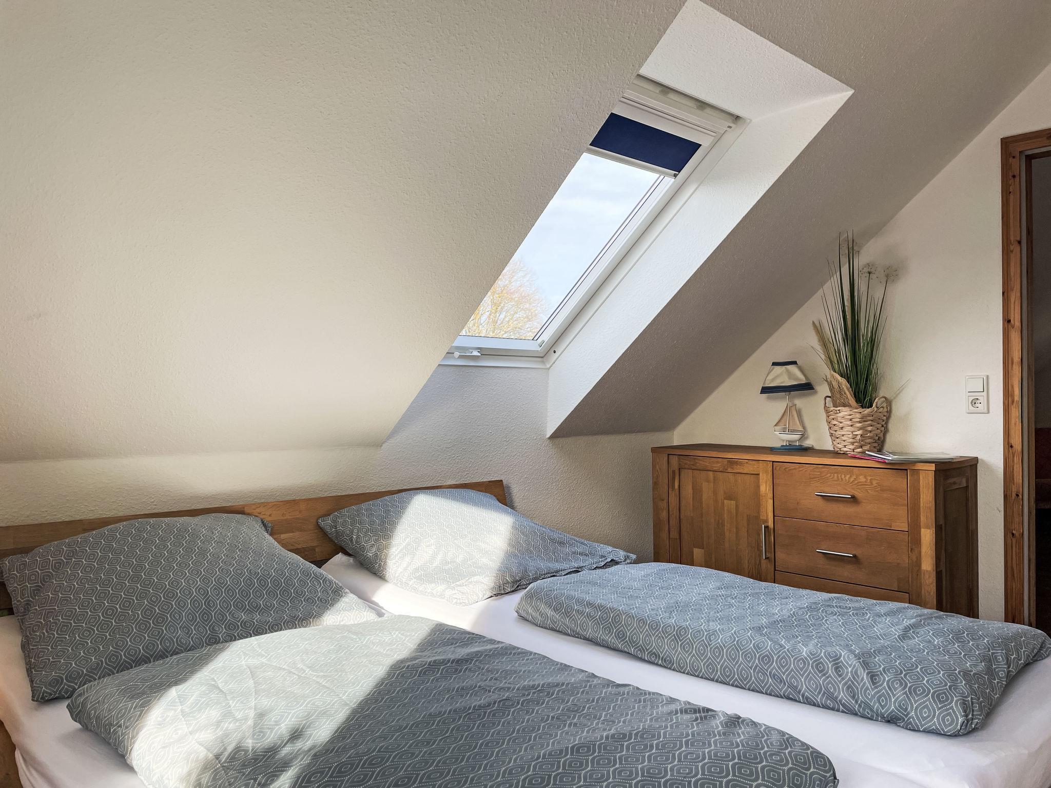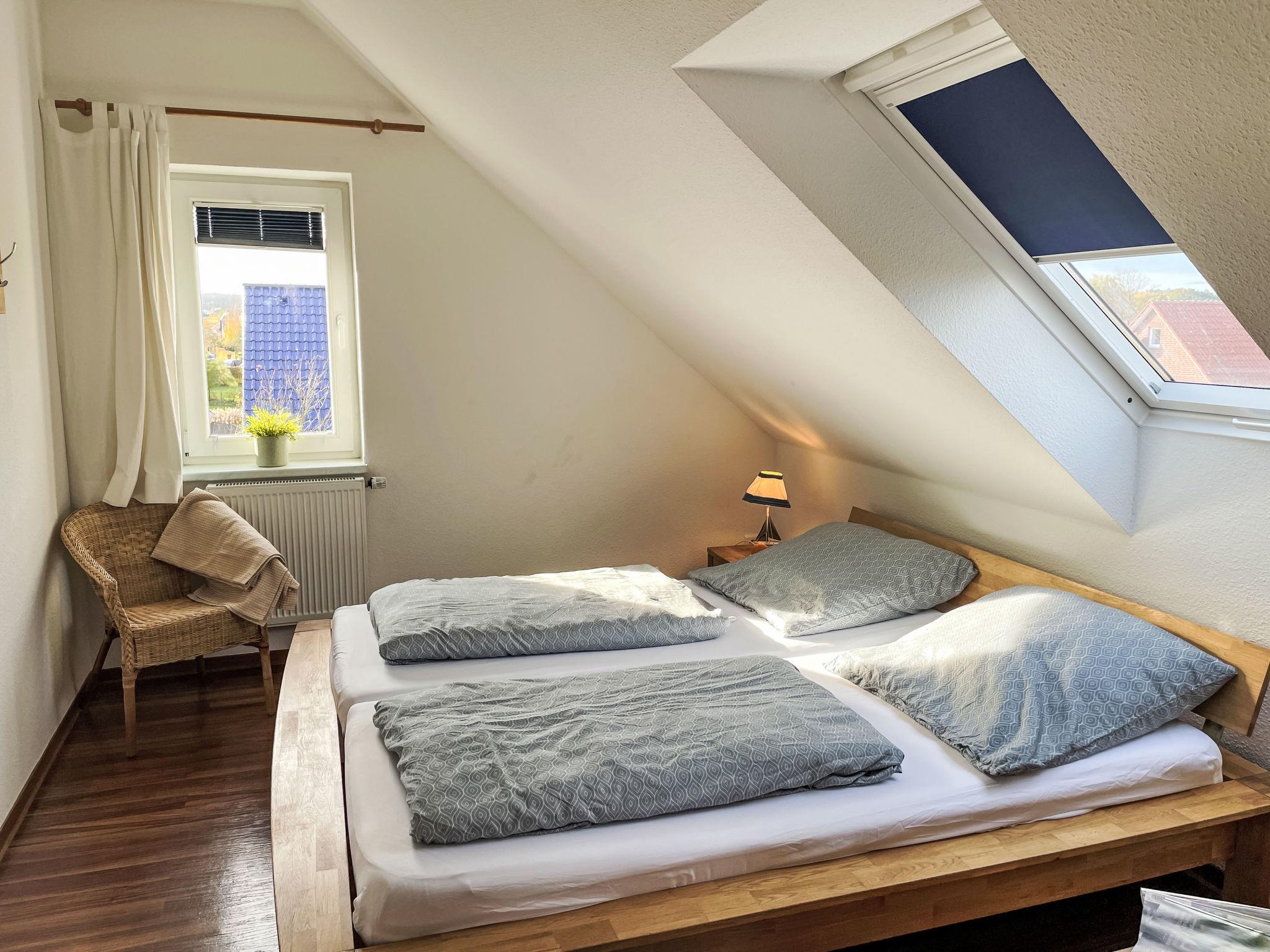 "Mediterrane Fischerwohung", 3-Zimmer-Wohnung 69 m2 auf 2 Stockwerken. Hell, teilweise abgeschrägt, schön und gemütlich eingerichtet: Obergeschoss: Wohn-/Esszimmer mit Essecke und Sat-TV (Flachbildschirm), Radio. 1 Zimmer mit 1 Doppelbett (180 cm, Länge 200 cm). Offene Küche (Geschirrspüler, 4 Glaskeramikplatten, Toaster, Wasserkocher, elektrische Kaffeemaschine). Dusche/WC. Dachgeschoss: offenes Durchgangszimmer mit 1 Doppeldiwanbett (140 cm, Länge 200 cm). 1 Zimmer mit 2 Betten (90 cm, Länge 200 cm). G-Heizung. Gartensitzplatz. Terrassenmöbel. Zur Verfügung: Internet (WLAN, gratis). Parkplatz (1 Auto) beim Haus. Bitte beachten: Nichtraucher-Unterkunft. Rauchmelder.