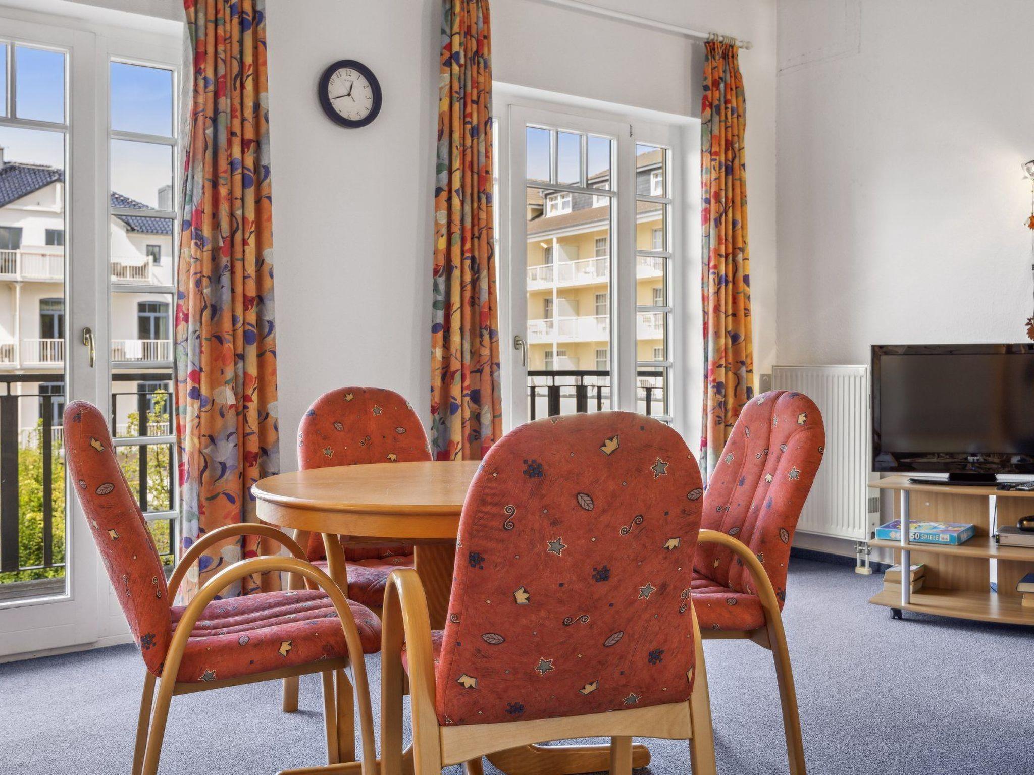 Appartement für 2-4 Pers. in einem Appartementhaus, Westlage, Entfernung zum Strand 2 Min., Autostellplatz 8 in der Tiefgarage ( max. 1,50 m Höhe, max. Breite 2,10 m, max. Länge 5,00 m ) Bitte beachten Sie jedoch auch die genauen Angaben auf den Schildern zwischen den Parkboxen vor Einfahrt in die Garage. Das Appartement verfügt über: Wohn- und Schlafraum ausgestattet mit Polstermöbel (Doppelschlafcouch), Essplatz, Sat-TV, Radio mit CD-Spieler, Küchenzeile mit E-Herd, Mikrowelle, Kühlschrank, Toaster, Kaffeemaschine, Wasserkocher etc., Schlafraum mit Doppelbett und Kleiderschrank.