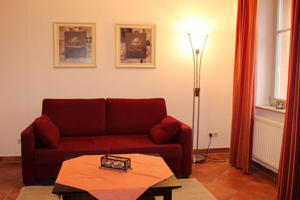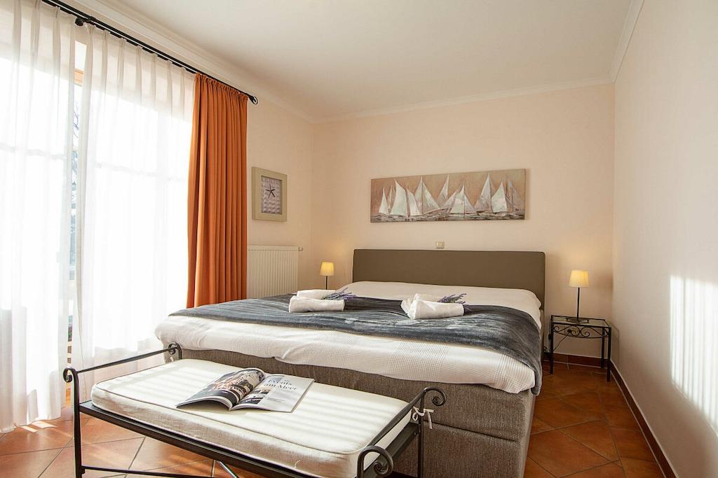 Die Ferienwohnung verfügt über ein Schlafzimmer mit einem Boxspringbett 180 x 200. Die im Landhausstil eingerichtete Küche verfügt über alle gängigen Haushaltsgeräte. Die Residenz Seestern, in absoluter Toplage, liegt nur wenige Meter von der Fußgängerzone "Unter den Kolonnaden" und dem Baltic Park entfernt. 1898 ursprünglich als Hotel zur Post erbaut, wurde sie mit viel Liebe zum Detail 2005 im Bäderstil erstellt.