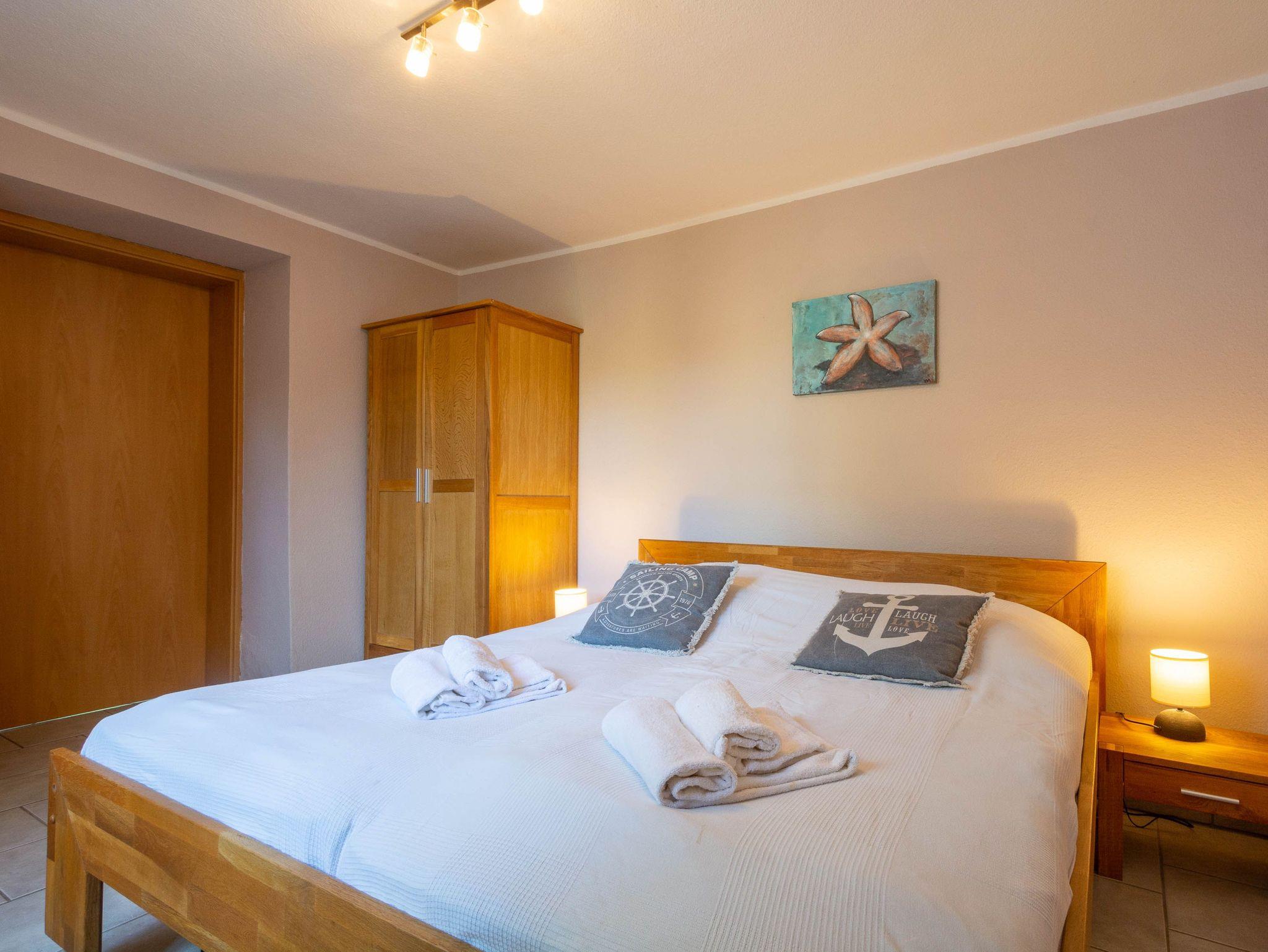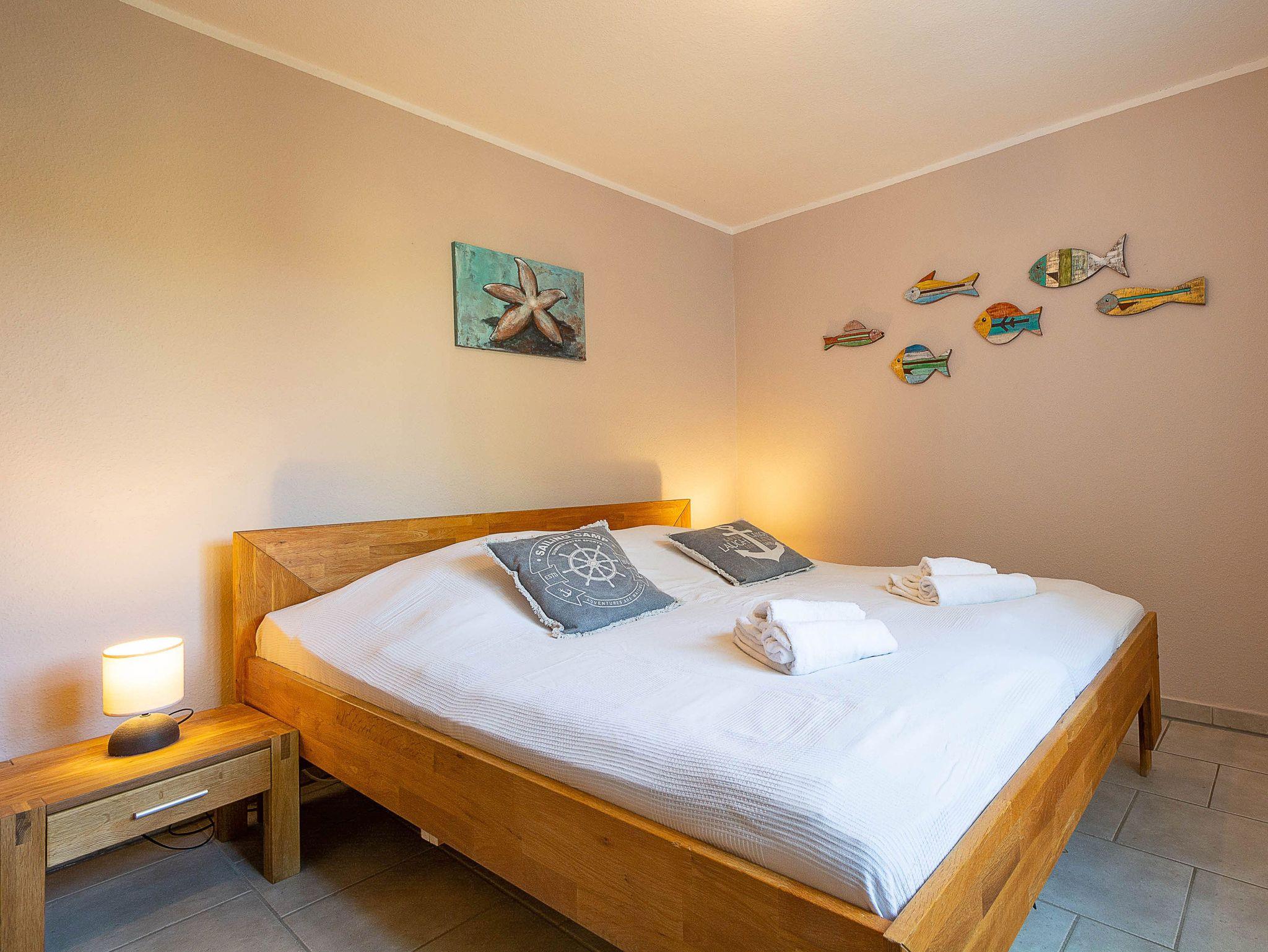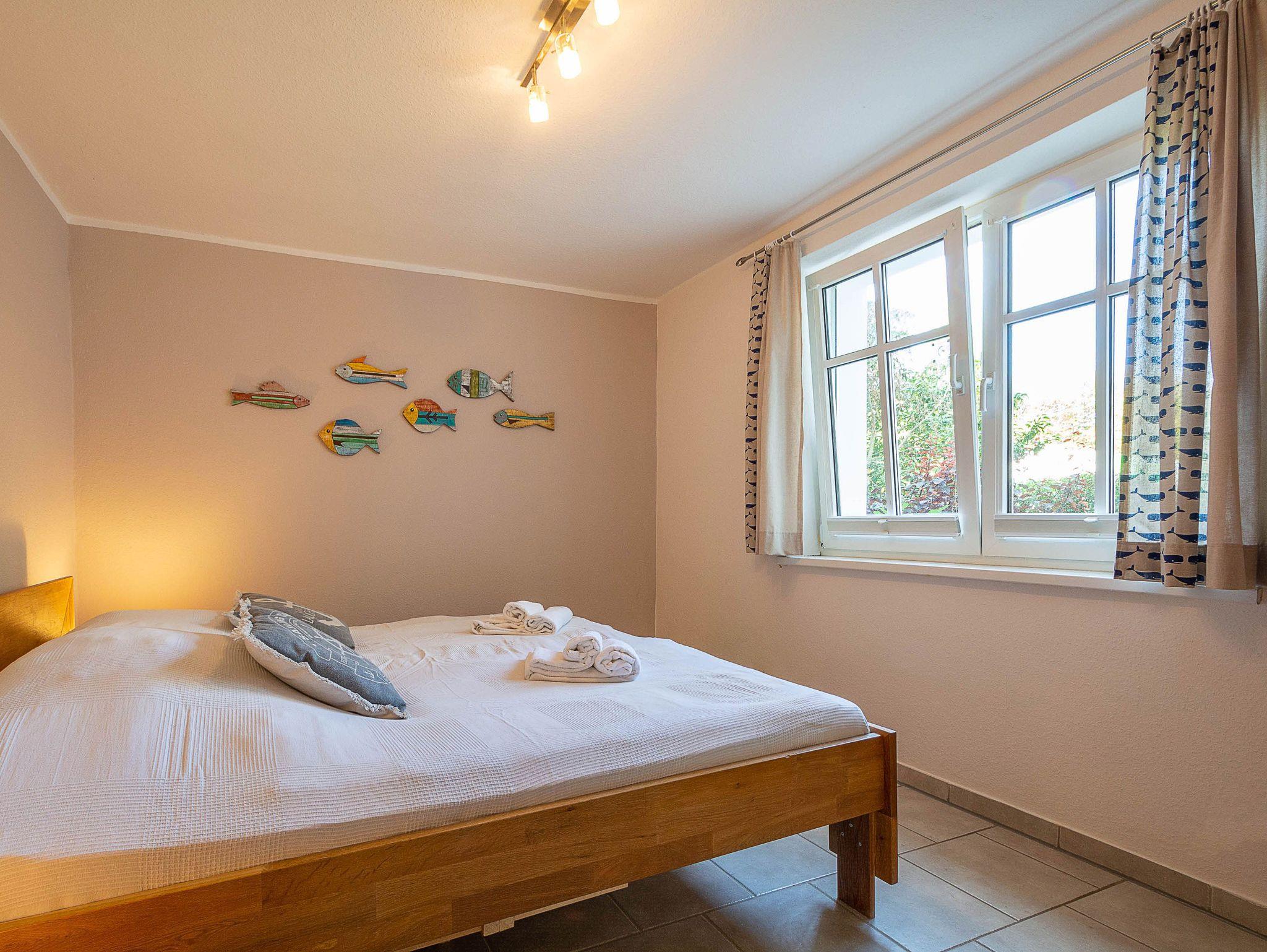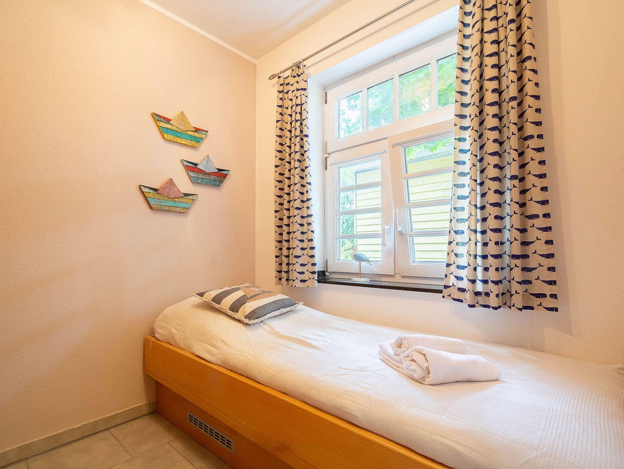 Im Schlafzimmer lädt Sie ein komfortables Doppelbett (2 x 90 x 200 cm) zur Nachtruhe ein. Der großzügige Kleiderschrank bietet ausreichend Platz für Ihre Urlaubsgarderobe. Als Sichtschutz bzw. zum Verdunkeln sind im Schlafzimmer Vorhänge und Plissees an den Fenstern angebracht. Das zweite kleinere Schlafzimmer bietet Platz für eine weitere Person. Ein kleines Einzelbett (80 cm x 200 cm) sowie ein Kleiderschrank befinden sich in diesem Zimmer, welches mit zum Verdunkeln mit einem Vorhang versehen ist.