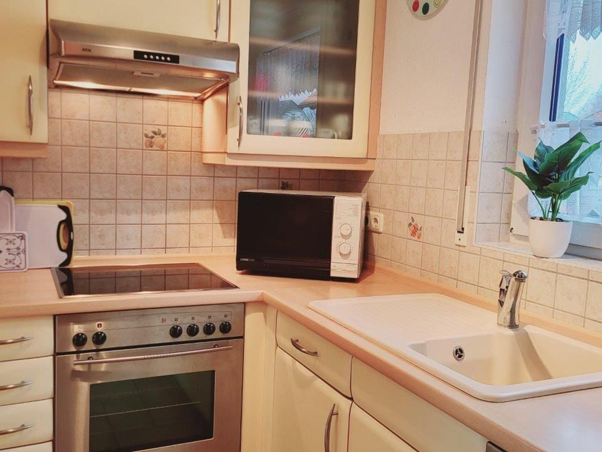- Küche - Herd mit Backröhre, Mikrowelle, Kühlschrank und Geschirrspüler