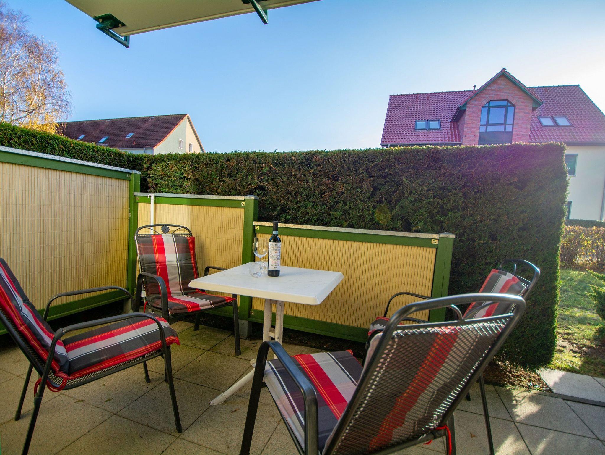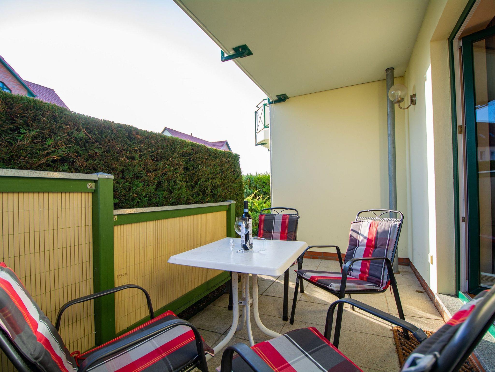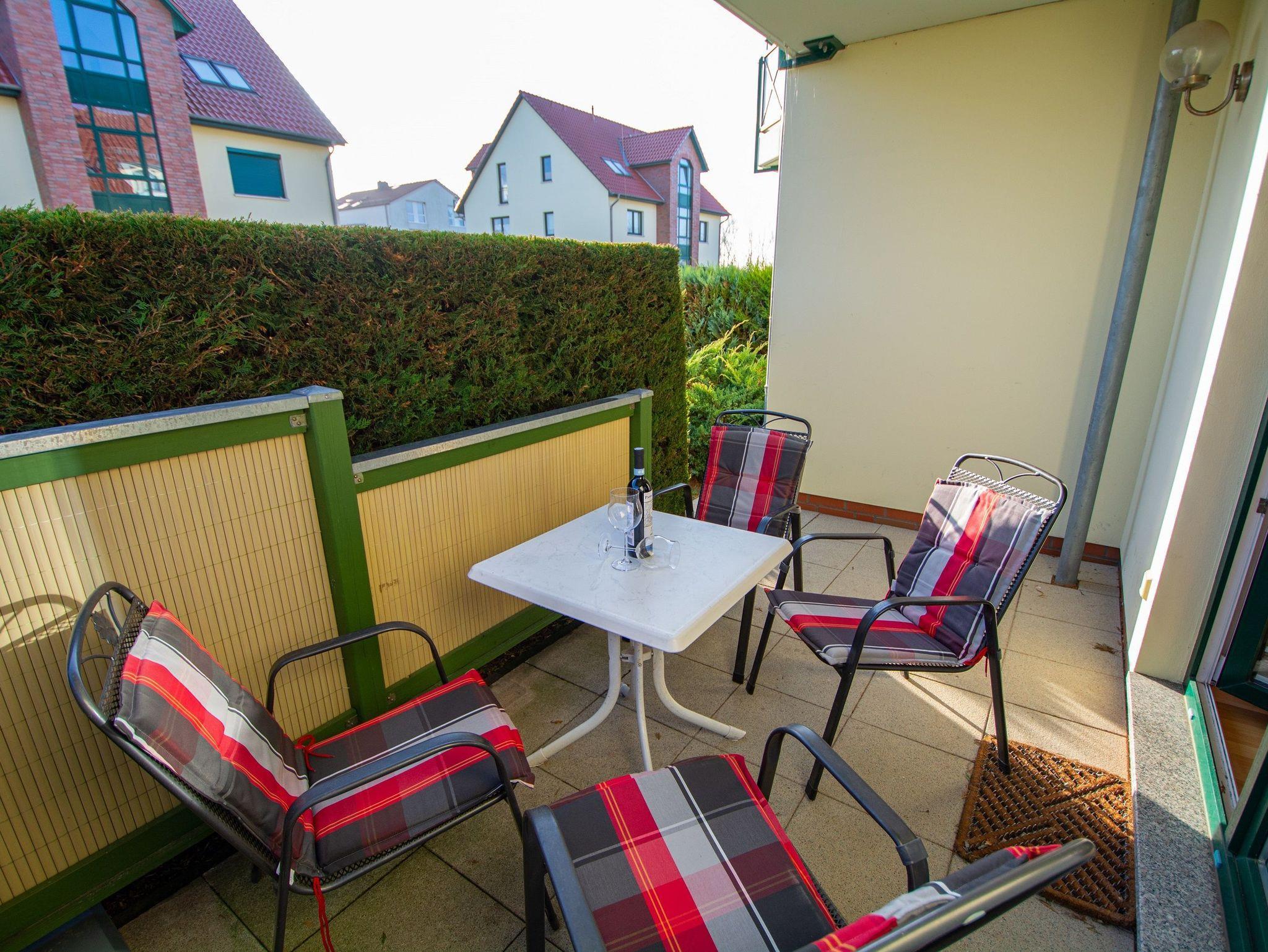 Helle 2-Zimmer-Ferienwohnung mit Südtresasse, Sauna und nur 100 Meter zum Strand in Kühlungsborn.