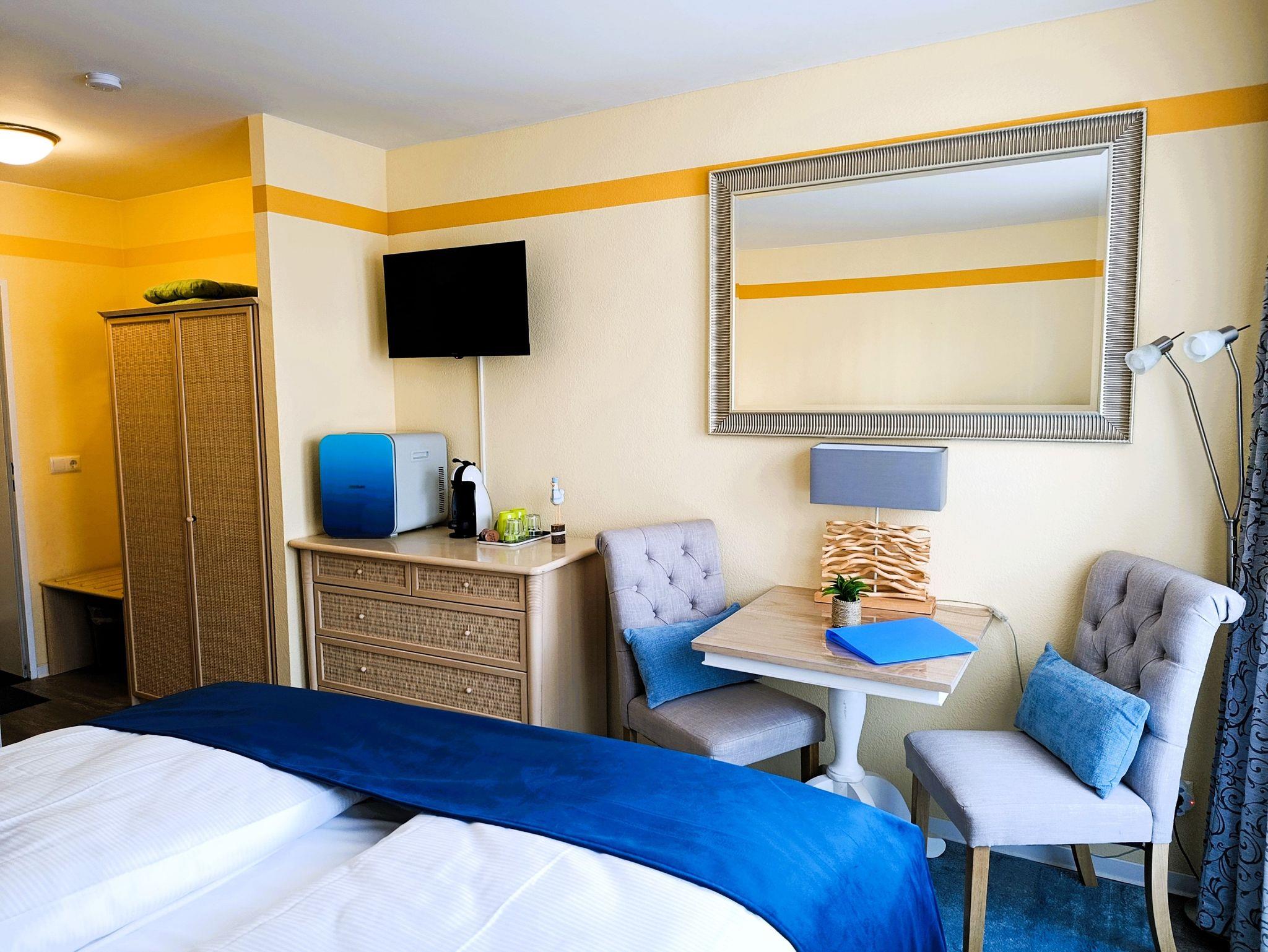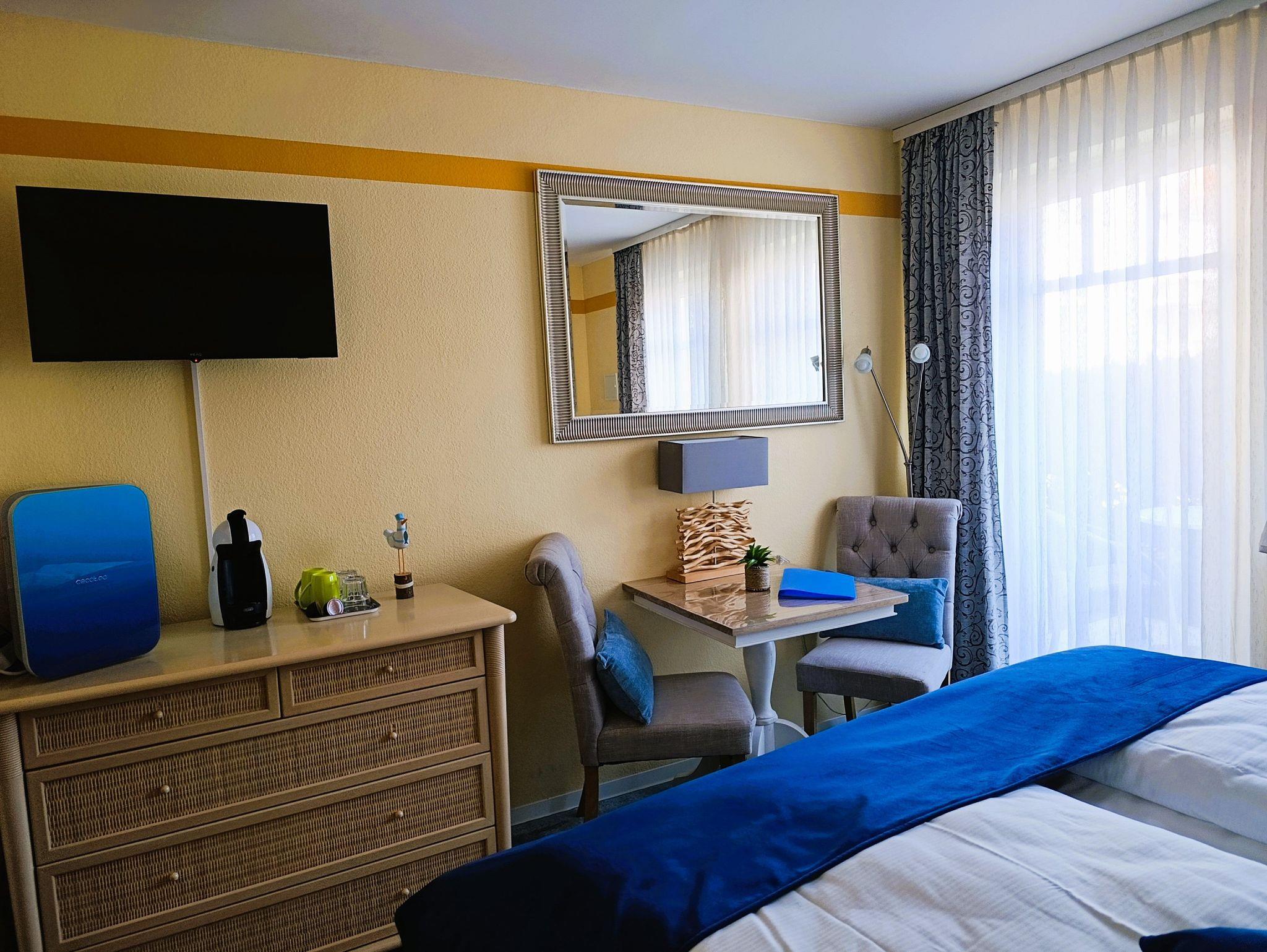 Doppelzimmer im Erdgeschoss mit Terrasse zur Ostseite.