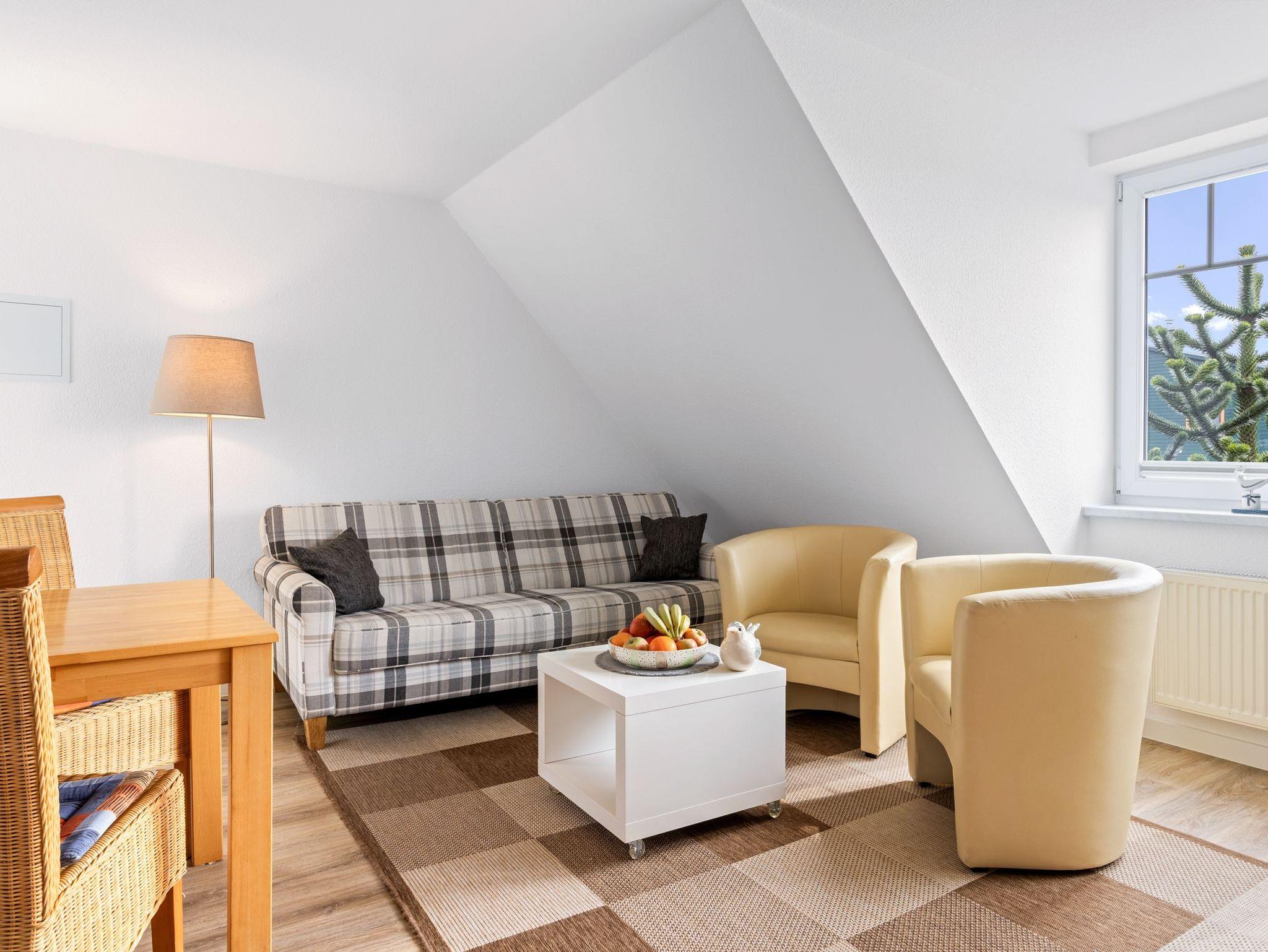 Genießen Sie Ihren Ostseeurlaub in der komfortabel eingerichteten 3- Raum- Maisonette Ferienwohnung im Ferienhof am Leuchtturm.