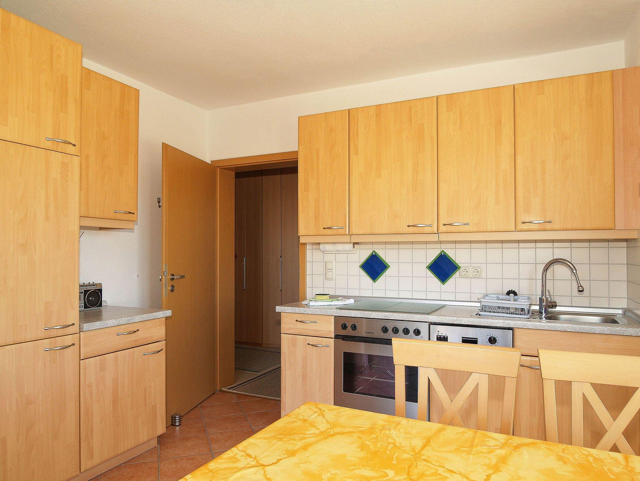 Die separate Küche hält für Sie alle wichtigen Küchengeräte und -utensilien bereit, die Sie für Ihr perfektes Dinner benötigen: Ein 4-Zonen-Cerankochfeld, ein Backofen, eine Mikrowelle, ein Geschirrspüler sowie ein Kühlschrank mit Gefrierfach befinden sich in der Küche. Eine Kaffeemaschine, ein Wasserkocher und ein Toaster sowie genügend Koch- und Essgeschirr vervollständigen die Kücheneinrichtung. Der angrenzende Essbereich bietet Ihnen reichlich Platz für gemeinsame Mahlzeiten. Von der Küche betreten Sie den nach Norden ausgerichteten Balkon mit Blick auf den parkähnlichen Innenhof.