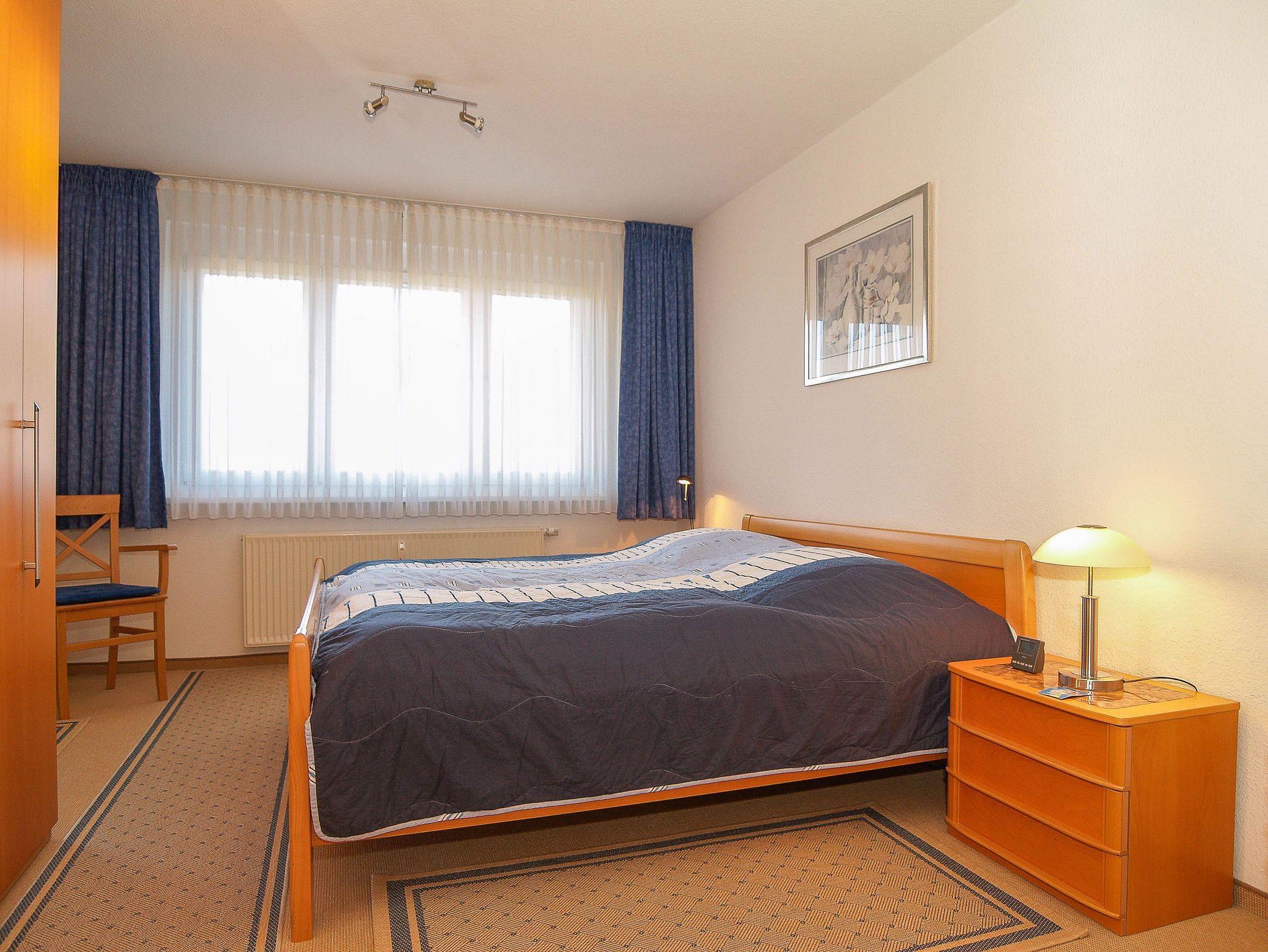 Im Schlafzimmer lädt Sie ein komfortables Doppelbett (2 x 90cm x 200 cm) zur Nachtruhe ein. Der großzügige Kleiderschrank bietet genügend Platz für Ihre Urlaubsgarderobe. Als Sichtschutz bzw. zum Verdunkeln sind im Schlafzimmer Gardinen und Vorhänge an den Fenstern angebracht.