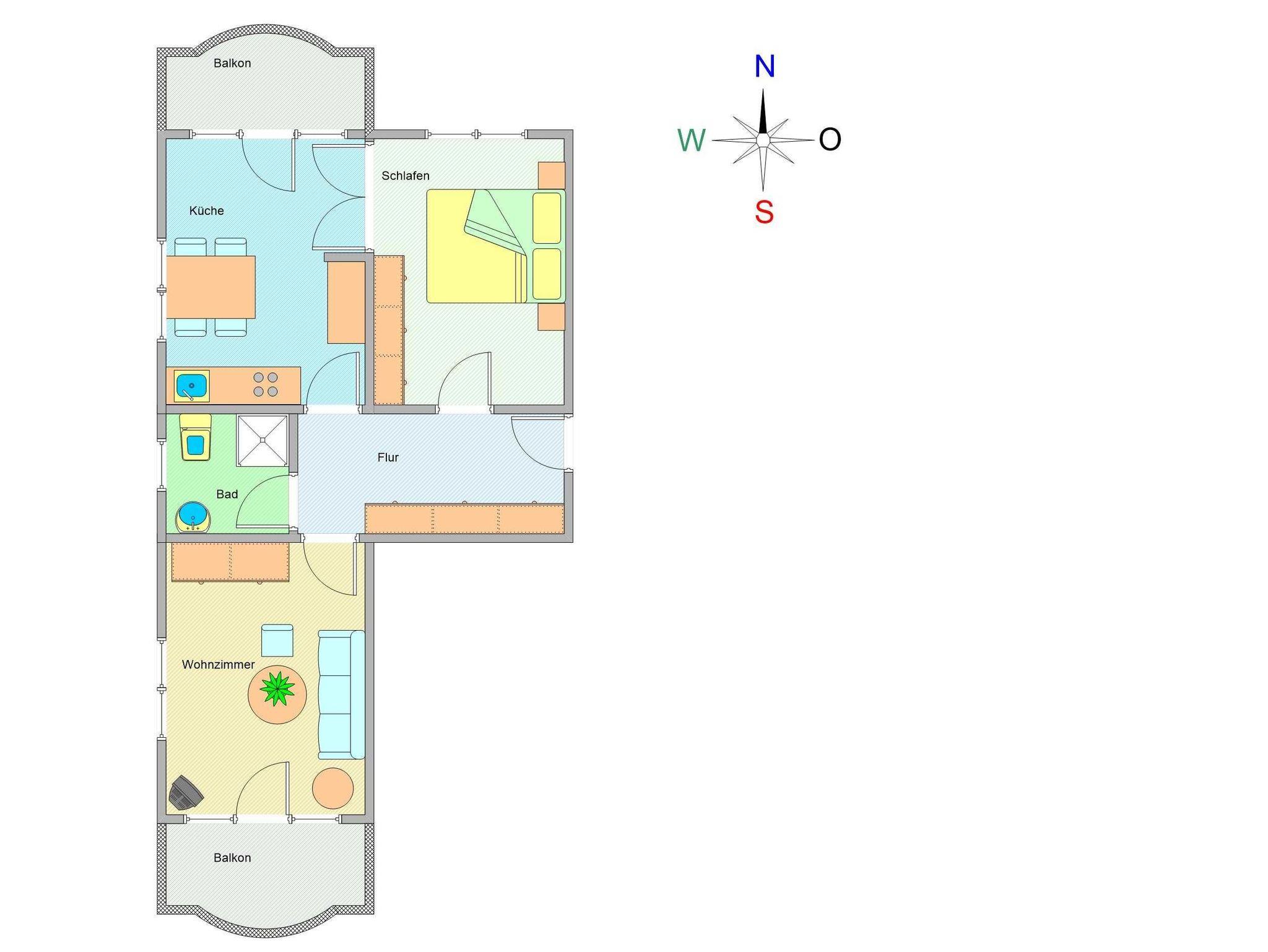 Herzlich willkommen in der Wohnung Nr. 24 in der Residenz Dünengarten! Sie wohnen in einer ca. 66m² großen 2-Raum-Ferienwohnung, die sich im 1. Obergeschoss der Appartementanlage befindet. Hier können bis zu 4 Personen erholsame Urlaubstage am Meer verbringen. Es empfangen Sie ein heller freundlicher Wohnbereich, eine separate Küche, ein Duschbad sowie zwei Balkone (Nord und Süd).