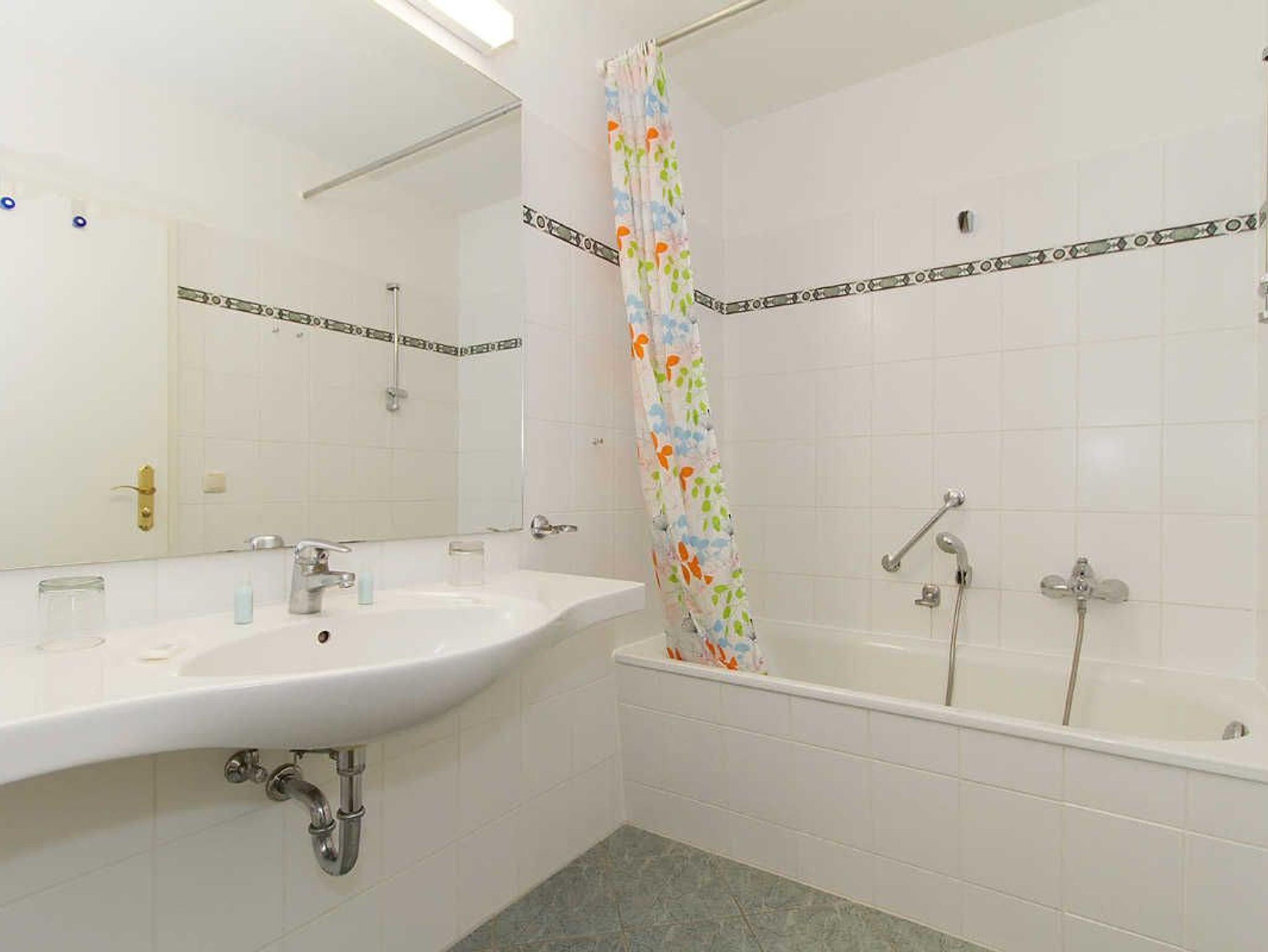 Die Wohnung ist im 1. Obergeschoss gelegen und hat einen Balkon zur Südseite. Die Wohnungsgröße beträgt ca. 45 qm und teilt sich in Wohnzimmer, Küchenzeile, Schlafzimmer, kl. Kinderzimmer, Bad mit Wanne. Im Wohnzimmer befindet sich ein Esstisch mit 4 Stühlen, eine Küchenzeile, Kühlschrank, 2 Kochfelder, Mikrowelle mit Backofen, Tresor, HD-Sat TV und Telefon.