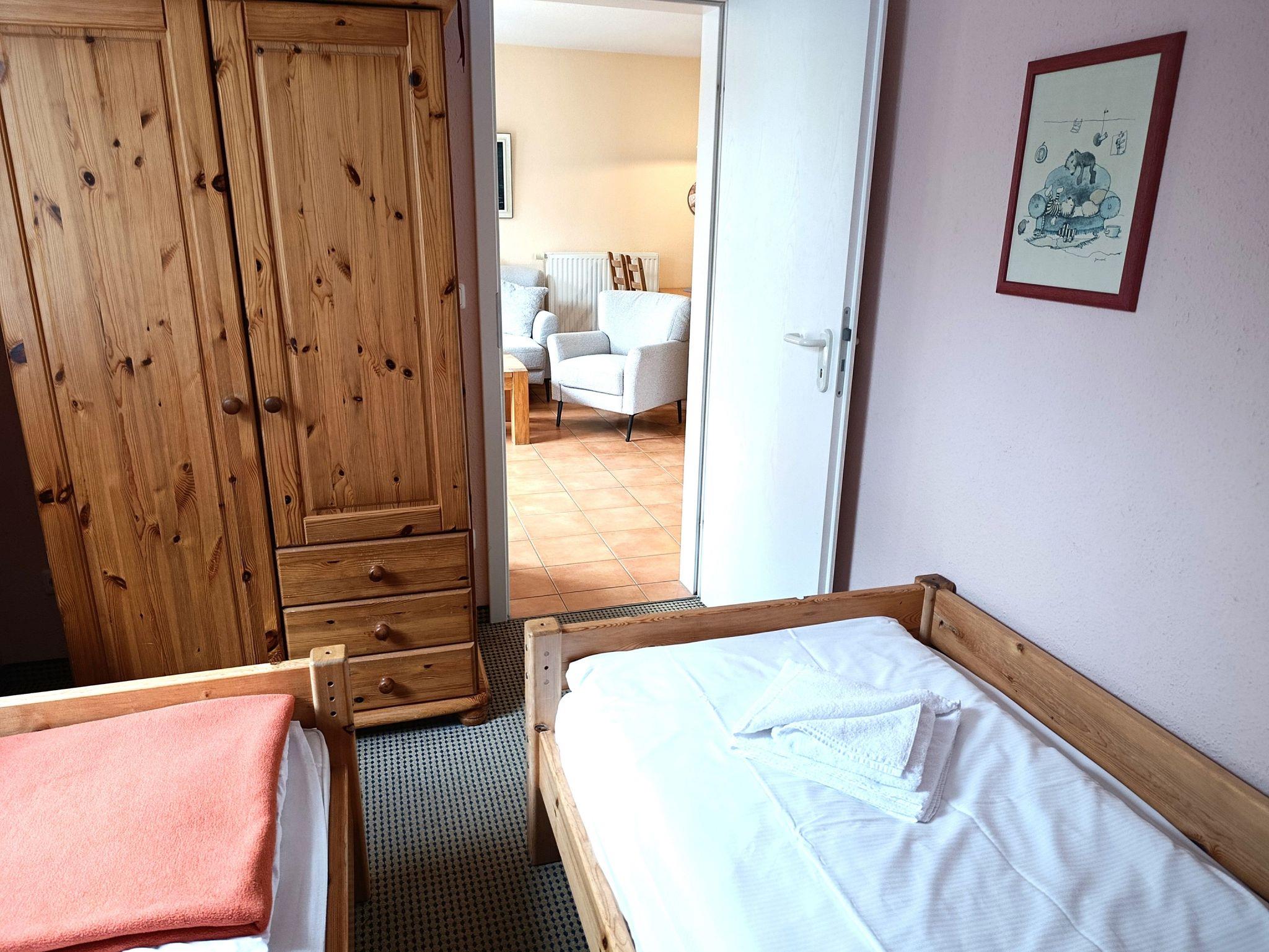 Gästezimmer mit 2 Einzelbetten und Kleiderschrank