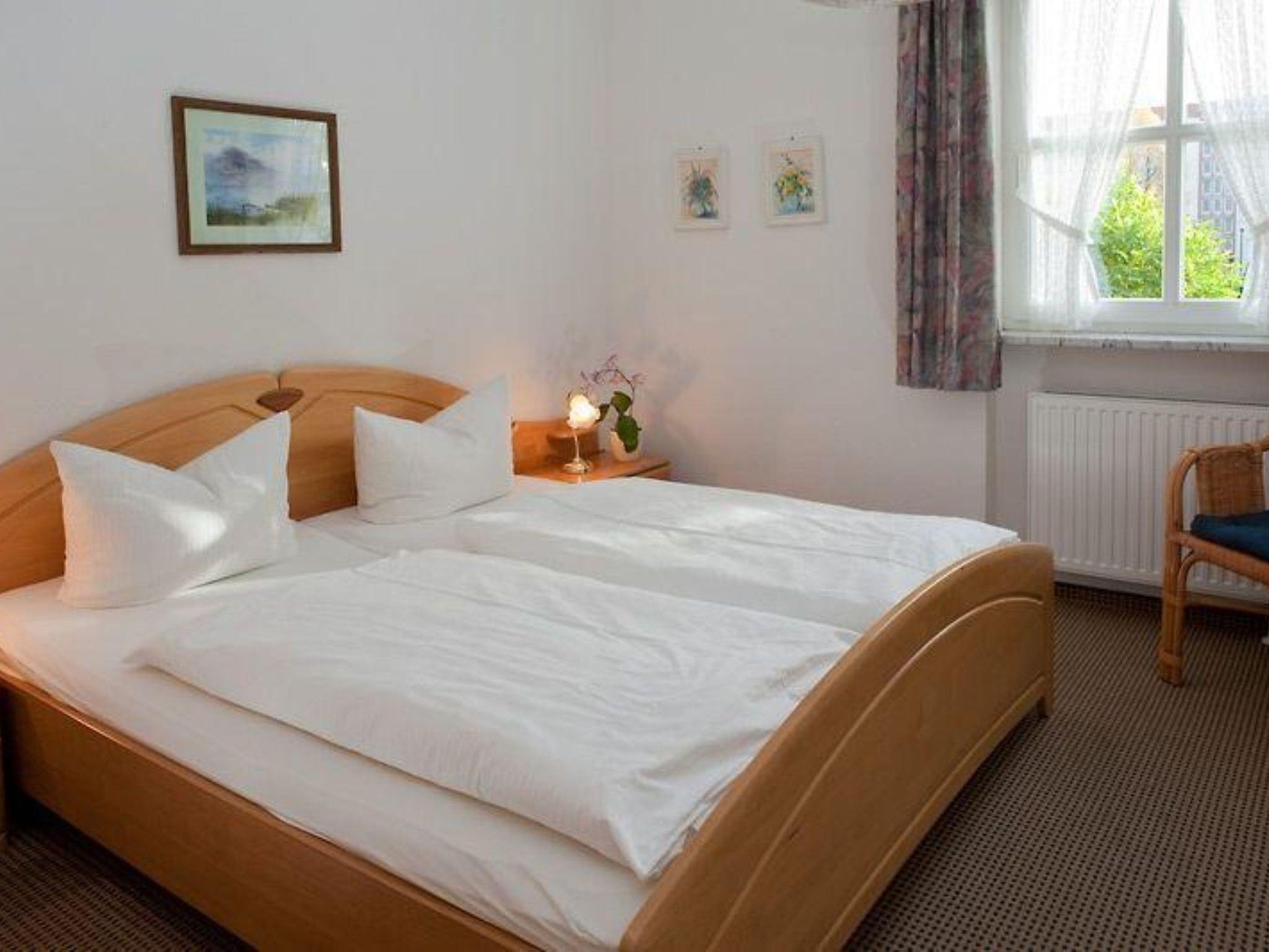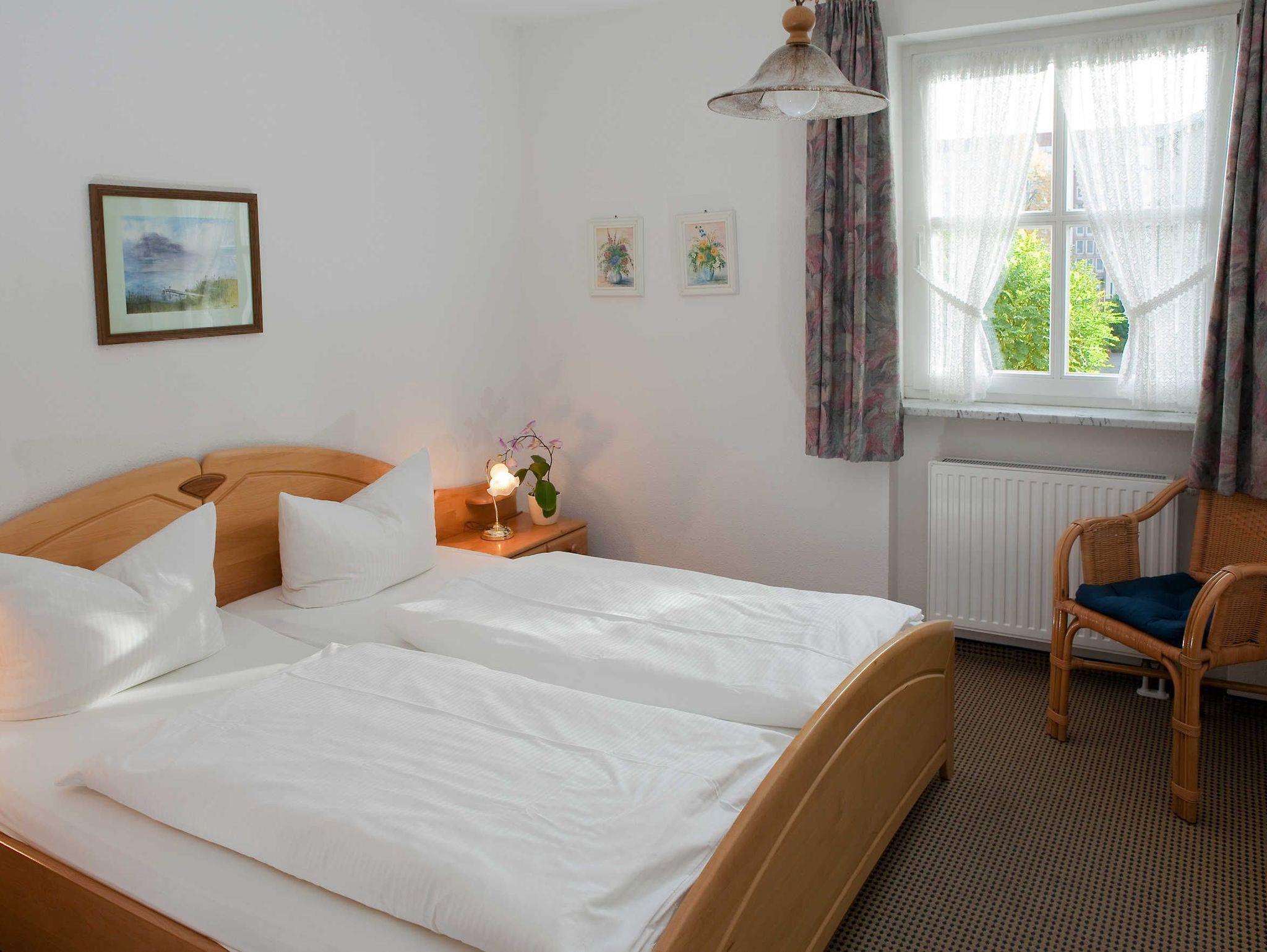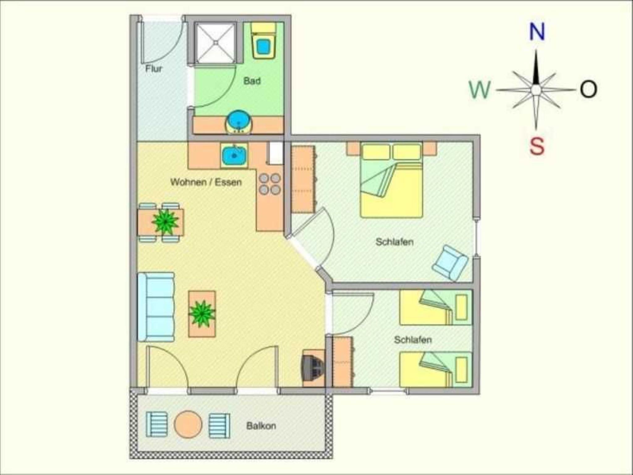Nur 5 min vom Strand wohnen Sie in einer modern eingerichteten 3-Raum-Ferienwohnung. Die 55 qm große Wohnung liegt in der ersten Etage. Das Wohnzimmer ist mit einer Schlafcouch, Couchtisch, Sessel, Anrichte, Kabel-TV, Radio, Essbereich (Esstisch und 4 Stühle) und Küchenzeile ausgestattet. Im Schlafzimmer stehen ein Doppelbett und ein Kleiderschrank und im Gästezimmer zwei Betten und ein Kleiderschrank. Die Küchenzeile wurde sehr modern ausgestattet mit Mikrowelle, Kühlschrank, Kaffeemaschine, Geschirrspüler, Cerankochfeld, Backofen, Toaster und Wasserkocher. Das Bad mit Dusche/WC und der Flur mit Garderobe komplettieren die Wohnung. Der Balkon ist zur Südseite.