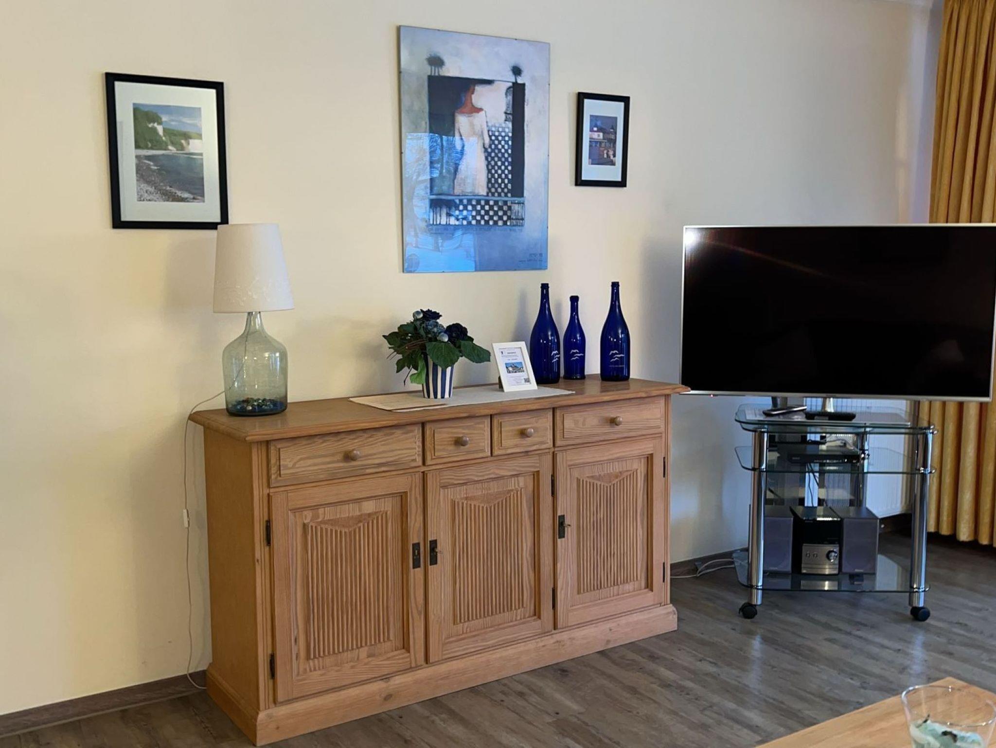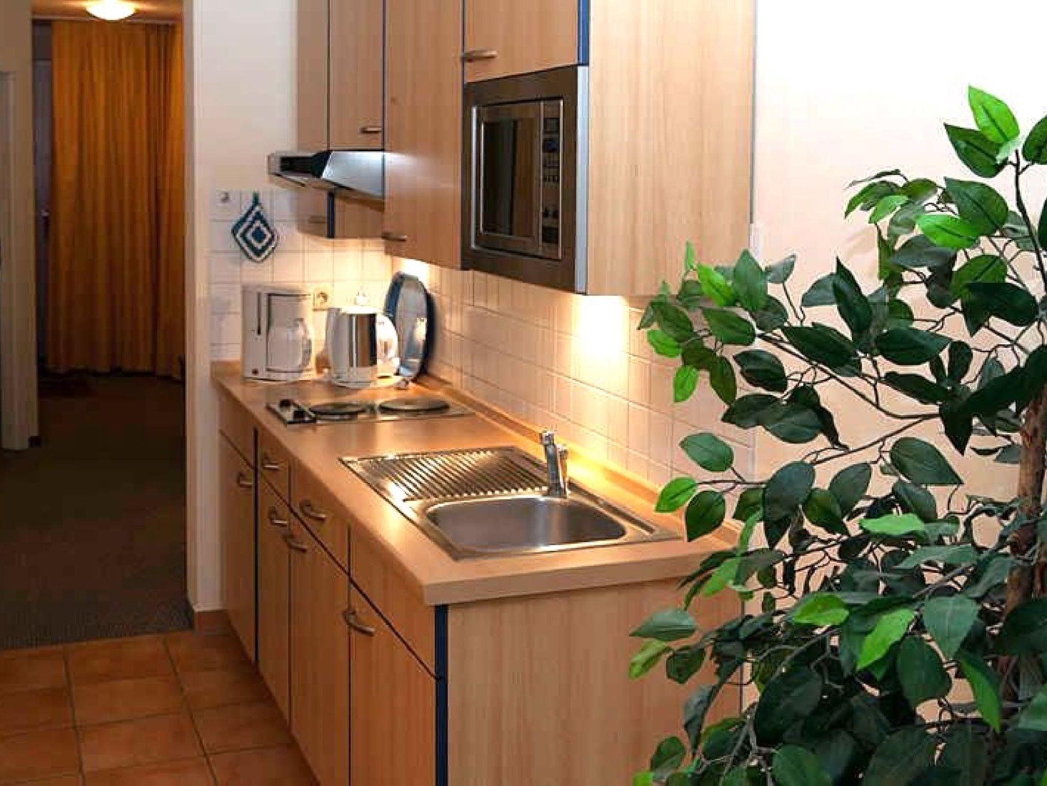 Nur 10 m vom Strand wohnen Sie in einer modern eingerichteten 2-Raum-Ferienwohnung. Die 55 qm große Wohnung liegt in der 1. Etage. Das Wohnzimmer ist mit einer Schlafcouch, Couchtisch, Anrichte, Bücherregal, Kabel-TV, Radio, Essbereich (Esstisch und 4 Stühle) und Küchenzeile ausgestattet. Von dem Ost-Balkon hat man einen wunderbaren Blick auf die Ostsee und auf den Baltic-Park. Im Schlafzimmer stehen ein Doppelbett und ein Kleiderschrank. Die Küchenzeile wurde modern ausgestattet mit Mikrowelle, Kühlschrank, Kaffeemaschine, Zweiplattenkochfeld, Toaster und Wasserkocher. Das Bad mit Dusche und WC komplettiert die Wohnung.