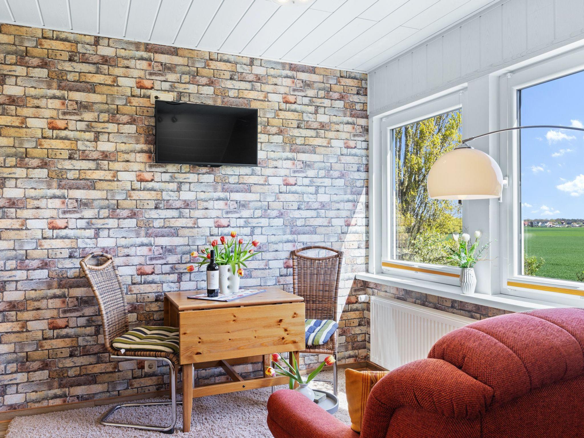 Helle und freundliche 2- Zimmer Ferienwohnung über 2 Etagen. Wohnzimmer mit Couchecke, TV und Esstisch. Küchenzeile mit 2- Plattenherd, Kühlschrank, Kaffeemaschine, Wasserkocher und Toaster. Bad mit Dusche und WC. Eine Treppe führt in das Schlafzimmer im OG (geschlossener Raum) mit Doppelbett (1,80 x 2m) und Kleiderkommode. Aus der Ferienwohnung lässt sich ein herrlicher Blick auf das Ostseebad Kühlungsborn genießen.