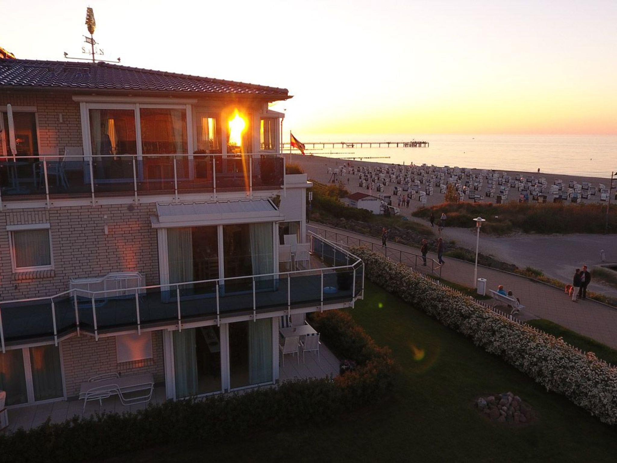 Von der Terrasse aus gelangen Sie in wenigen Schritten zum Hafen ? oder quer über die Promenade direkt zum feinsandigen Badestrand, der hier 100 m breit ist. Ideal für Familien und Großeltern!