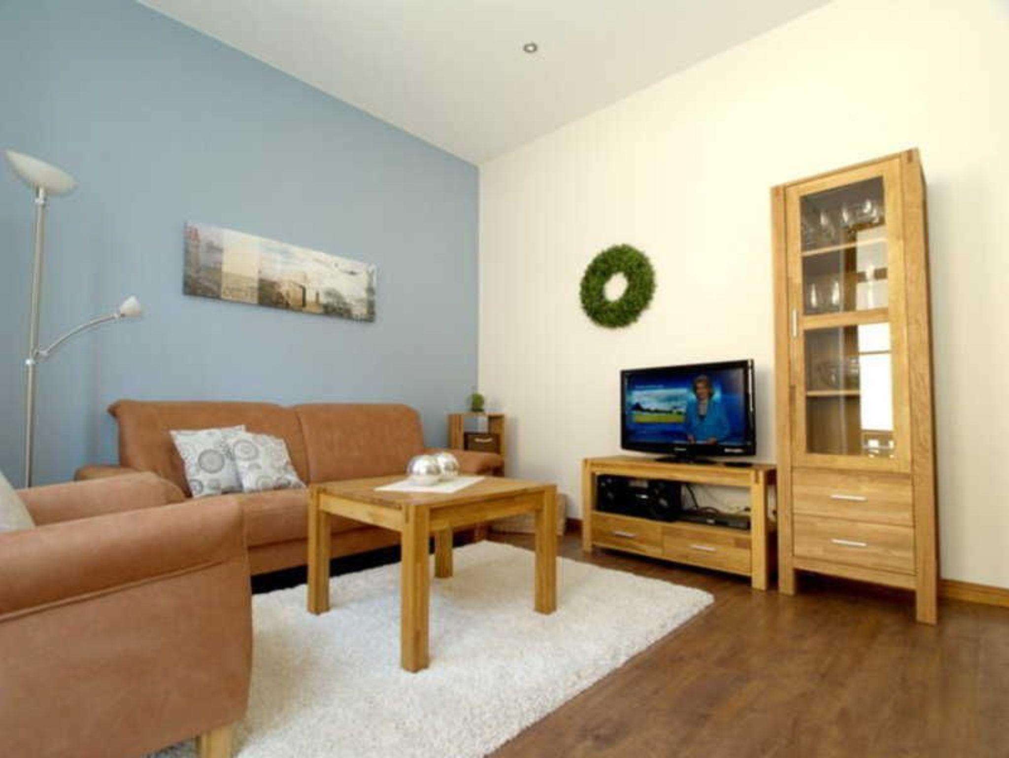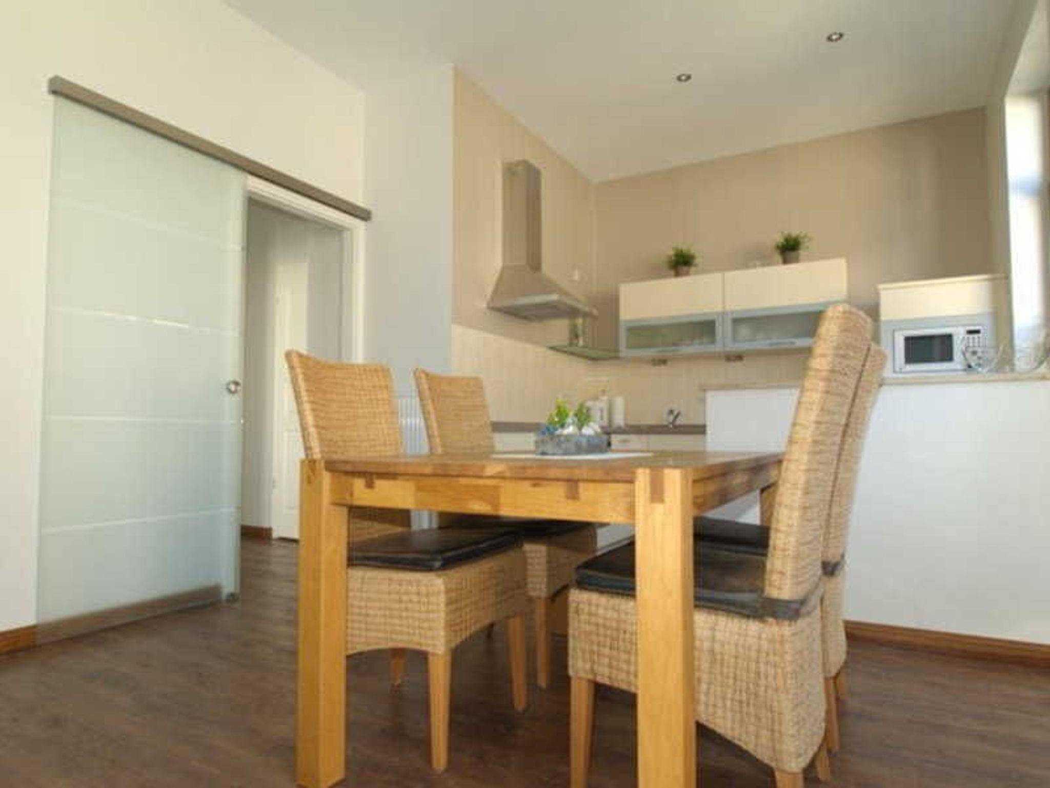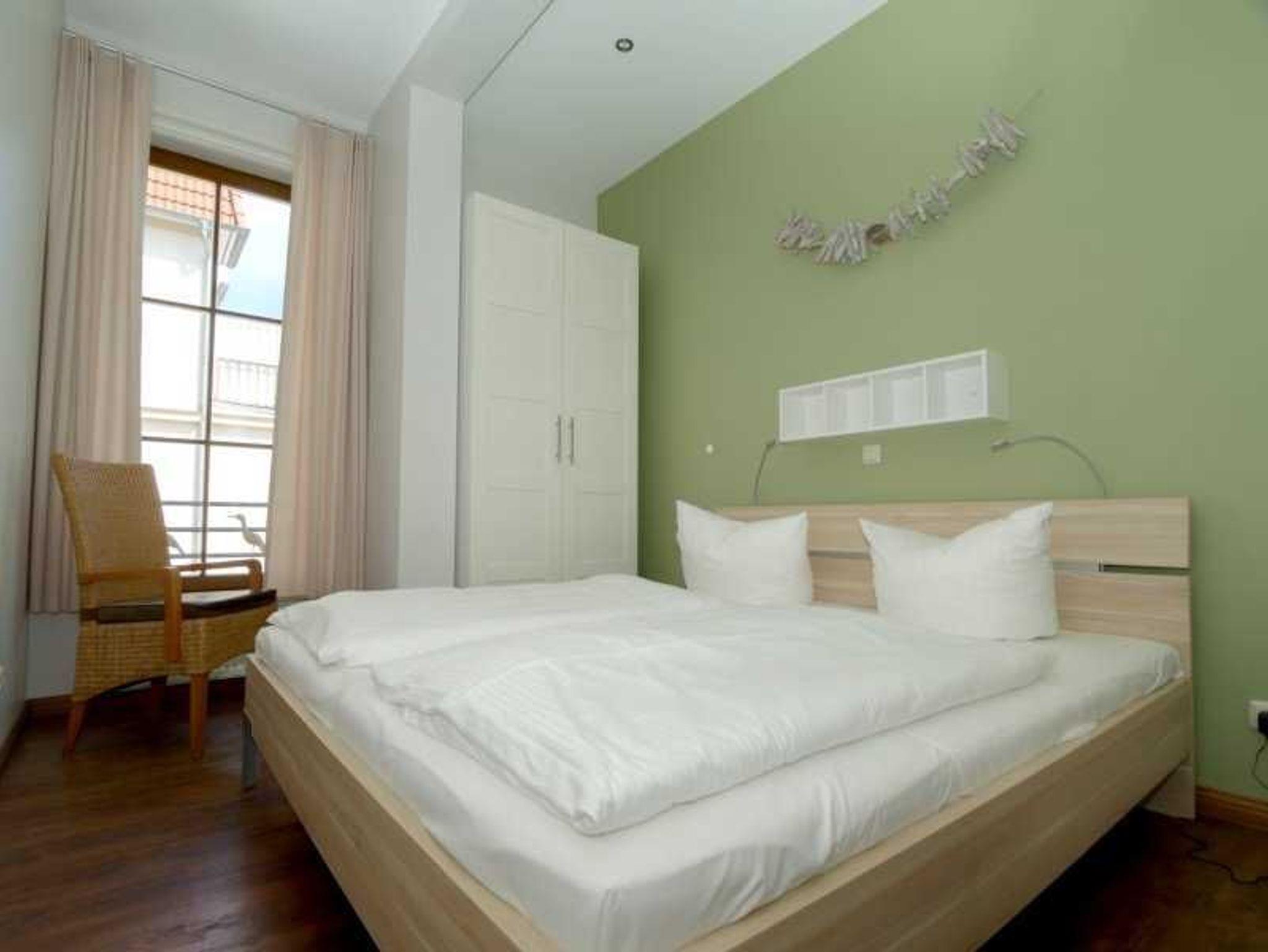 Die Ferienwohnung ist insgesamt 78 qm groß und stilvoll möbliert. Sie befindet sich im Hochparterre des im Jahr 2007 renovierten Altbaus des Kaiserlichen Postamtes. Zu der Wohnung gehört eine Terrasse und insgesamt vier geschmackvoll eingerichtete Zimmer. Der große Wohnbereich verfügt über einen Flachbildfernseher, eine gemütliche Sitzecke und einen Esstisch. Zwei Schlafzimmer mit Doppelbetten sind ebenfalls Teil der Wohnung. Die Küche ist in den Wohnbereich integriert und ist mit einer Geschirrspülmaschine, einer Kaffeemaschine und einem Ceran-Herd ausgestattet.