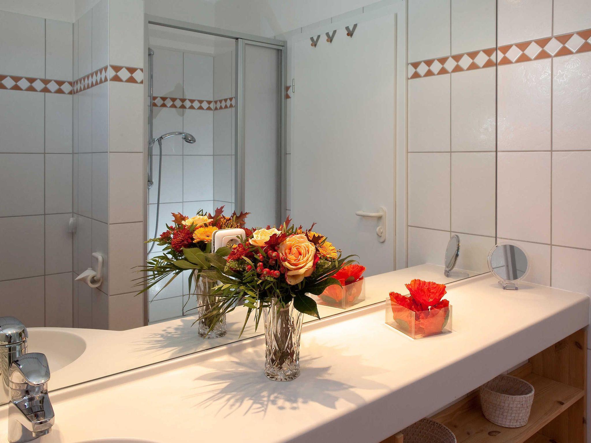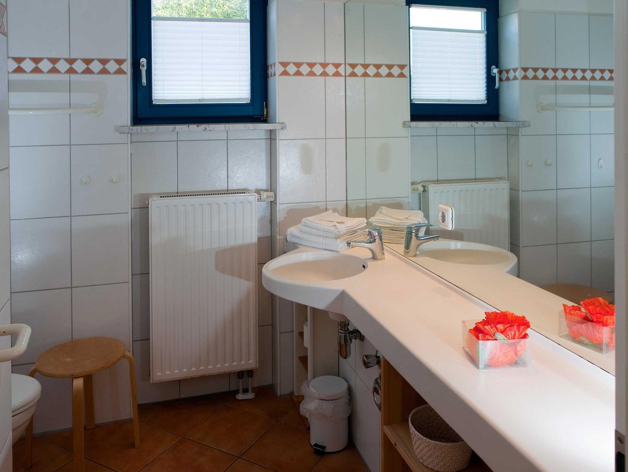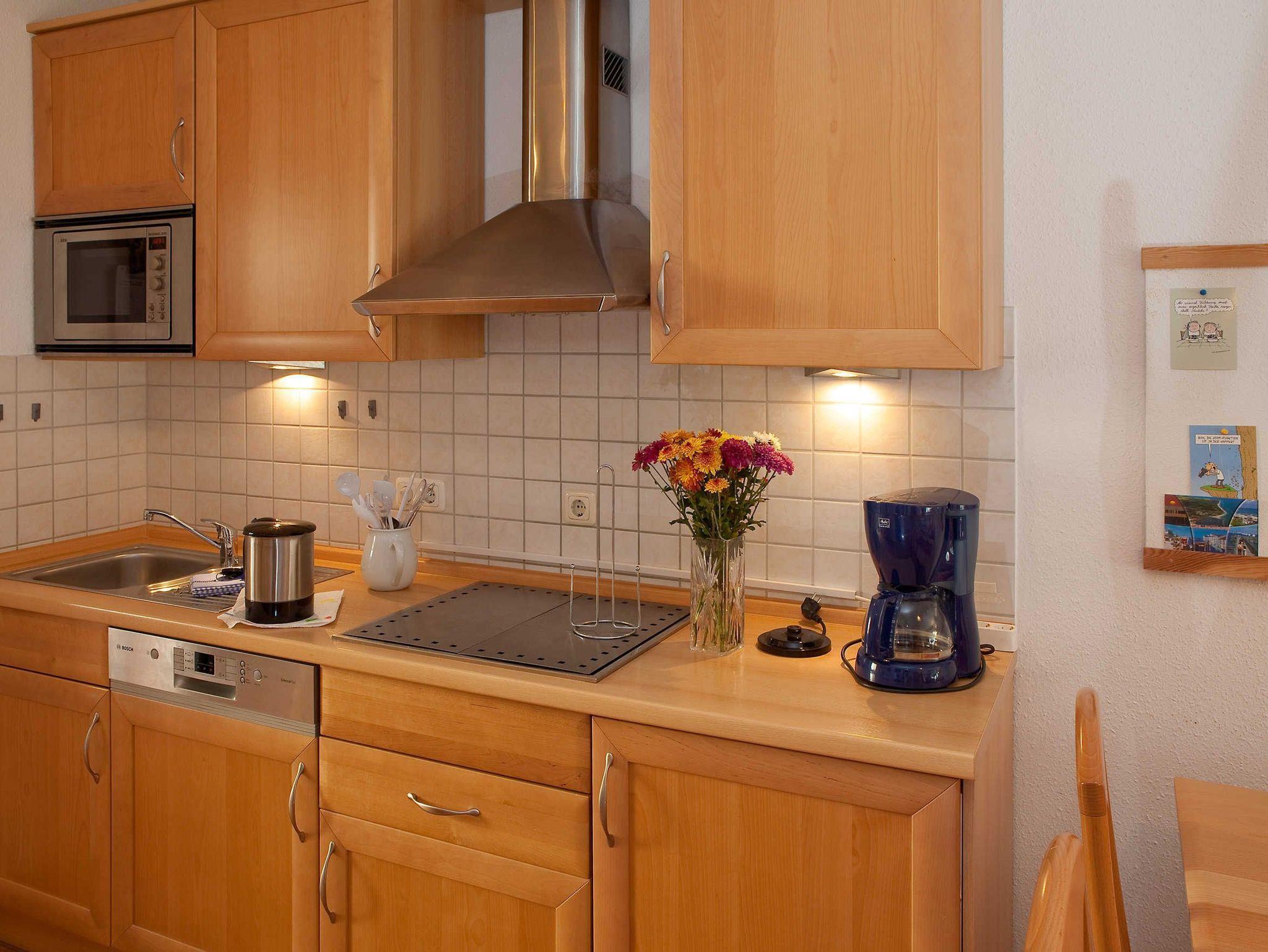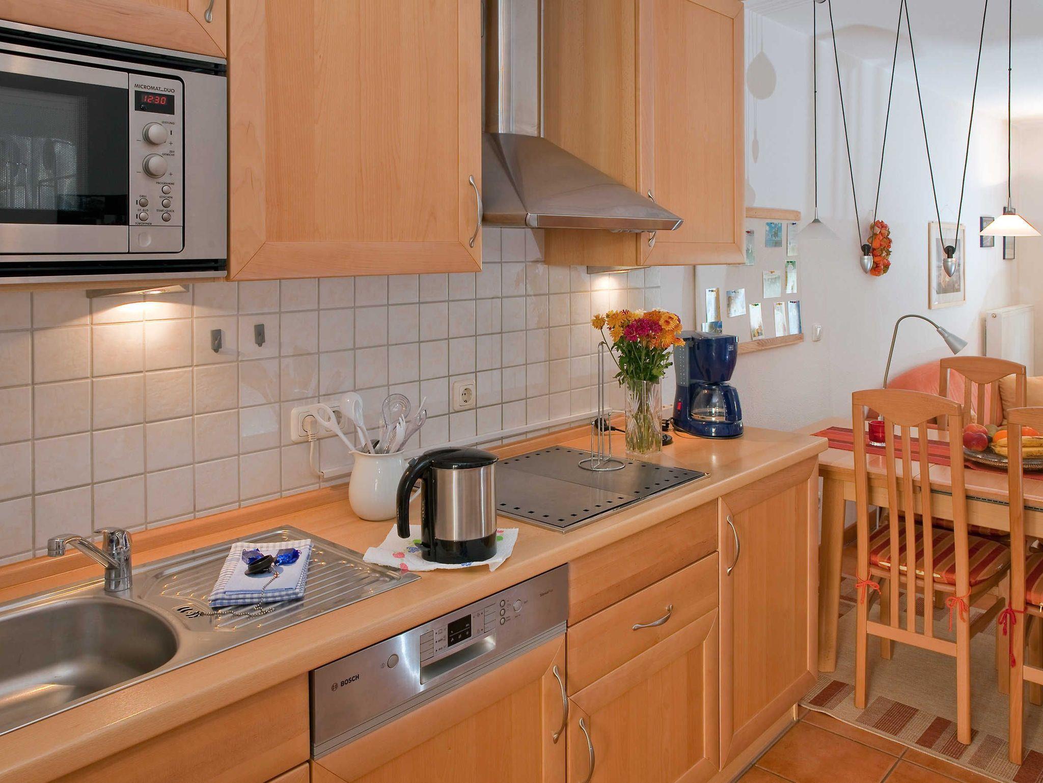 Nur 5 min vom Strand wohnen Sie in einer modern eingerichteten 3-Raum-Ferienwohnung. Die 55 qm große Wohnung liegt im Erdgeschoss. Das Wohnzimmer ist mit einer Schlafcouch, Couchtisch, Sessel, Anrichte, Kabel-TV, Radio, Essbereich (Esstisch und 4 Stühle) und Küchenzeile ausgestattet. Im Schlafzimmer stehen ein Doppelbett und ein Kleiderschrank und im Gästezimmer eine Schlafcouch und ein Kleiderschrank. Die Küchenzeile wurde modern ausgestattet mit Mikrowelle, Kühlschrank, Kaffeemaschine, Zweiplattenkochfeld, Toaster und Wasserkocher. Das Bad mit Dusche/WC und der Flur mit Garderobe komplettieren die Wohnung. Die Terrasse zur Südseite ist sehr ruhig gelegen.