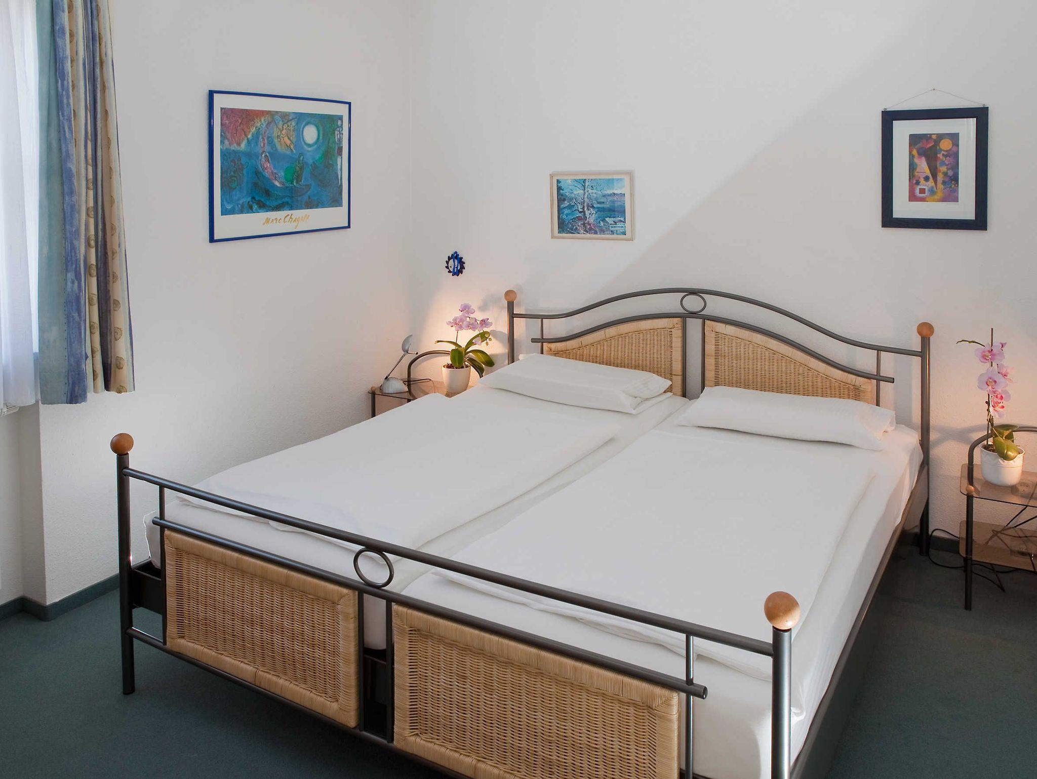 Schlafzimmer mit Doppelbett und Kleiderschrank