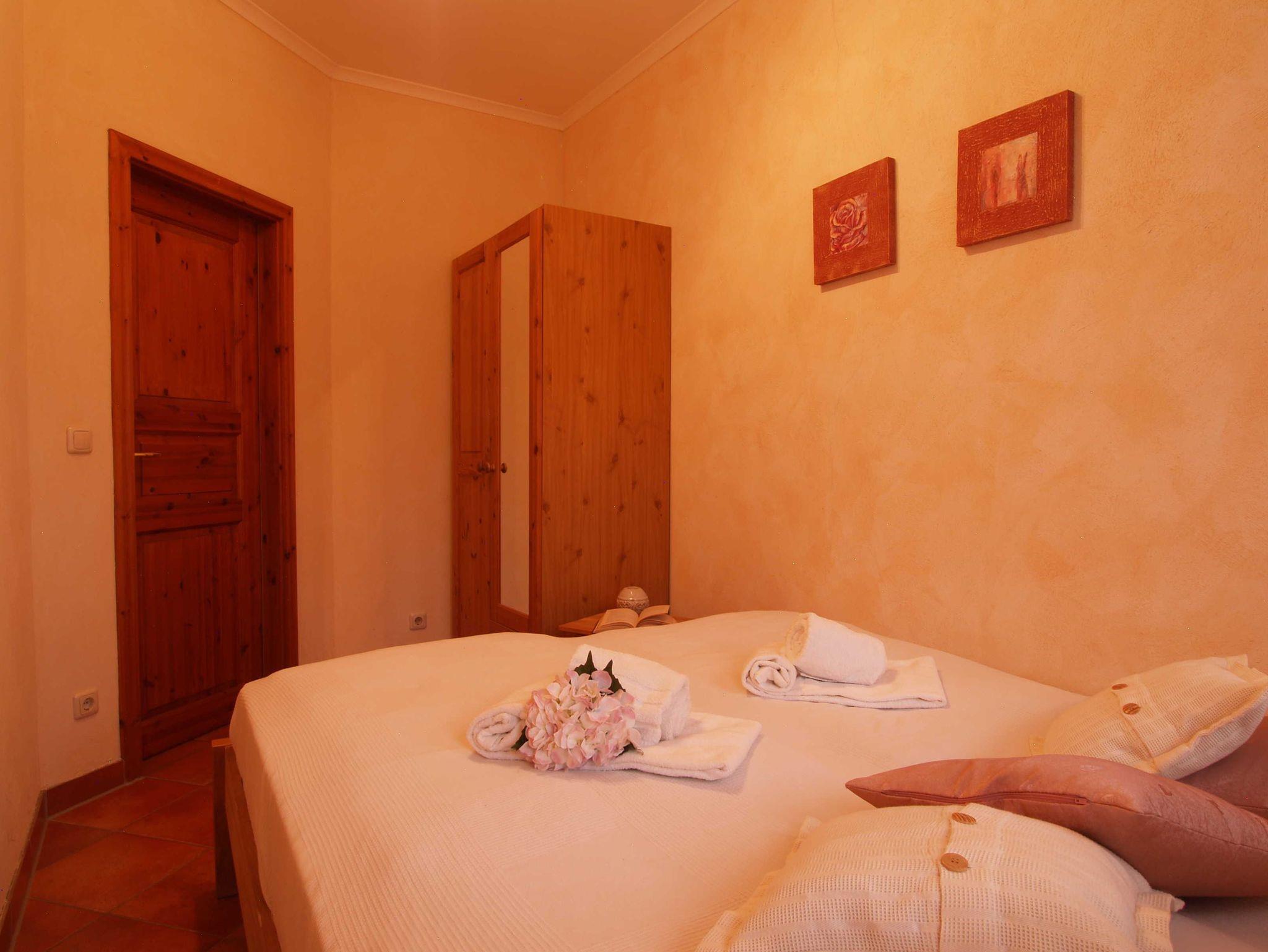 Im ersten größeren Schlafzimmer lädt Sie ein komfortables Doppelbett (2 x 90cm x 200 cm) zur Nachtruhe ein. Der großzügige Kleiderschrank bietet genügend Platz für Ihre Urlaubsgarderobe. Zudem erwartet Sie hier ein zweiter 32-Zoll-Flachbild-TV. Das zweite, etwas kleinere Schlafzimmer verfügt über ein Doppelbett (2 x 80cm x 200cm) und einem kleinen geräumigen Kleiderschrank mit Ganzkörperspiegel. Als Sichtschutz sind in den Schlafzimmern und im Wohnbereich Gardinen und Vorhänge an den Fenstern angebracht. Optional ist als Beistellbett ein Klappbett sowie ein Kinderbett vorhanden.