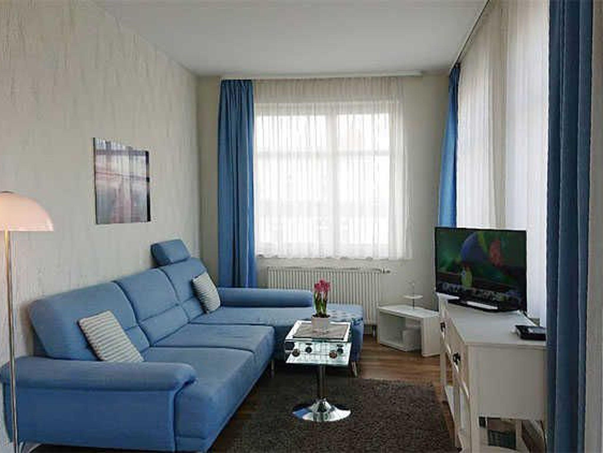 Unsere Zweiraumappartements für bis zu drei Personen haben eine Wohnfläche von 35 bis 55 m². Im Wohnzimmer laden gemütliche Sessel oder Couchen zur Entspannung ein.