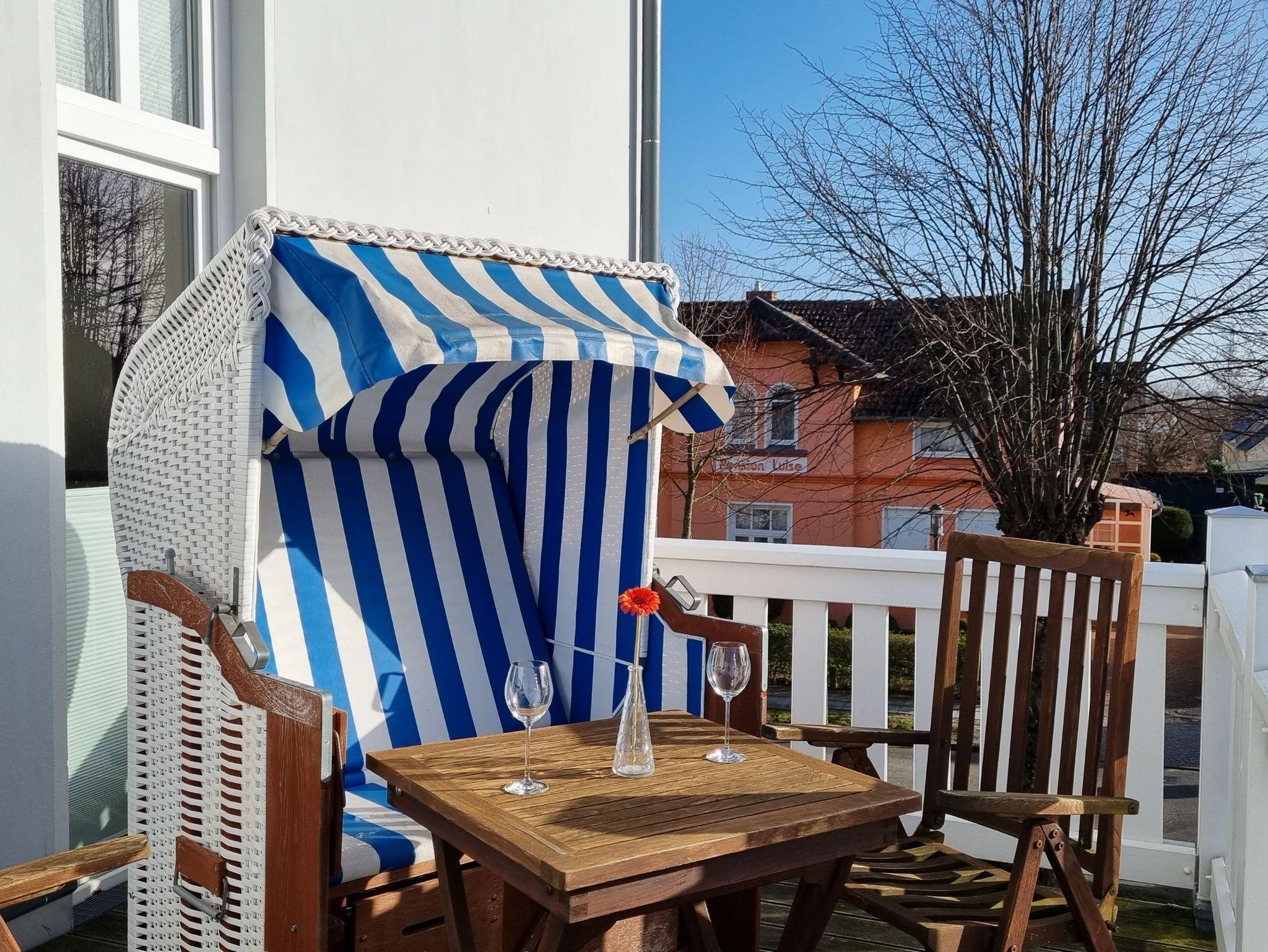 Der großzügige Balkon mit Strandkorb lädt zum Sonnenbaden ein.