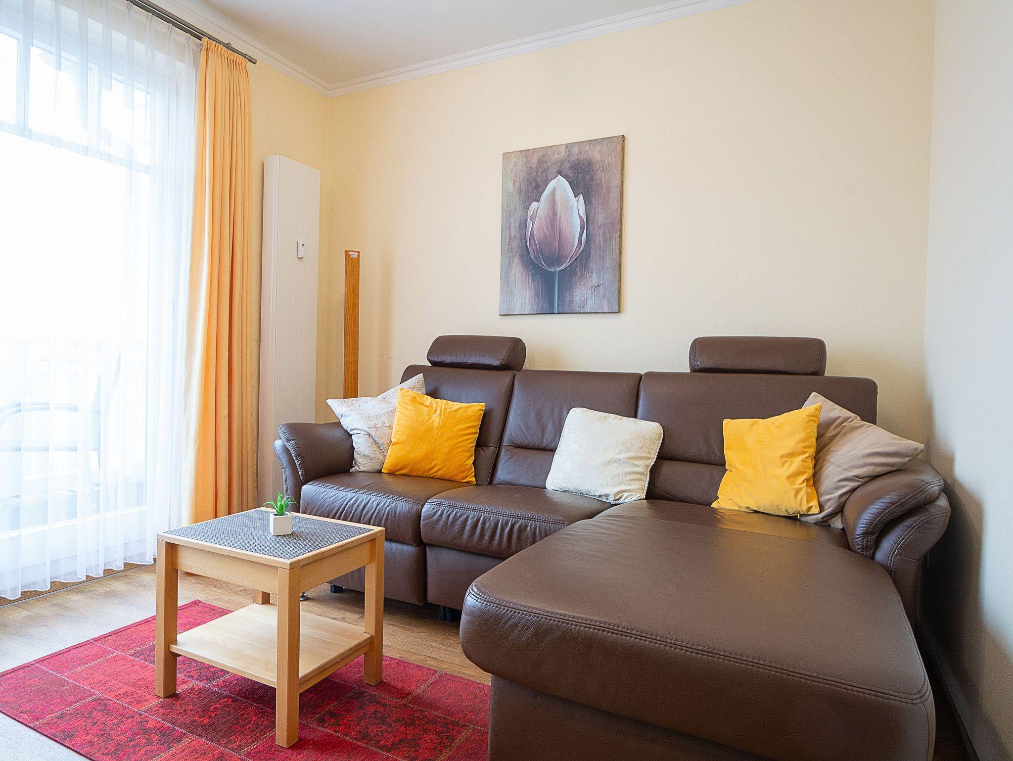 Genießen Sie eine komfortable 2-Zimmer-Ferienwohnung mit Balkon und seitlichem Meerblick direkt an der Strandpromenade von Kühlungsborn.