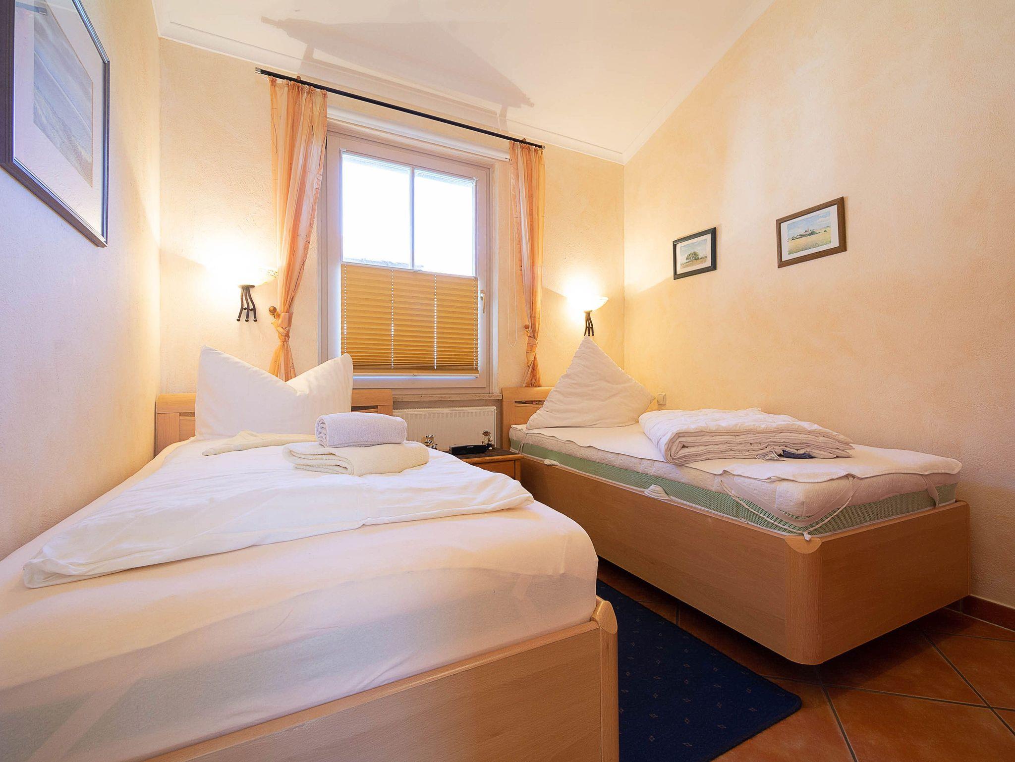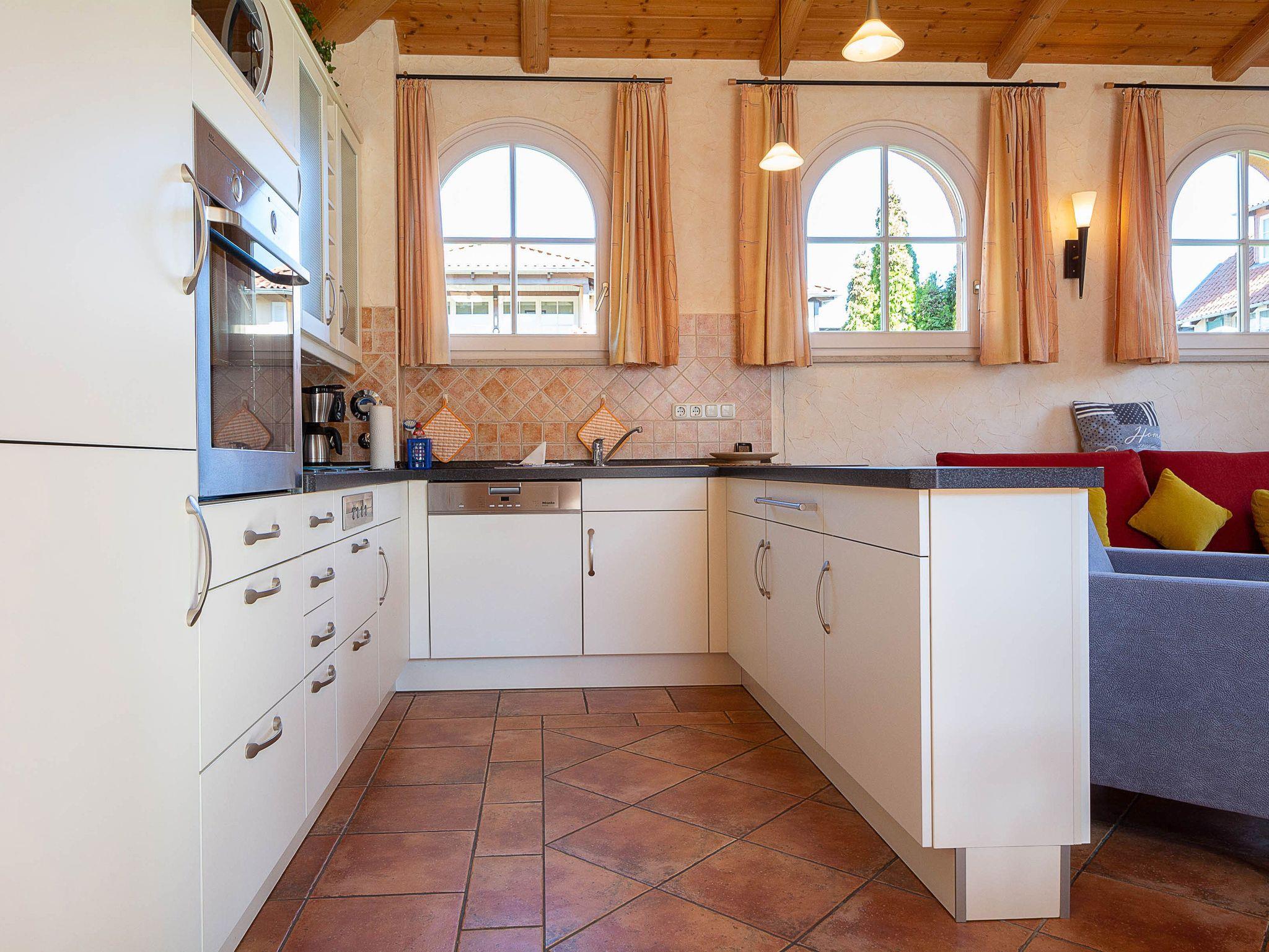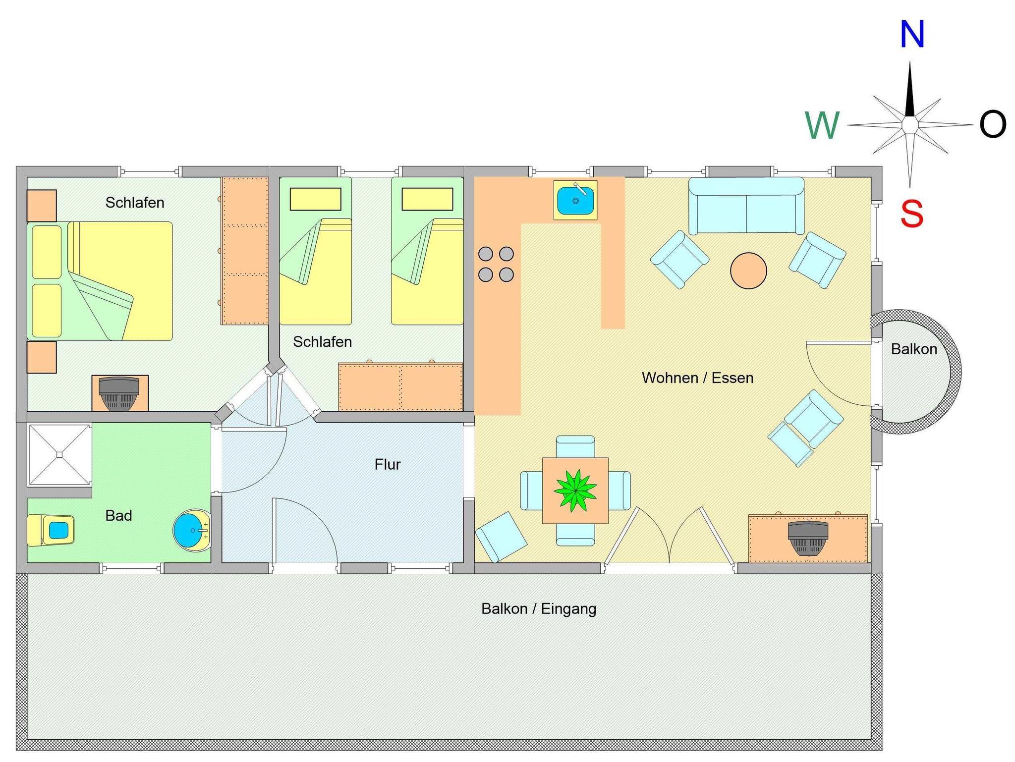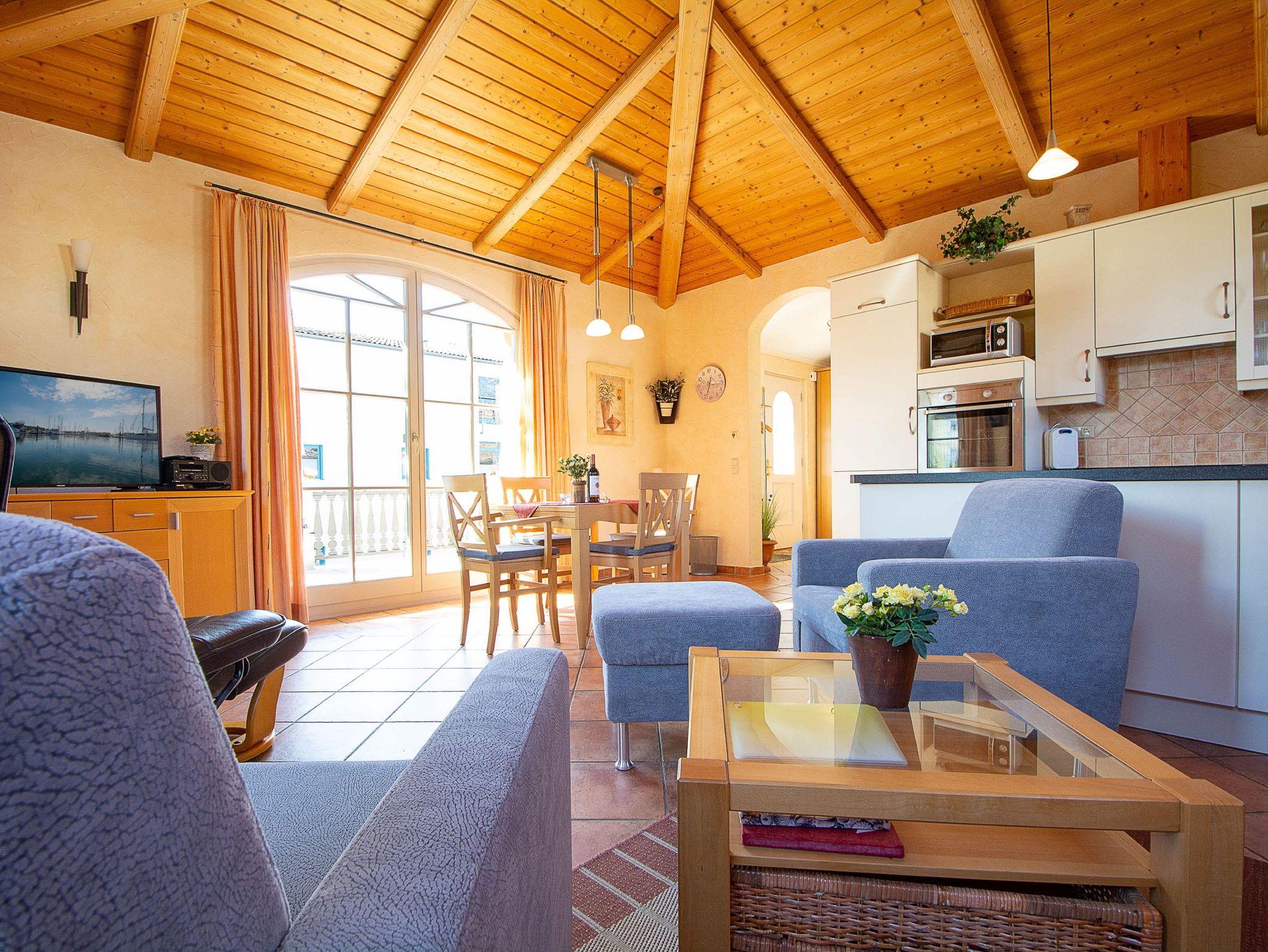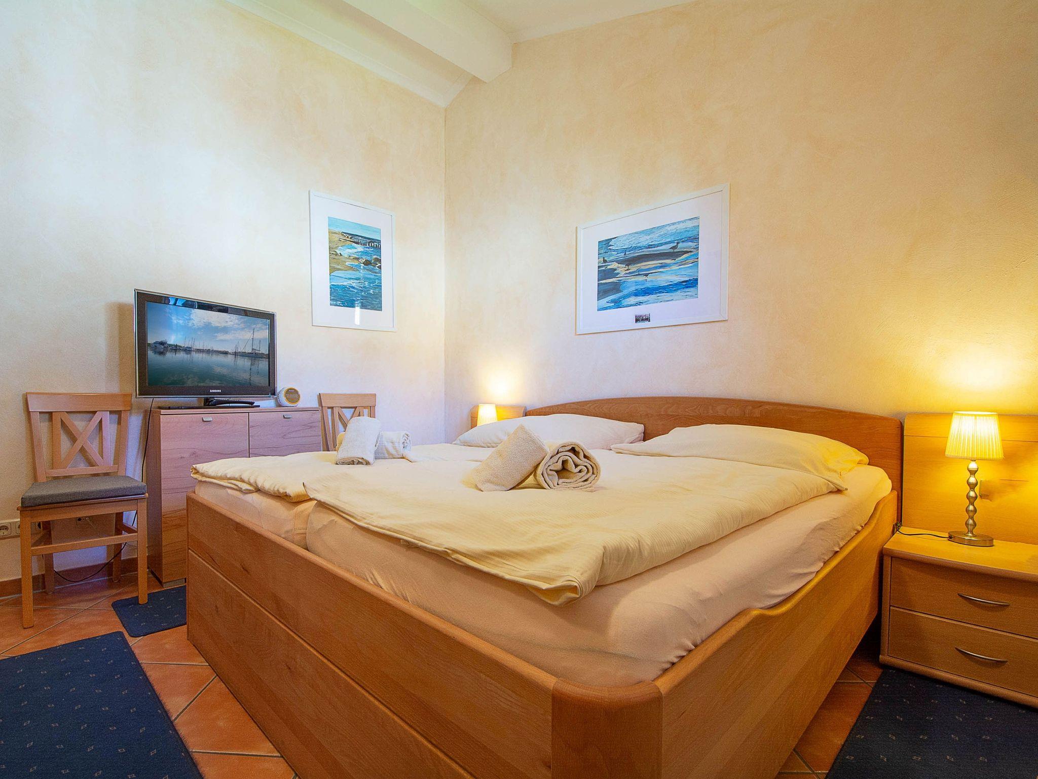 Hier kann der perfekte Urlaub starten! Herzlich Willkommen in der Residenz Laguna! Hier, im ersten Obergeschoss befindet sich die Wohnung 39. Sie betreten das Appartement über den großzügigen Südbalkon. Auf etwa 70 qm erstreckt sich die liebevoll eingerichtete 3-Raum-Ferienwohnung, die für bis zu 4 Personen geeignet ist. Der helle offene Wohnraum begrüßt Sie mit zahlreichen Fenstern, die eine Menge Licht und eine tolle Aussicht auf die merditerrane Wasserlandschaft im Innenhof bieten. Ausgestattet ist das Wohnzimmer mit einer gemütlichen Couchgarnitur, einem Esstisch für 4 Personen, ein Flachbild-TV sowie einer Stereoanlage. Es schließt sich die offene Küchenzeile an, die mit allen wichtigen Küchengeräten und -utensilien, die Sie für Ihr perfektes Dinner benötigen, ausgestattet ist (Geschirrspüler, Herd, Mikrowelle, Kaffeemaschine etc.). Vom Wohnraum betreten Sie den möblierten Südbalkon, der zum Sonnenbaden, Relaxen oder zum Dinner einlädt. Die Wohnung ist komplett mit mediterranen Fliesen versehen und verfügt über zwei Schlafzimmer, von denen Sie ebenfalls die Aussicht auf die liebevoll gestaltete Wasserlandschaft im Innenhof genießen können. Das erste Schlafzimmer ist mit einem Doppelbett, Flachbild-TV sowie einem großen Kleiderschrank mit Ganzkörperspiegel ausgestattet. Das zweite Schlafzimmer verfügt über zwei Einzelbetten und einen kleine Kleiderschrank. Das geflieste Tageslichtbad mit Dusche und WC ervollständigt das Gesamtbild dieser Wohnung.
