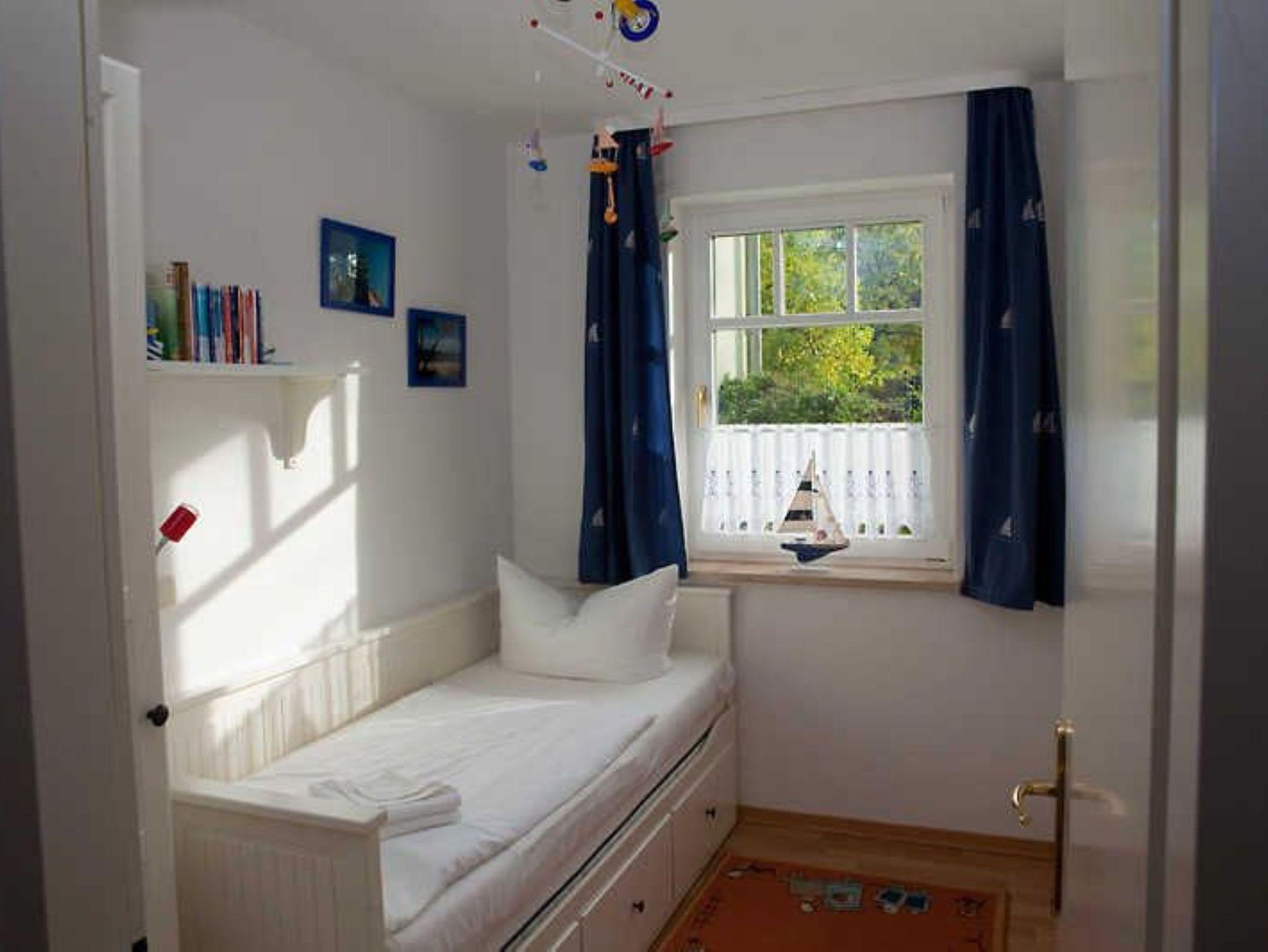 Die ca. 34 qm große Ferienwohnung liegt im Erdgeschoss hat neben dem Wohnzimmer noch ein Schlaf- und ein Gästezimmer, eine Küchenzeile sowie ein Duschbad und eine Terrasse zur Südseite.