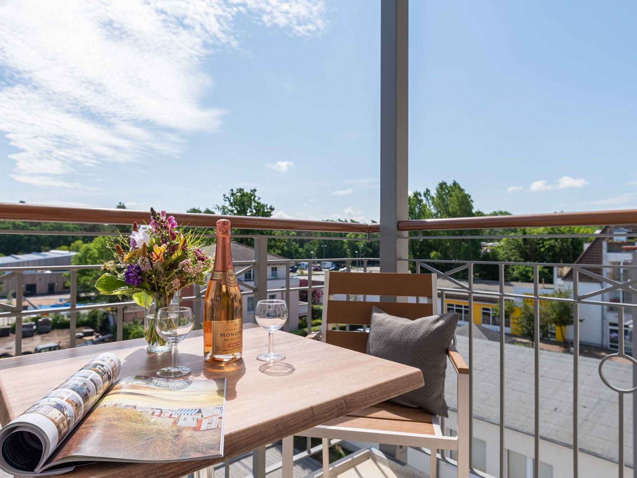 Das Apartment bietet mit seinen zwei Zimmern genügend Platz für 4 Personen. Außerdem verfügt es neben seiner Wohnfläche von ca. 44 qm auch über einen Balkon. Dieser ist mit Balkonmöbeln und einem Sonnenschirm ausgestattet.