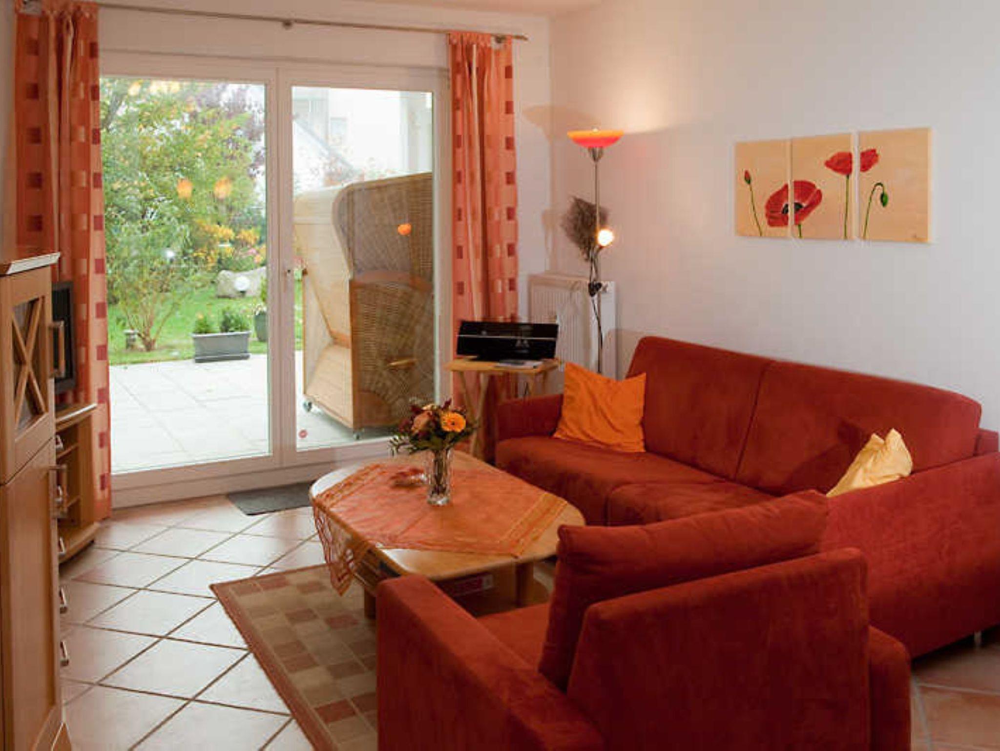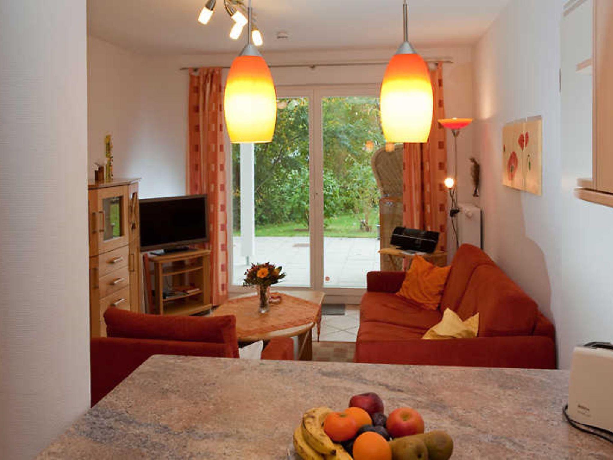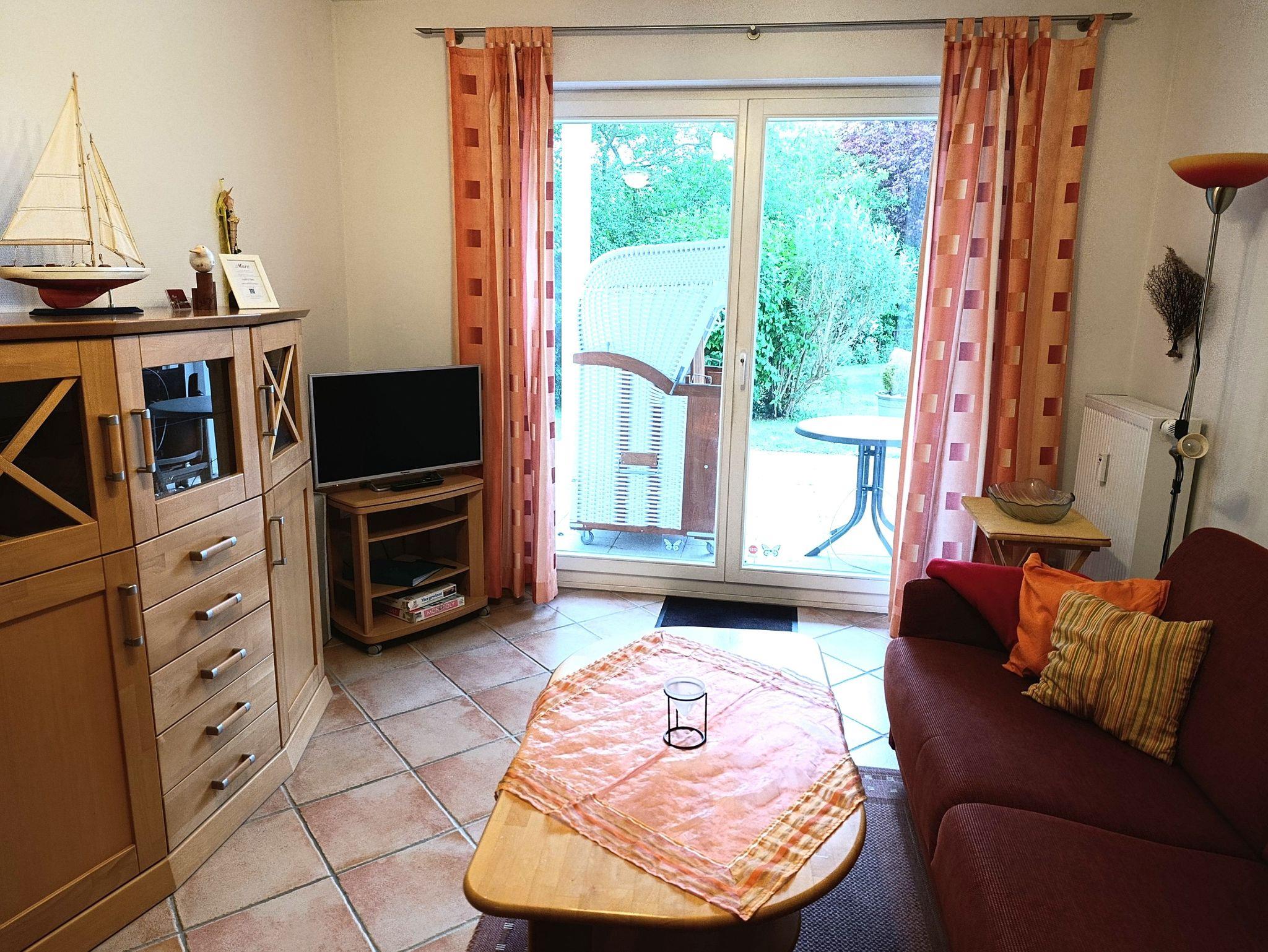 Nur 100 m vom Strand wohnen Sie in einer modern eingerichteten 2-Raum-Ferienwohnung. Die 45 qm große Wohnung liegt im Erdgeschoss. Das Wohnzimmer ist mit einer Schlafcouch, Couchtisch, Anrichte, Regal, Kabel-TV, Radio, Essbereich (mit Tresen und Stühle) und Küchenzeile ausgestattet. Die Terrasse zur Südseite lädt zum Verweilen ein. Im Schlafzimmer stehen ein Doppelbett und ein Kleiderschrank. Die Küchenzeile wurde sehr modern ausgestattet mit Mikrowelle, Kühlschrank, Kaffeemaschine, Cerankochfeld, Backofen, Toaster, Geschirrspüler und Wasserkocher. Das Bad mit Dusche und WC komplettiert die Wohnung.