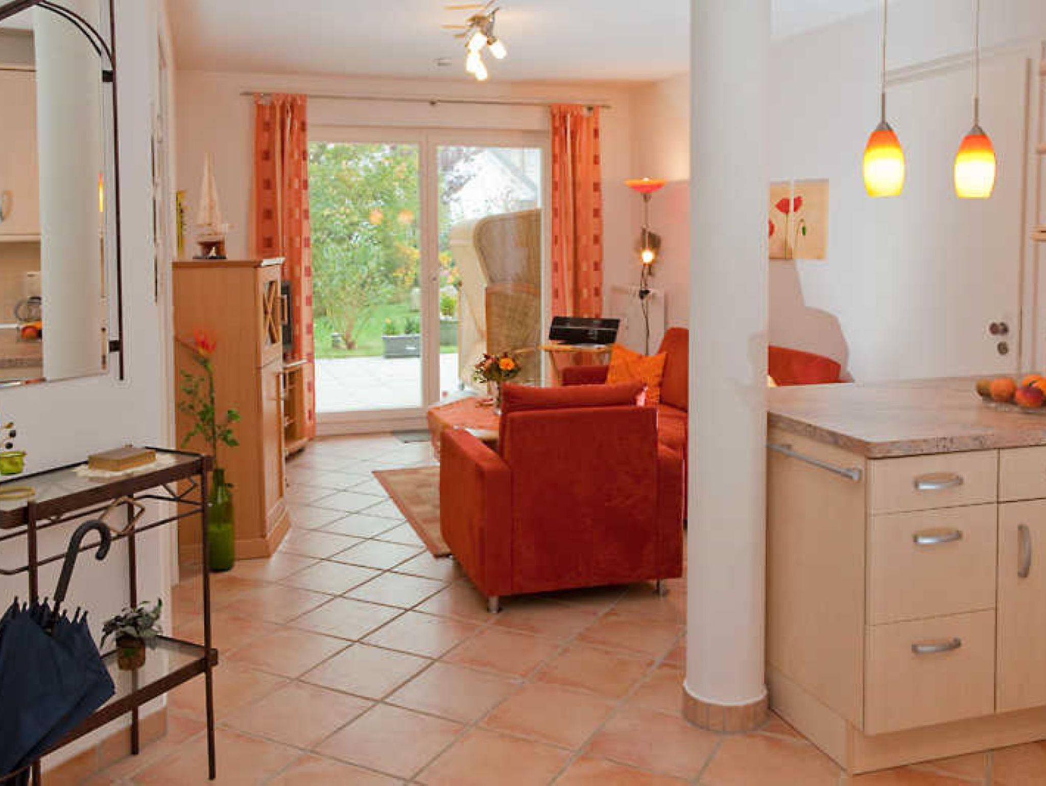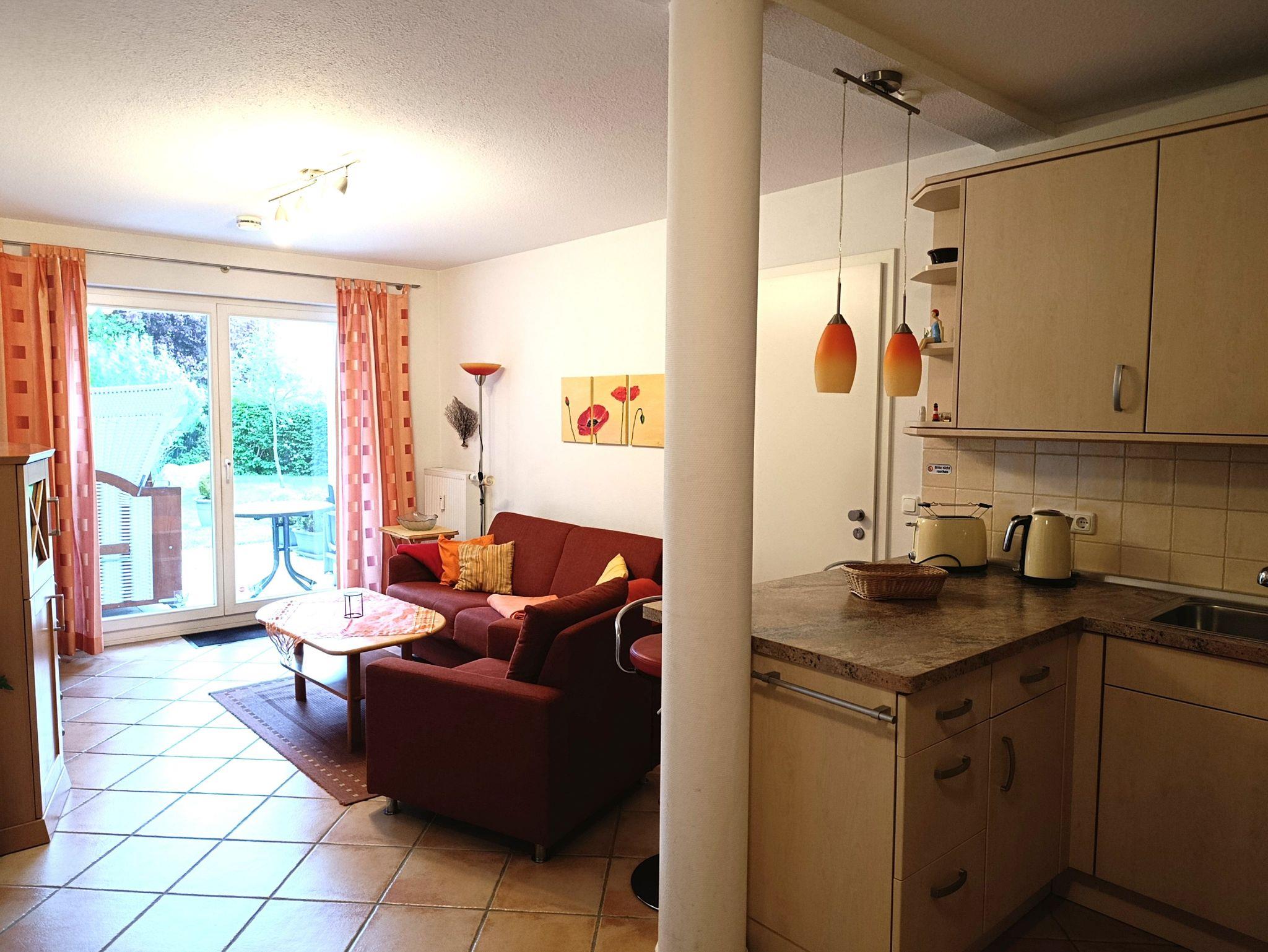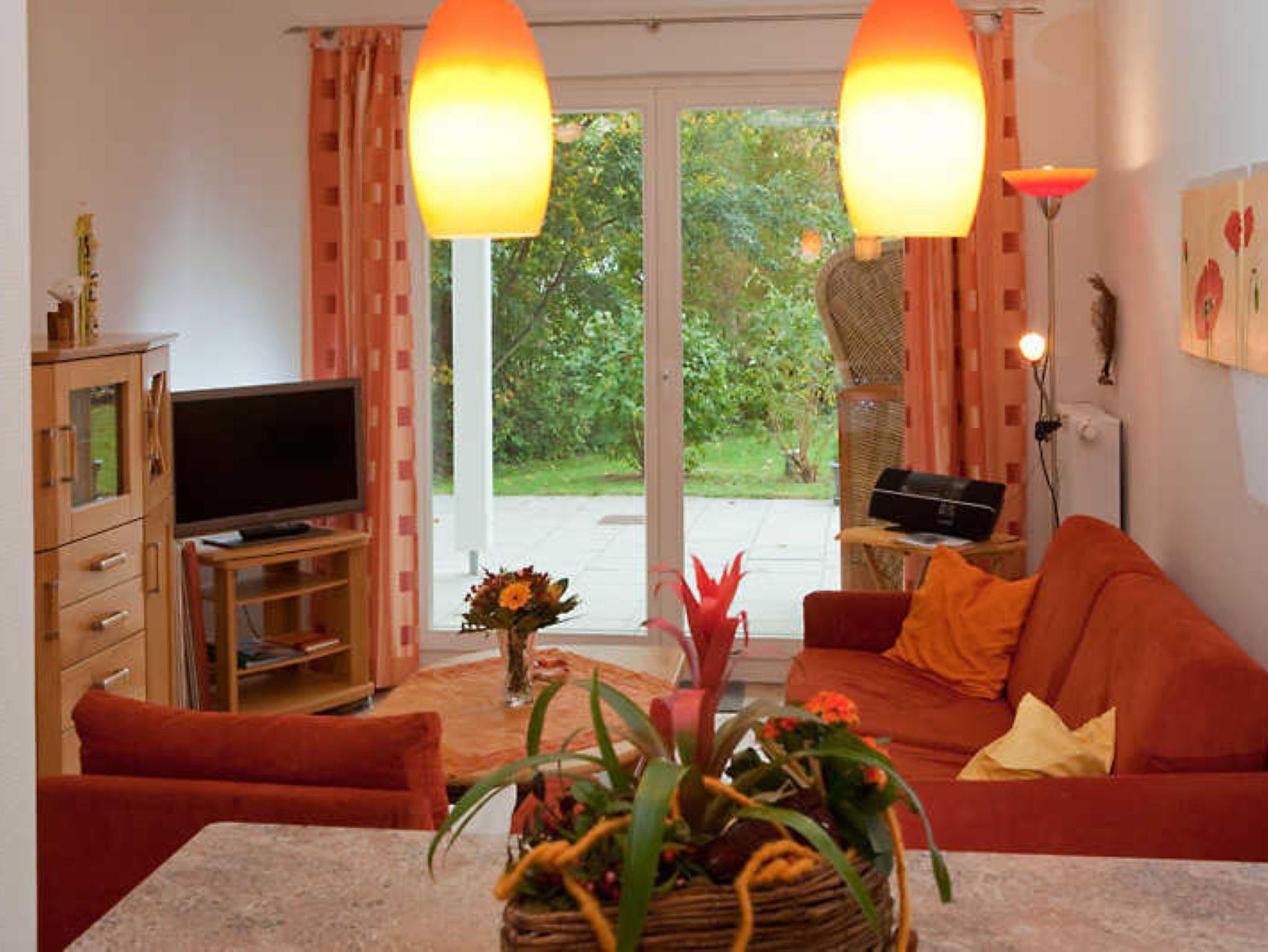 Nur 100 m vom Strand wohnen Sie in einer modern eingerichteten 2-Raum-Ferienwohnung. Die 45 qm große Wohnung liegt im Erdgeschoss. Das Wohnzimmer ist mit einer Schlafcouch, Couchtisch, Anrichte, Regal, Kabel-TV, Radio, Essbereich (mit Tresen und Stühle) und Küchenzeile ausgestattet. Die Terrasse zur Südseite lädt zum Verweilen ein. Im Schlafzimmer stehen ein Doppelbett und ein Kleiderschrank. Die Küchenzeile wurde sehr modern ausgestattet mit Mikrowelle, Kühlschrank, Kaffeemaschine, Cerankochfeld, Backofen, Toaster, Geschirrspüler und Wasserkocher. Das Bad mit Dusche und WC komplettiert die Wohnung.