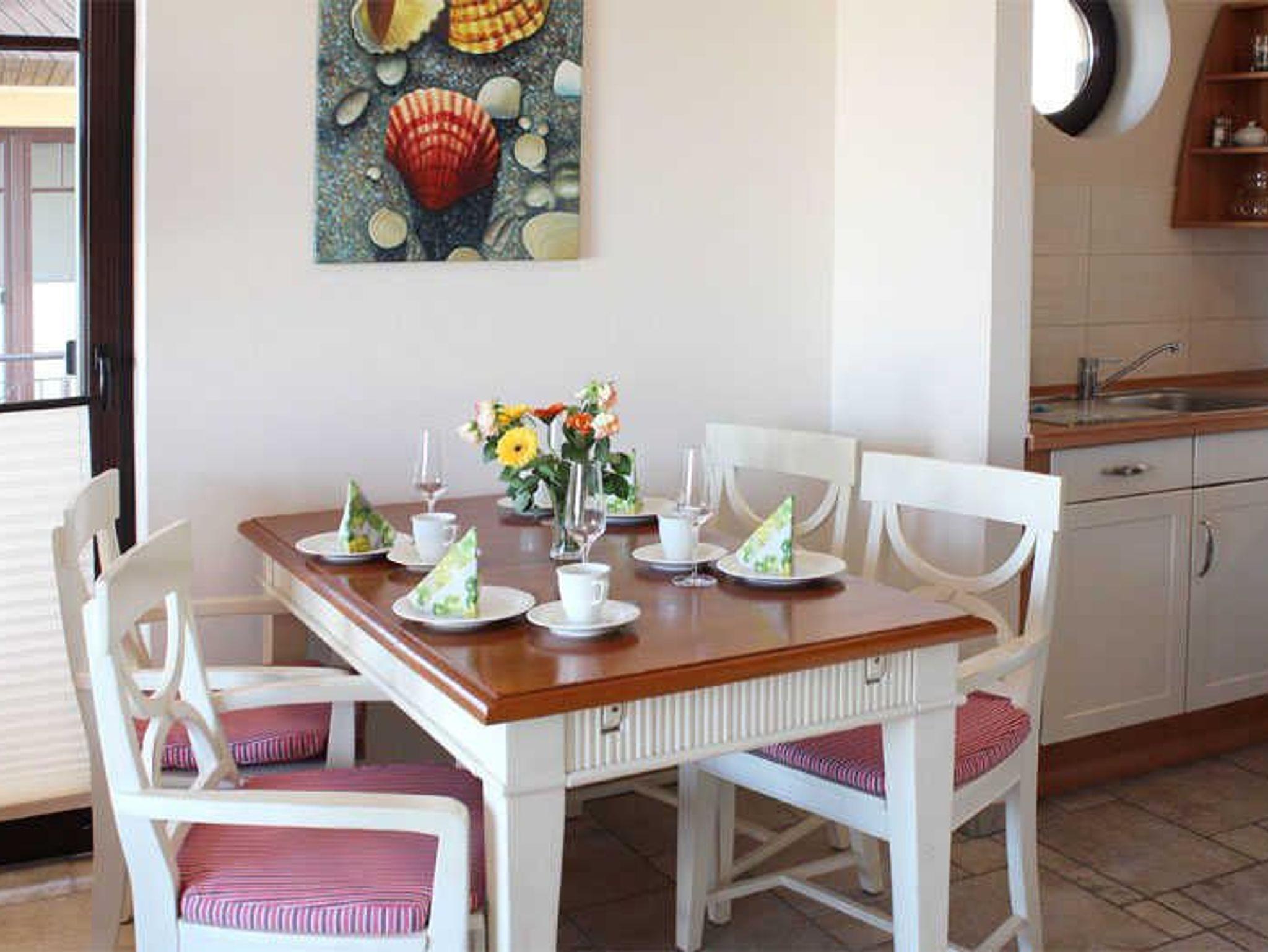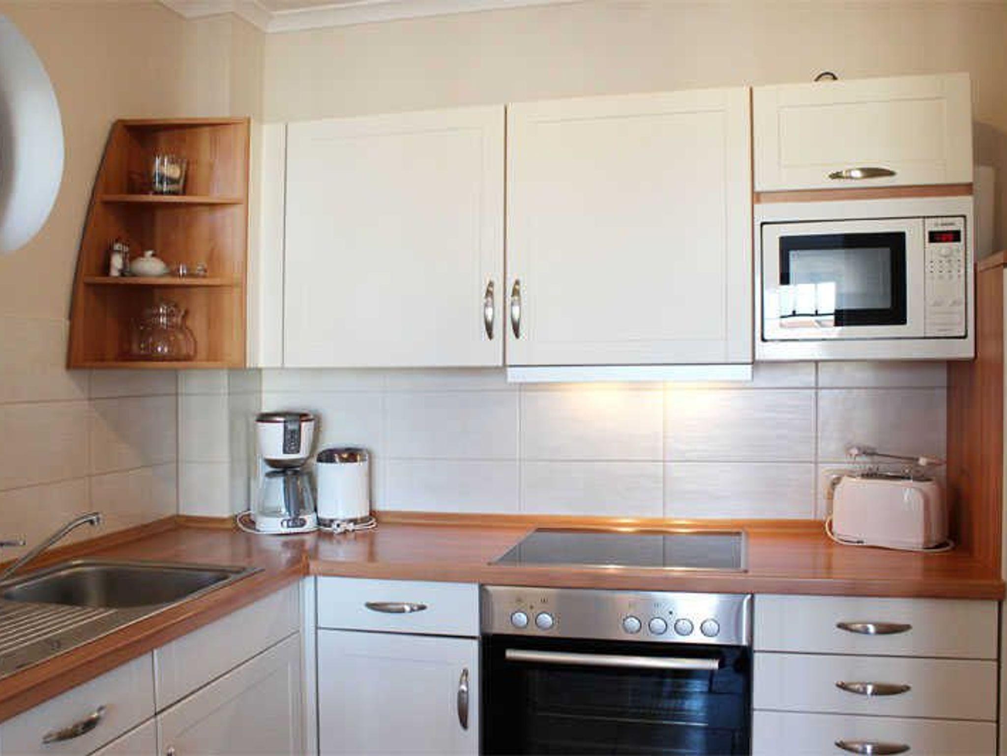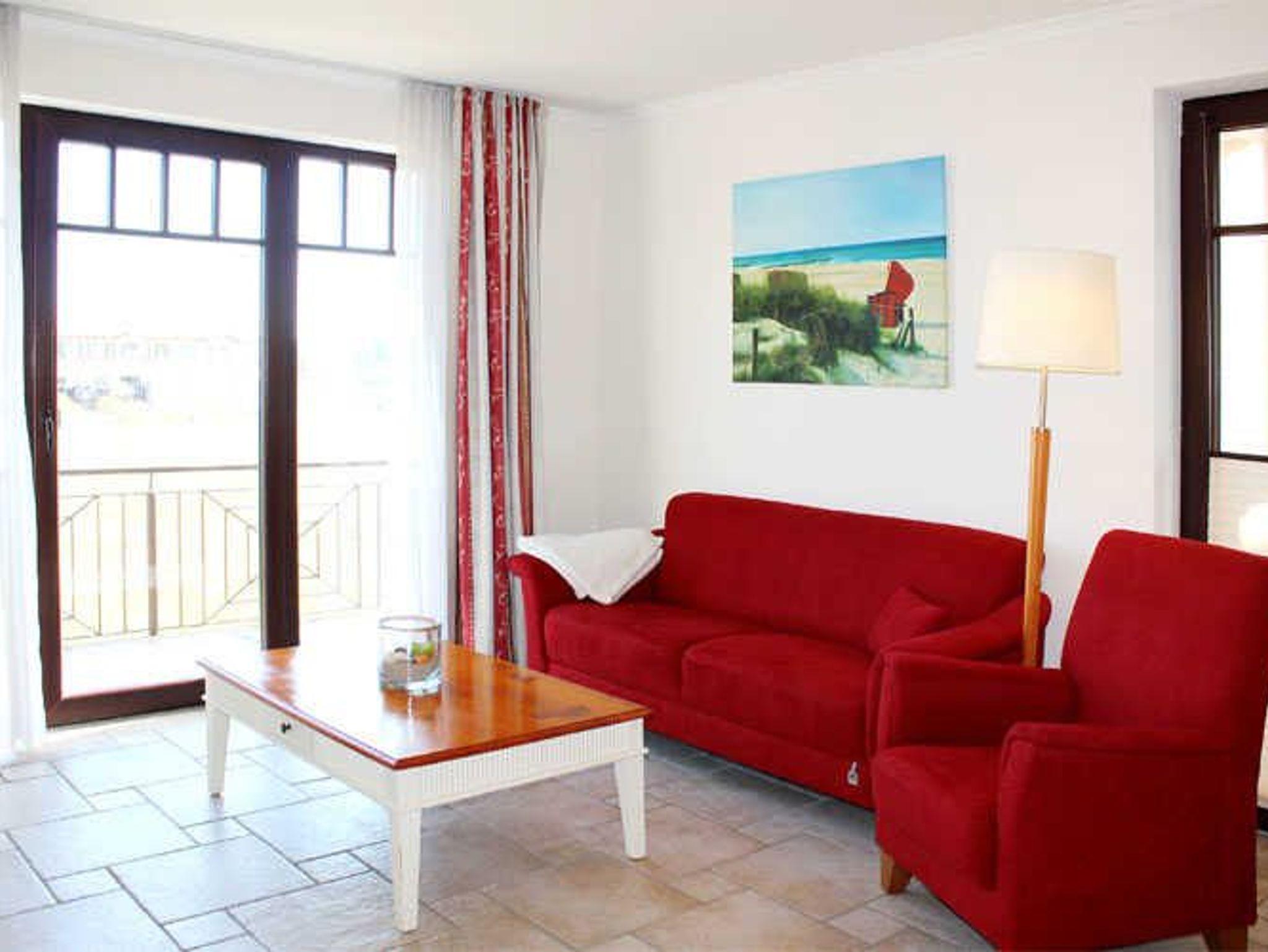 - in der 1. Etage/Aufzug - 2 möblierte Balkone (1x Nordlage mit Meerblick, 1x Ostlage) - Autostellplatz Nr. 3.10 - Tiefgarage (Einfahrtshöhe 2,00 m) - Fahrradkeller - Sauna inkl., Waschmaschine u. Trockner gegen Gebühr - Nichtraucherappartement! Keine Haustiere! - WLAN-Bereitstellung kostenfrei! (ohne Gewähr) - Wohnbereich mit integrierter Küche und Essplatz - Küchenzeile - Herd mit Backröhre, Mikrowelle, Kühlschrank mit Gefriermöglichkeit und Geschirrspüler - 1. Schlafzimmer mit Doppelbett (durchgehende Matratze) und Kleiderschrank - 2. Schlafzimmer mit Boxspringbett (1,60 x 2,00 m, durchgehende Matratze) und Kleiderschrank - DU/WC separat