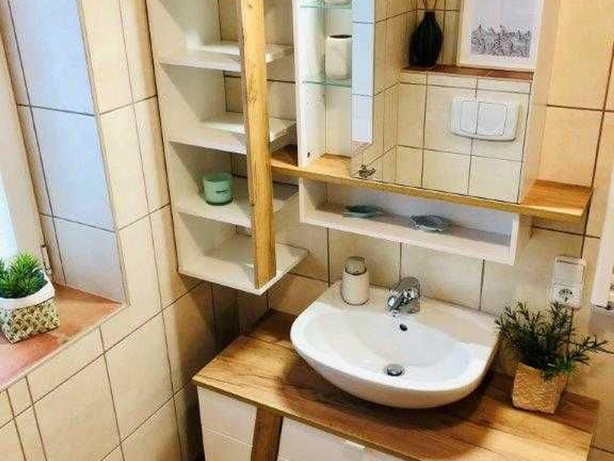 - Küchenzeile mit Herd/Backröhre, Kühlschrank, Geschirrspüler, Wasserkocher,