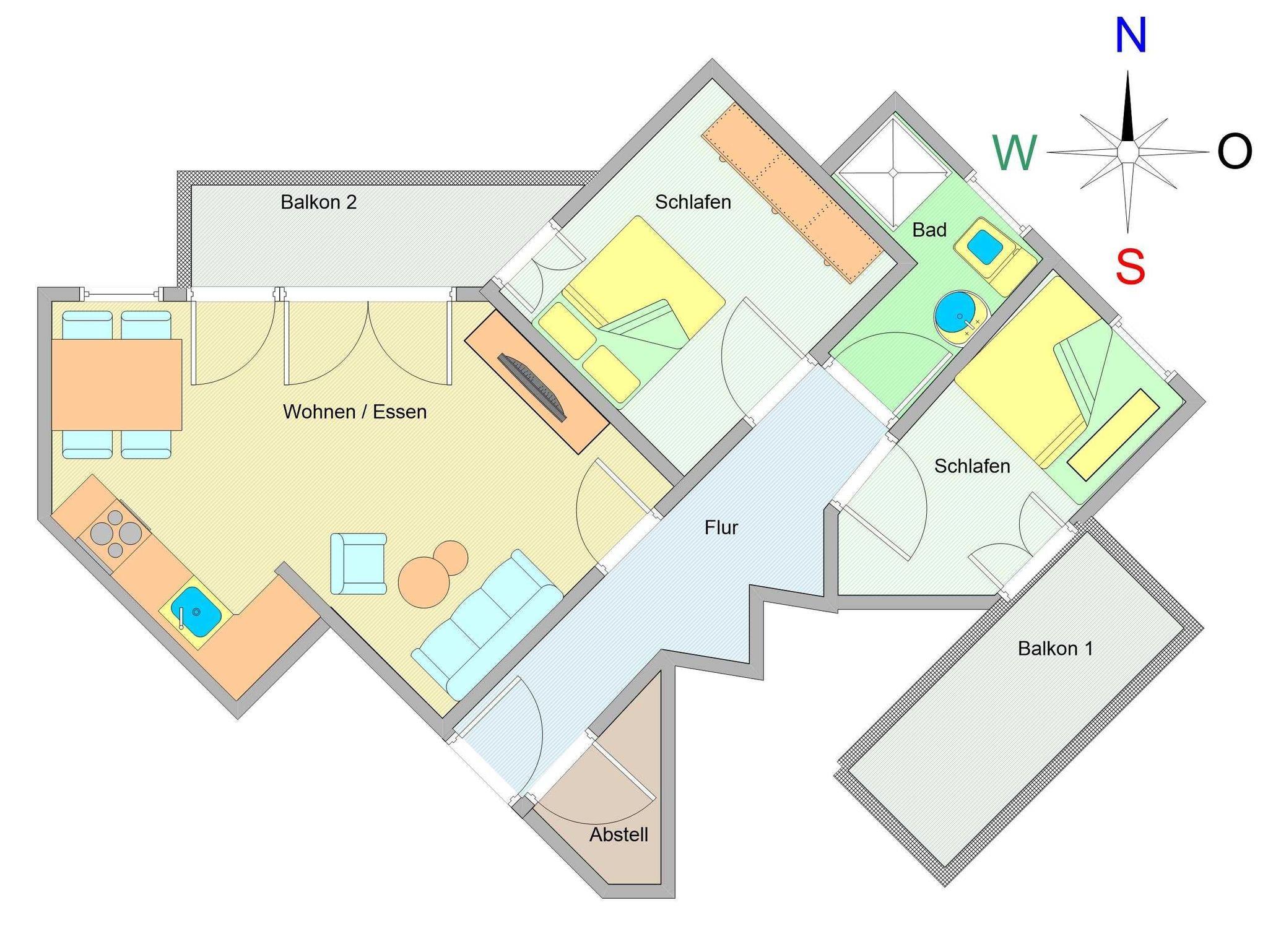 LIEBEVOLL EINGERICHTETE 3-RAUM-FERIENWOHNUNG MIT 2 BALKONEN