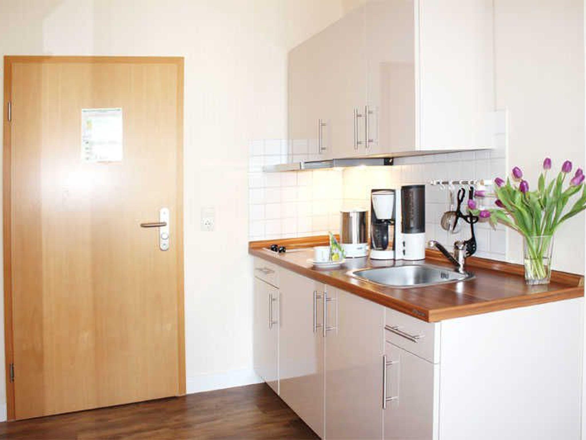 Unsere Einraumappartements für bis zu zwei Personen bieten auf etwa 30 m² Wohnfläche alles, was einen zwanglosen Aufenthalt ausmacht. Eine kleine Küchenpantry ermöglicht die Zubereitung kleiner Mahlzeiten. Kaffeemaschine, Toaster und Wasserkocher sind vorhanden. Genießen Sie ein gemütliches Frühstück am Esstisch mit Stuhlsesseln, bei warmen Temperaturen vielleicht auf dem Balkon?