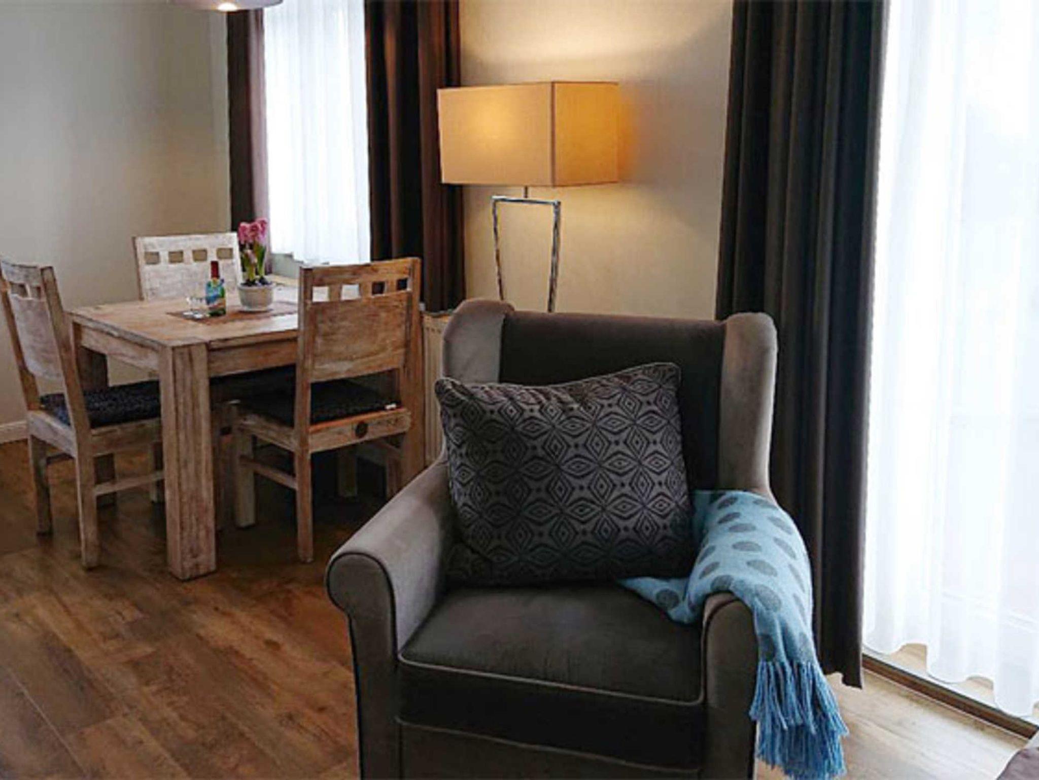 Unsere Zweiraumappartements für bis zu drei Personen haben eine Wohnfläche von 35 bis 55 m². Im Wohnzimmer laden gemütliche Sessel oder Couchen zur Entspannung ein.